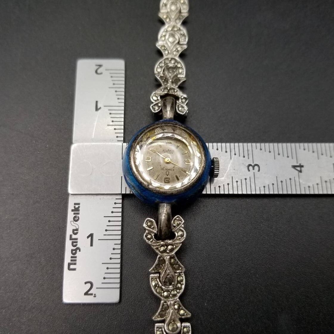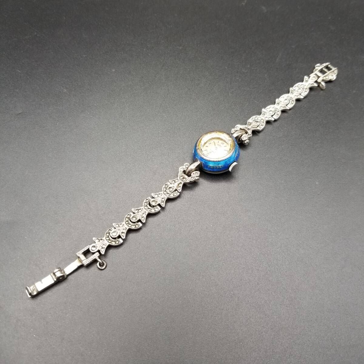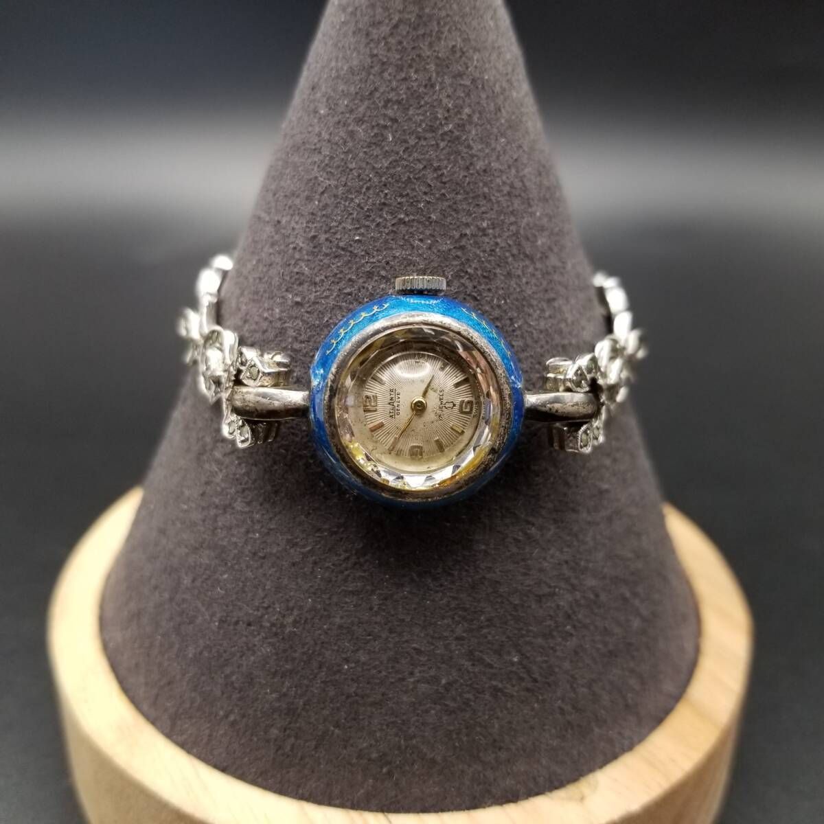 Atlanta Geneva Swiss ヴィンテージ 腕時計 手巻き ブルーエナメル ギロシェ マーカサイト装飾 ブレスレット 華奢 上品 エレガント Y23-Q