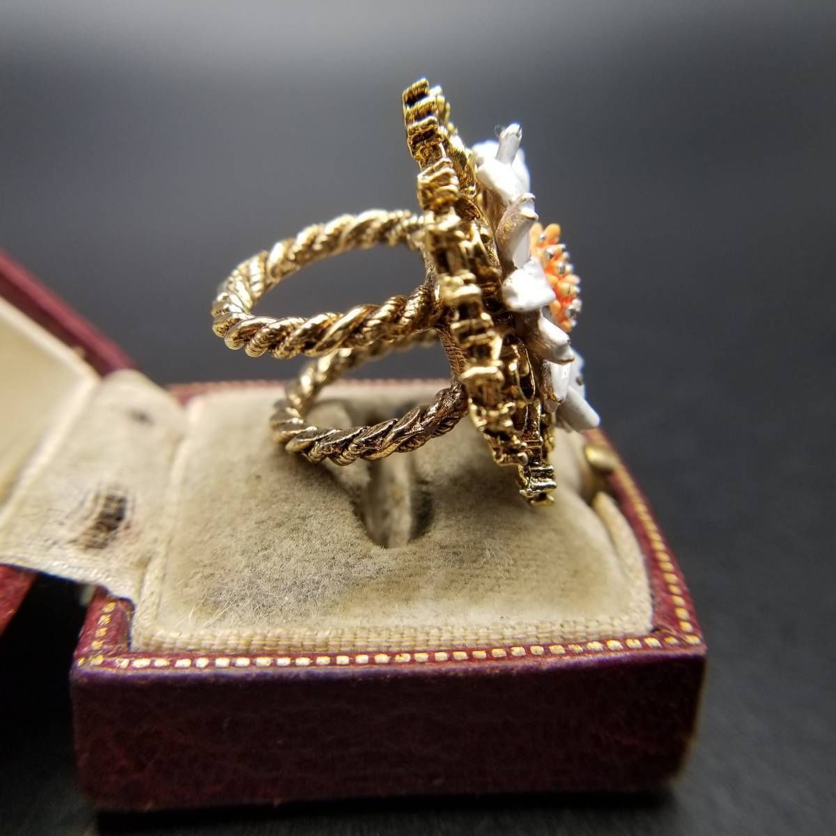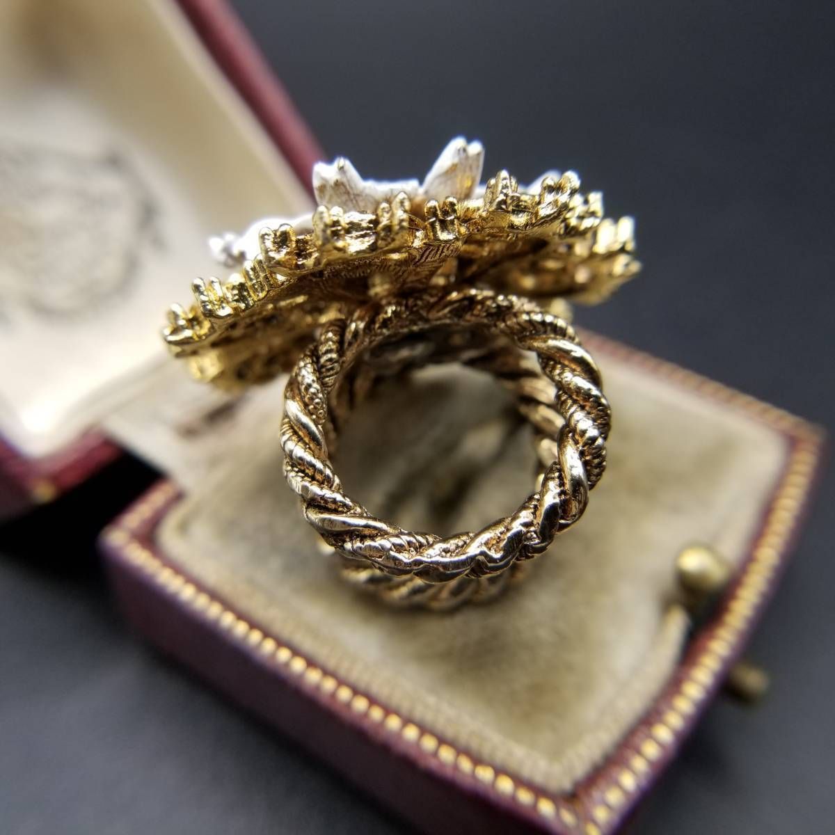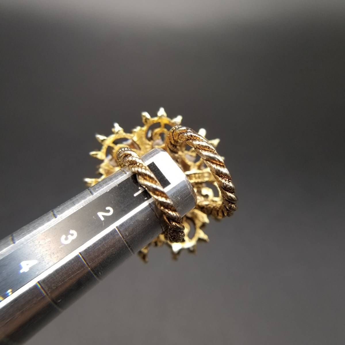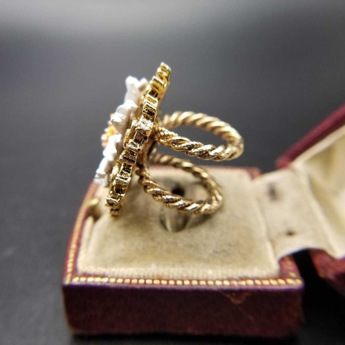 ART デイジー アールデコ 装飾 ダブルアーム ビンテージ リング ゴールドトーン 指輪 コスチュームジュエリー 花 USA輸入 8Y-L