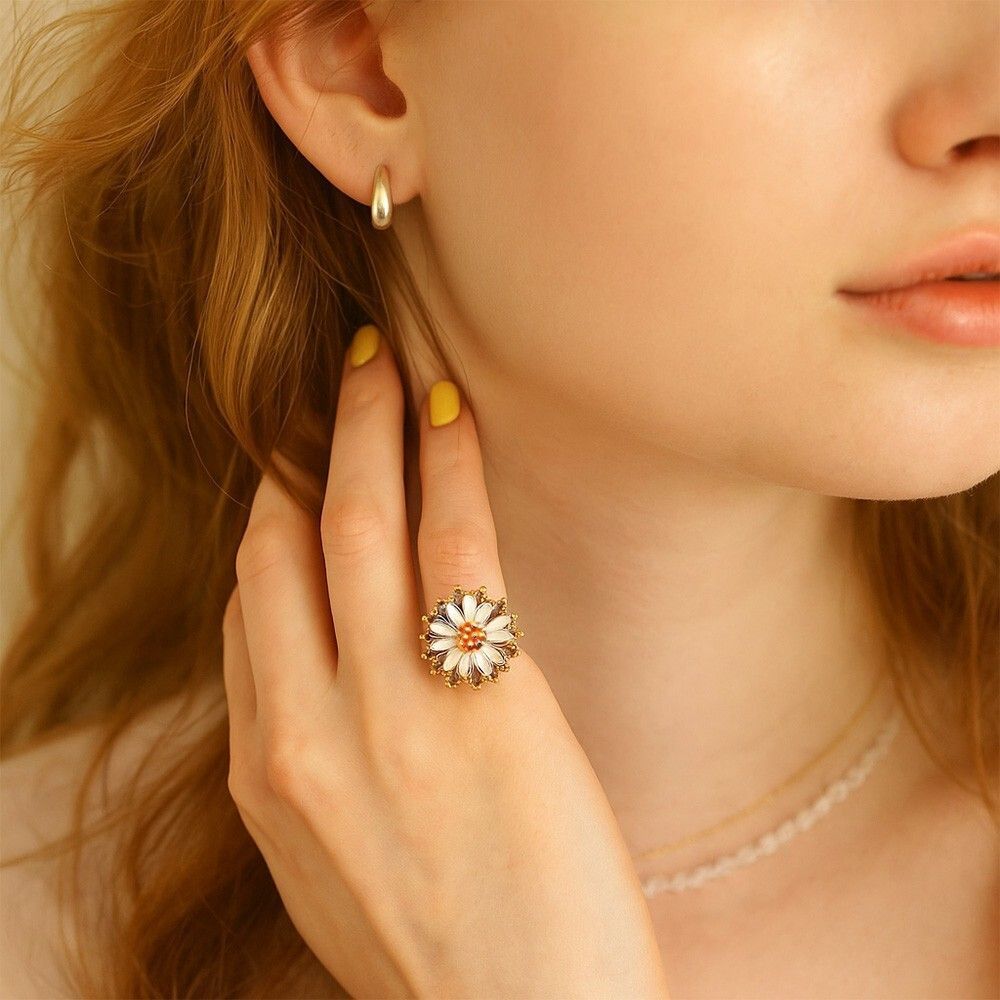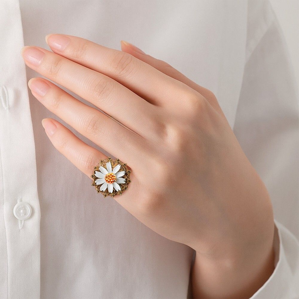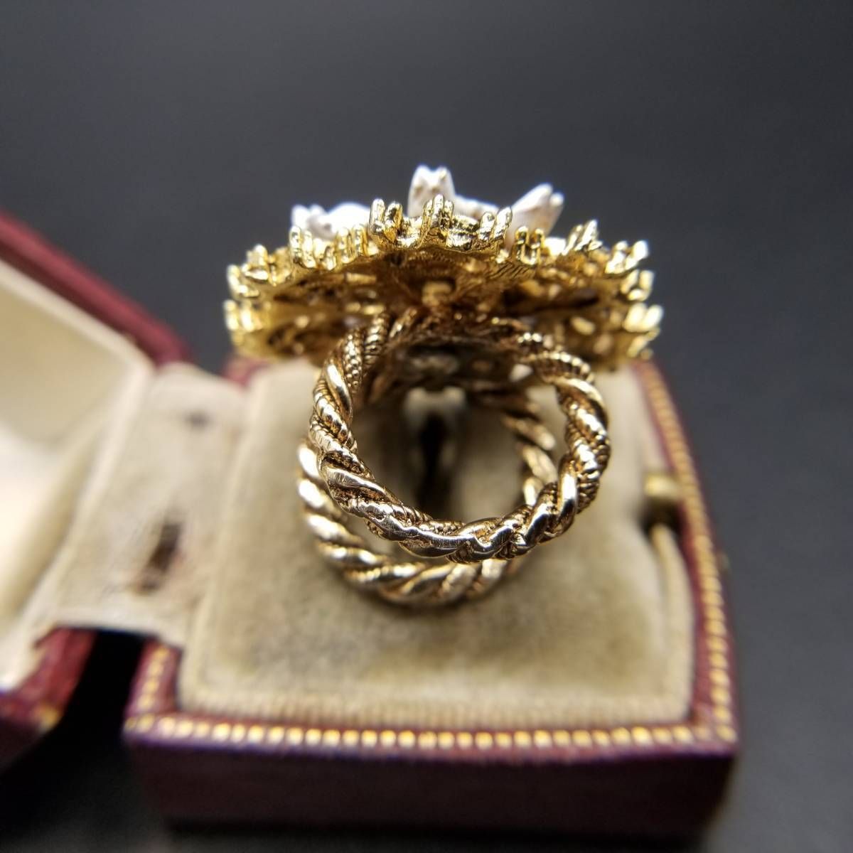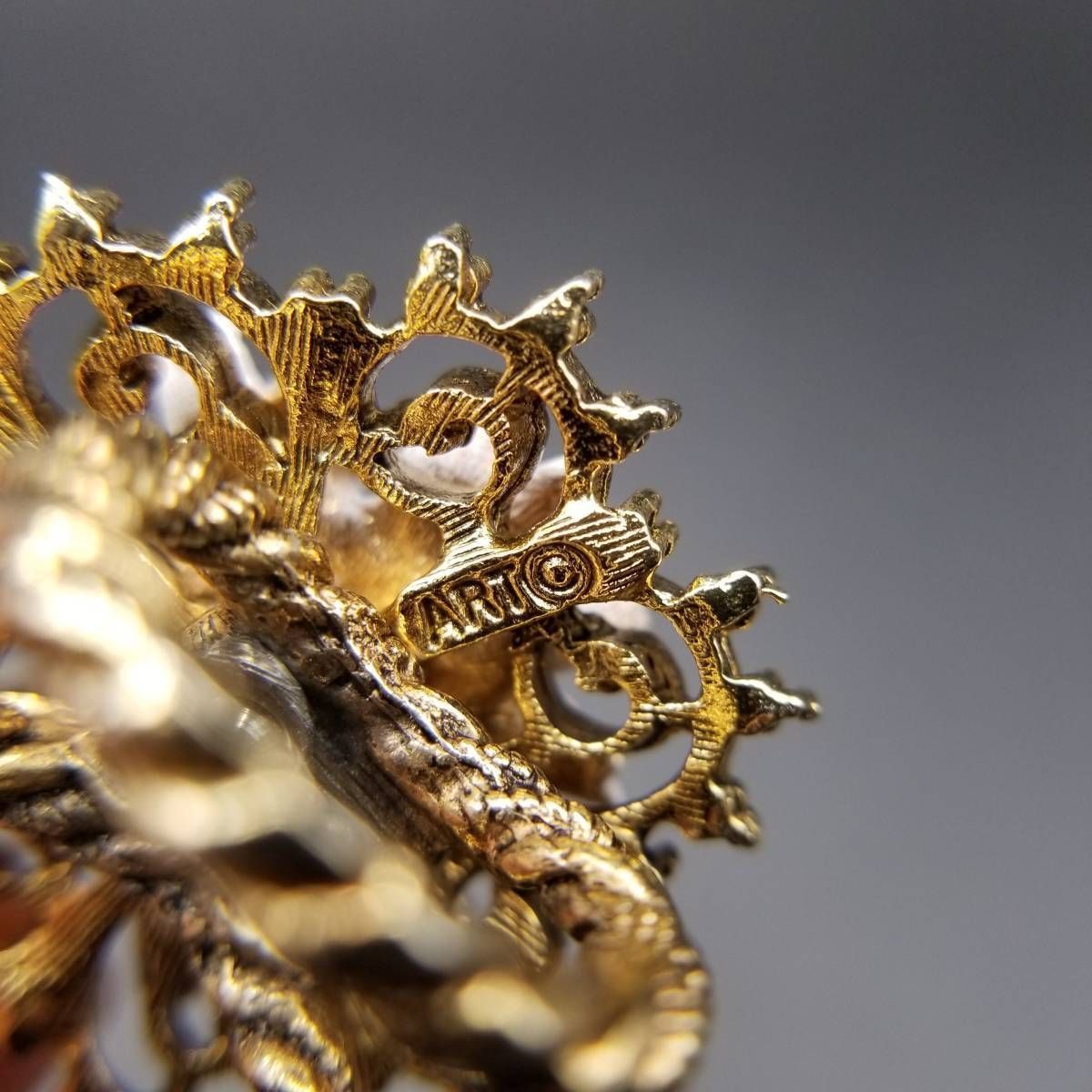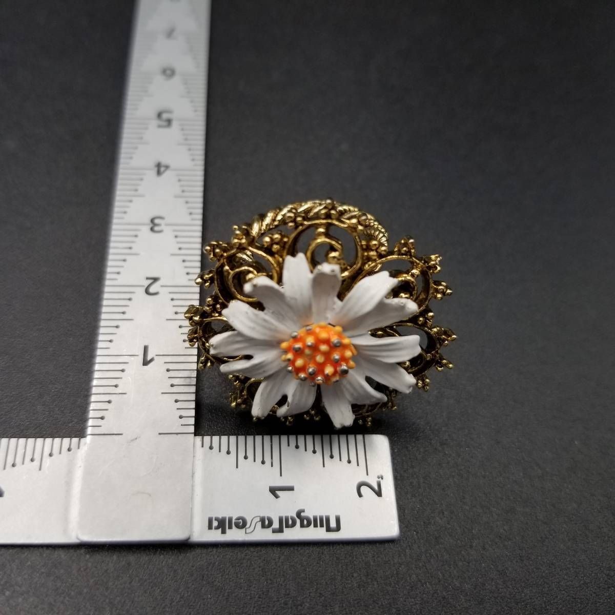 ART デイジー アールデコ 装飾 ダブルアーム ビンテージ リング ゴールドトーン 指輪 コスチュームジュエリー 花 USA輸入 8Y-L