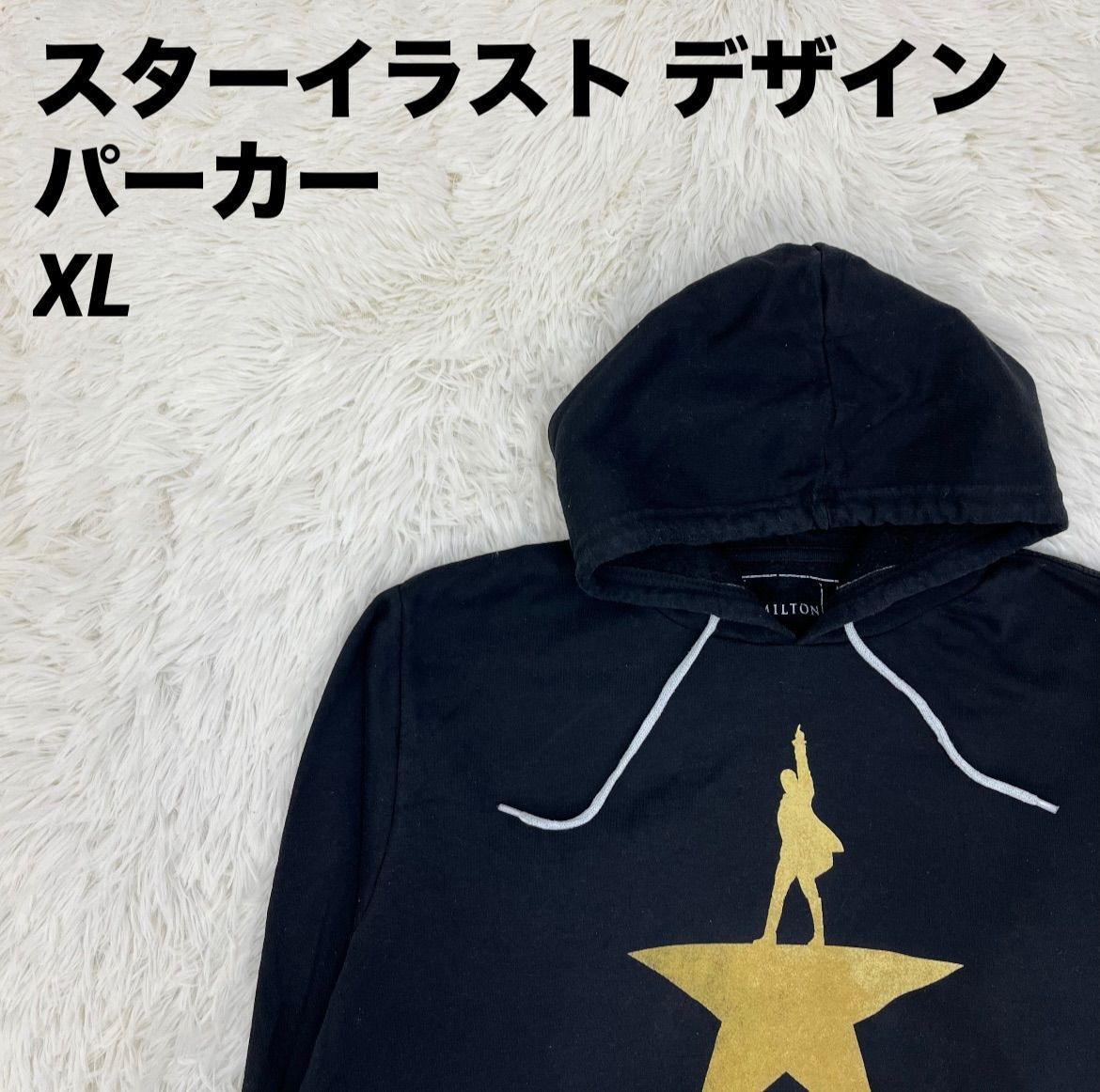 プルオーバーパーカー フード スターイラストデザイン ブラック XLサイズ メンズ 男女兼用