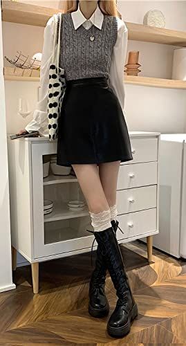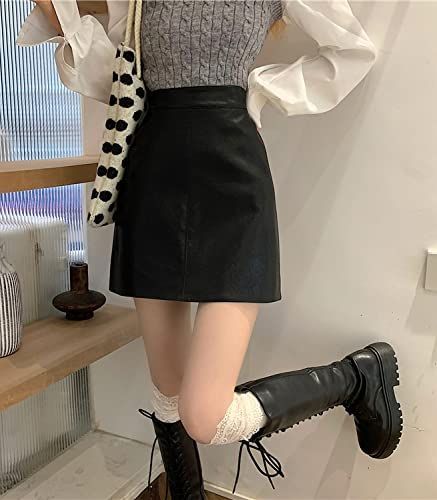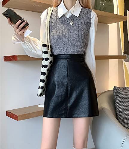 夏 春 無地 ジップ付き 薄い 12色 ミニスカート Aライン ハイウエスト レザー pu レディース [syvent]
