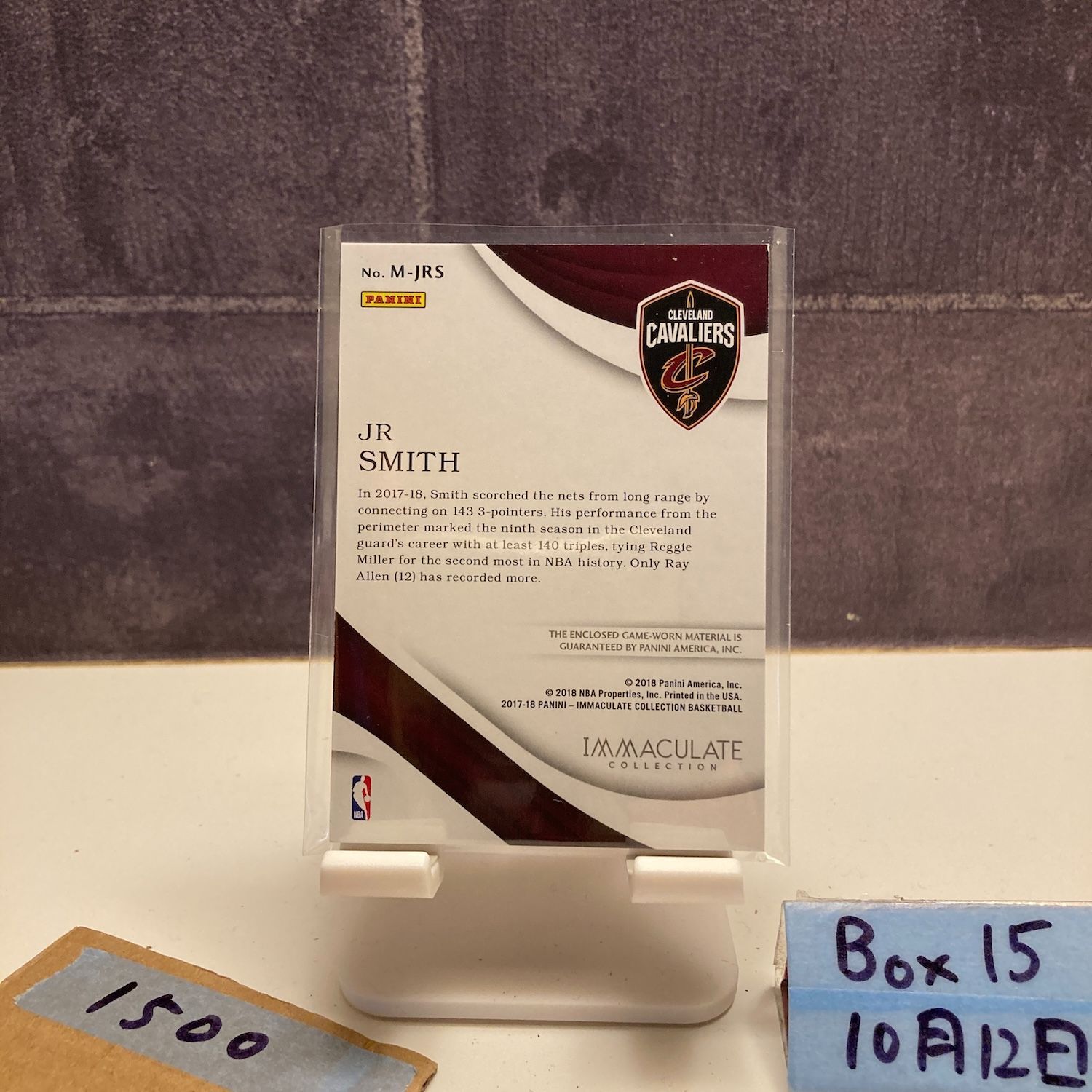 2017-18 Panini Immaculate Collection JR Smith 02/49 Cleveland Cavaliers Game-worn Materials ジャージ カード