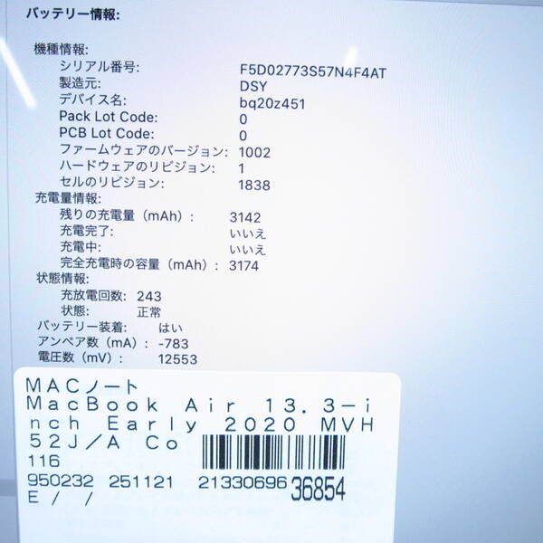 〔CPU〕(第10世代)クアッドコア Intel Core i5 (1.1GHz)