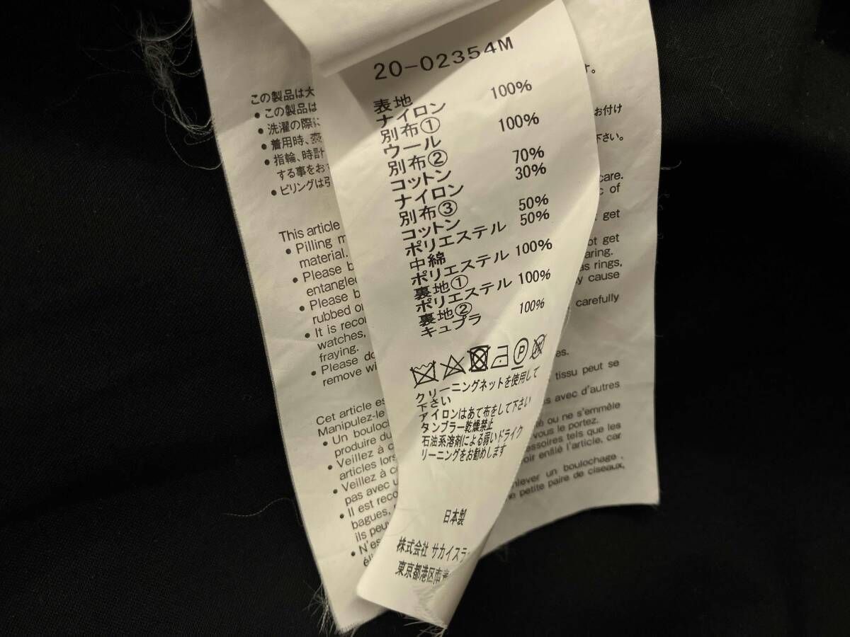 sacai GIUBBOTTO NYLON TWILL COAT ブラック size:2