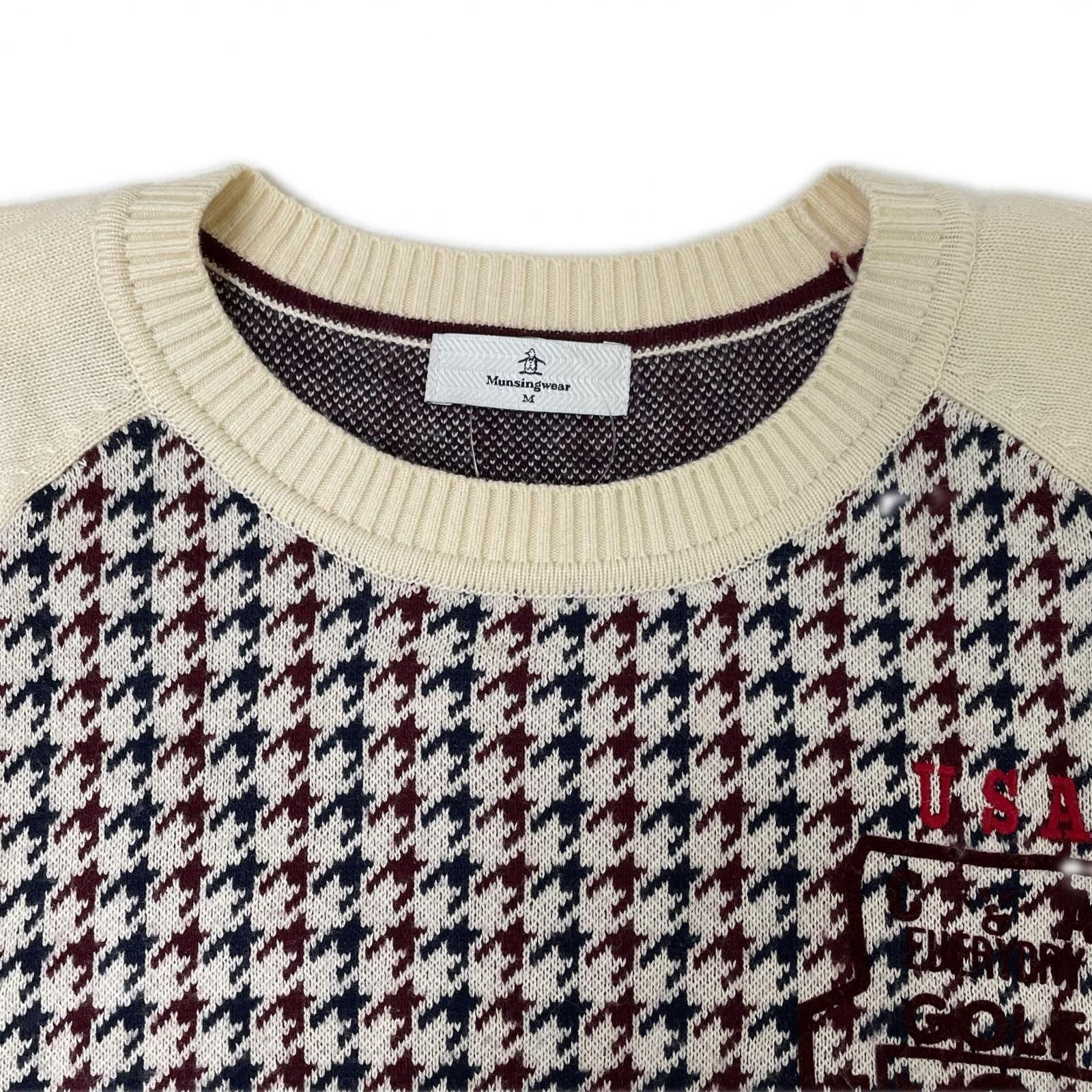 中古 レディース マンシングウェア Munsing wear セットアップ M L アイボリー×ボルドー 訳あり上下サイズ違い ニット 千鳥格子