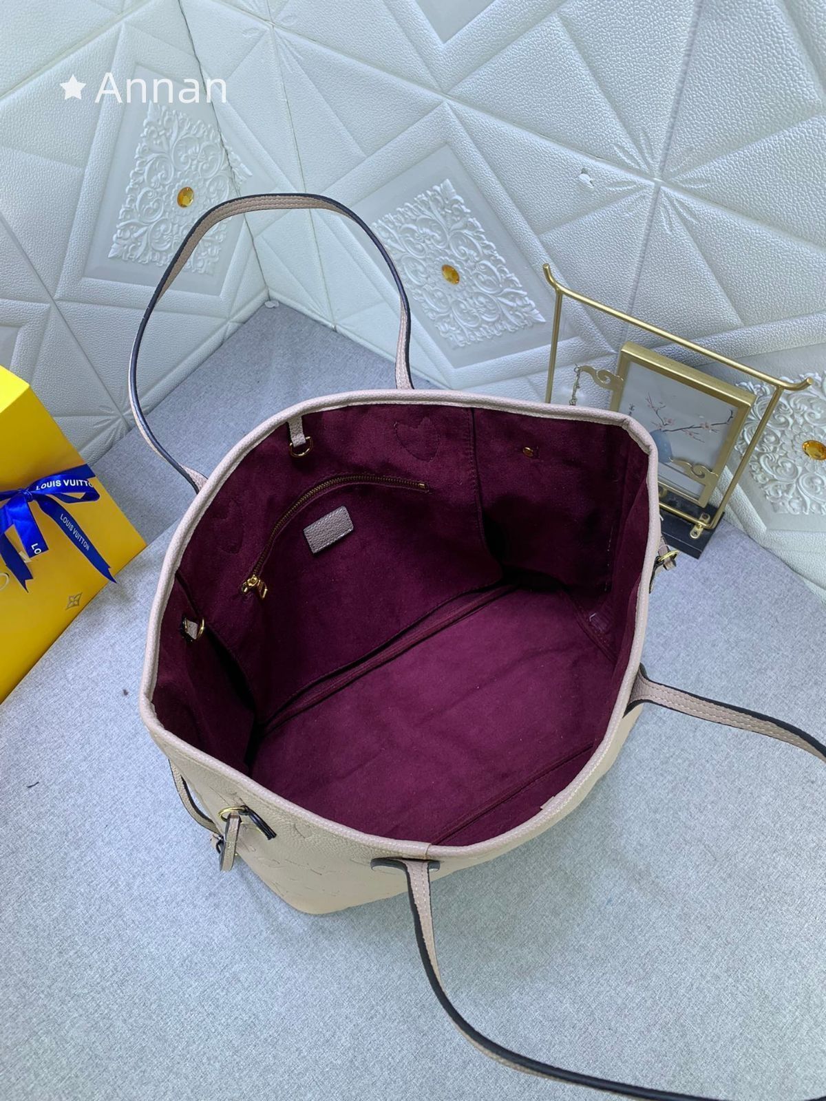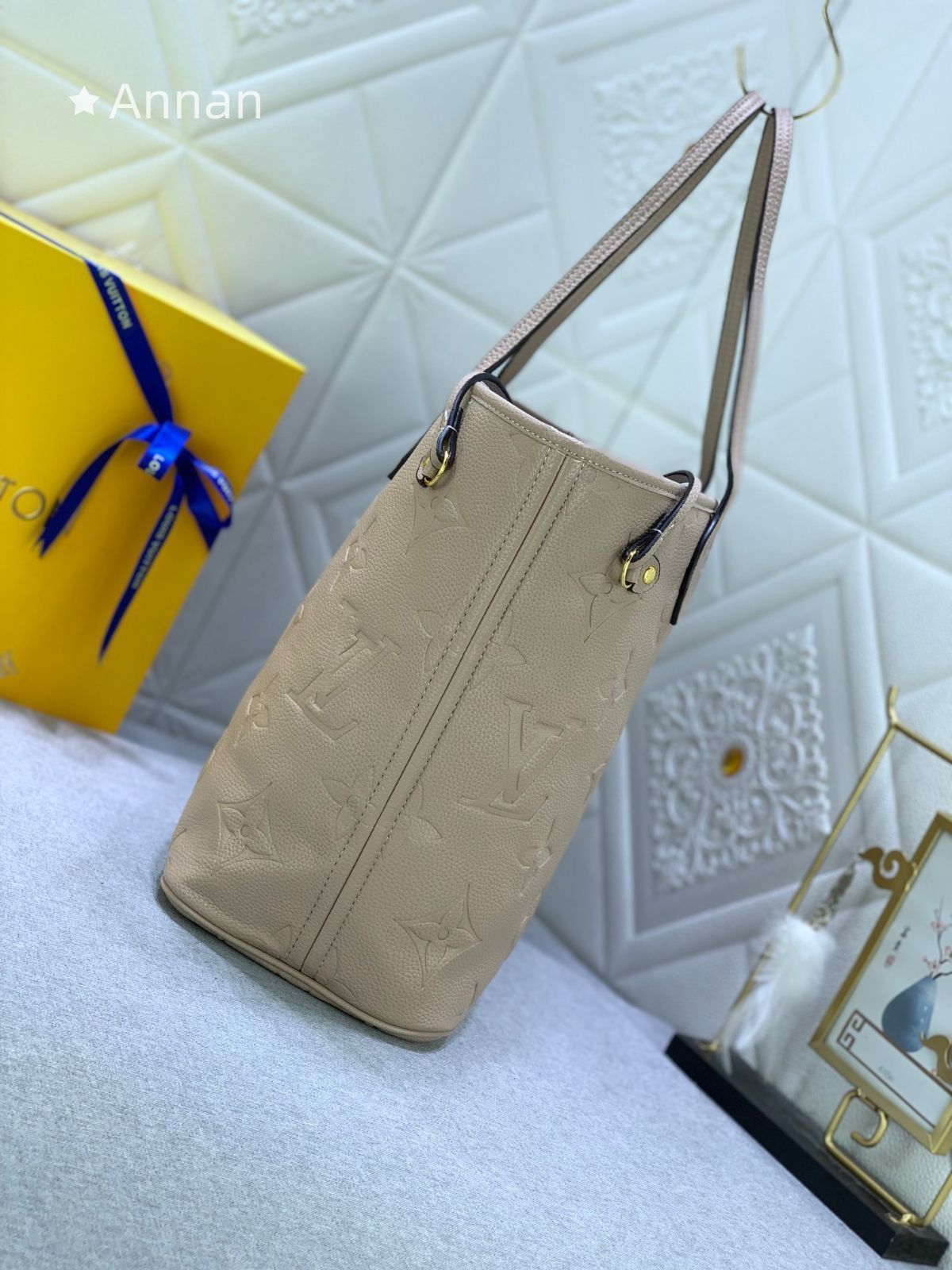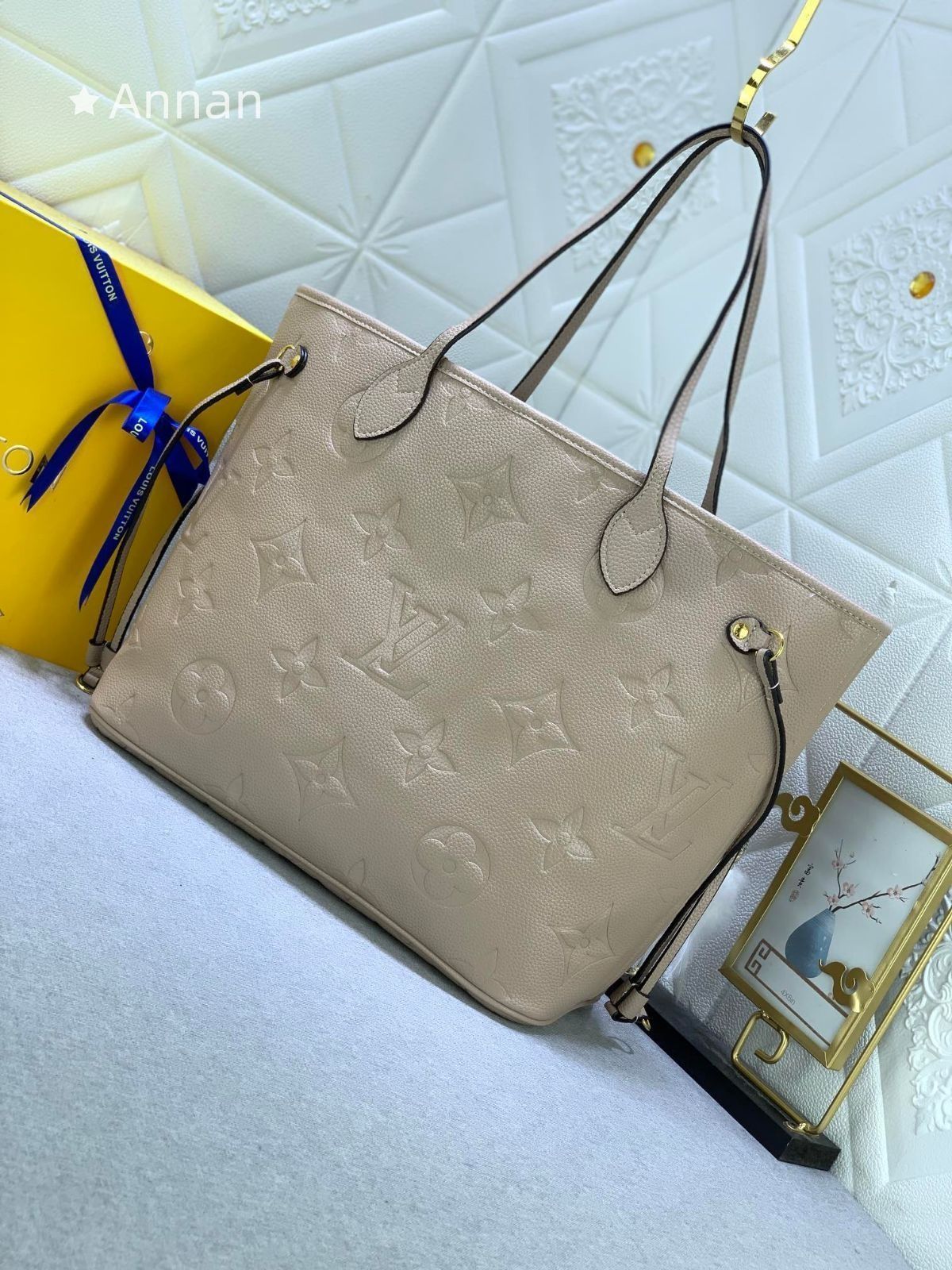 【美品】LOUIS VUITTON ルイヴィトン モノグラムア トートバッグ ンプラント ネヴァーフル MM 肩掛け トゥルトレール ベージュ