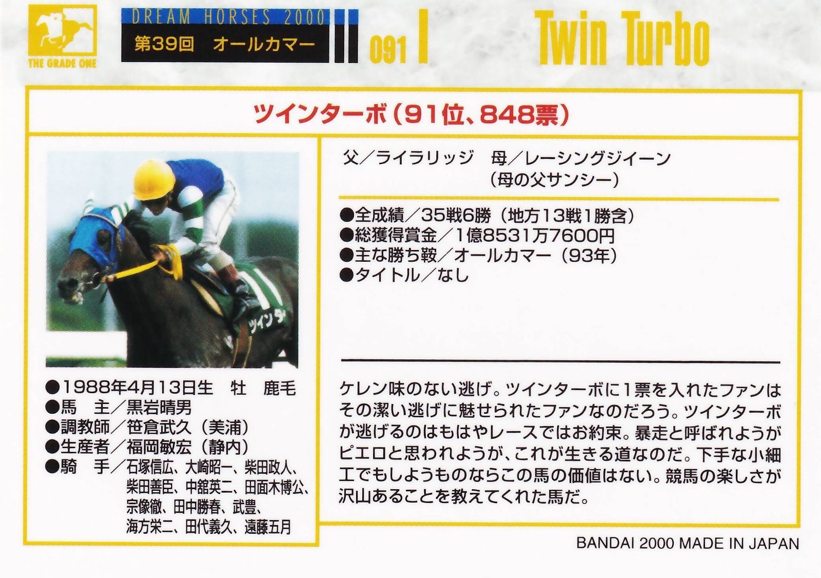 ツインターボ:第39回 オールカマー(金文字仕様)「THE GRADE ONE 20世紀の名馬」91位