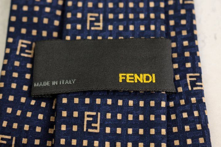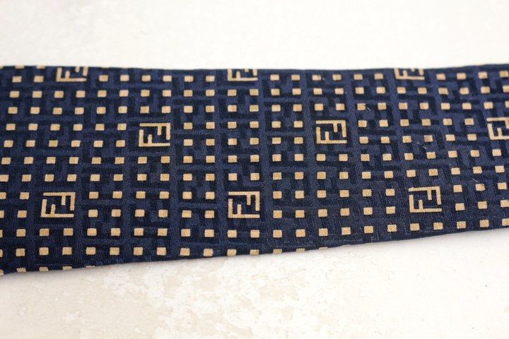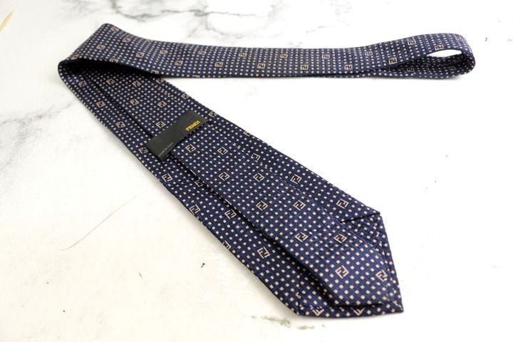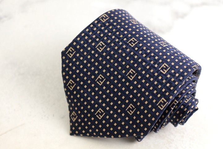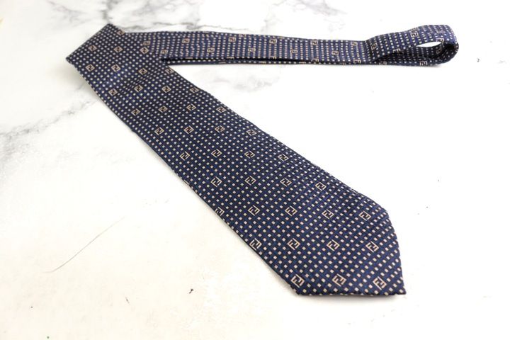 フェンディ ブランド ネクタイ ズッカ柄 小紋柄 格子柄 シルク イタリア製 PO メンズ ネイビー FENDI 【中古】