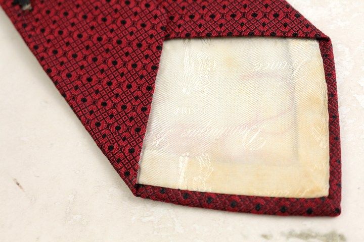 ドミニクフランス スター ブランド ネクタイ チェック柄 シルク フランス製 PO メンズ レッド Dominique France Star 【中古】