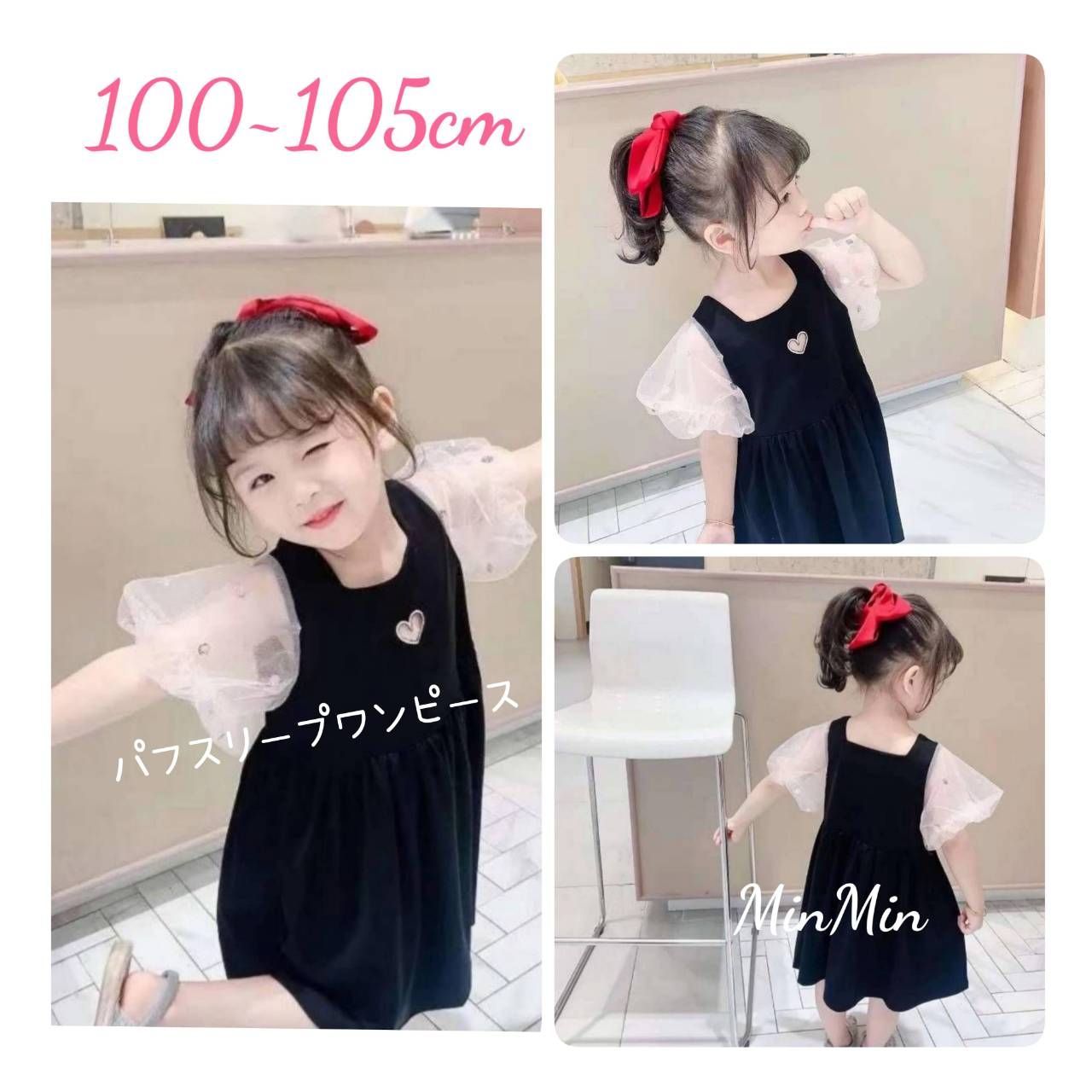 新品100~105♡キッズワンピース サマーワンピース パフスリープ ハート ドット