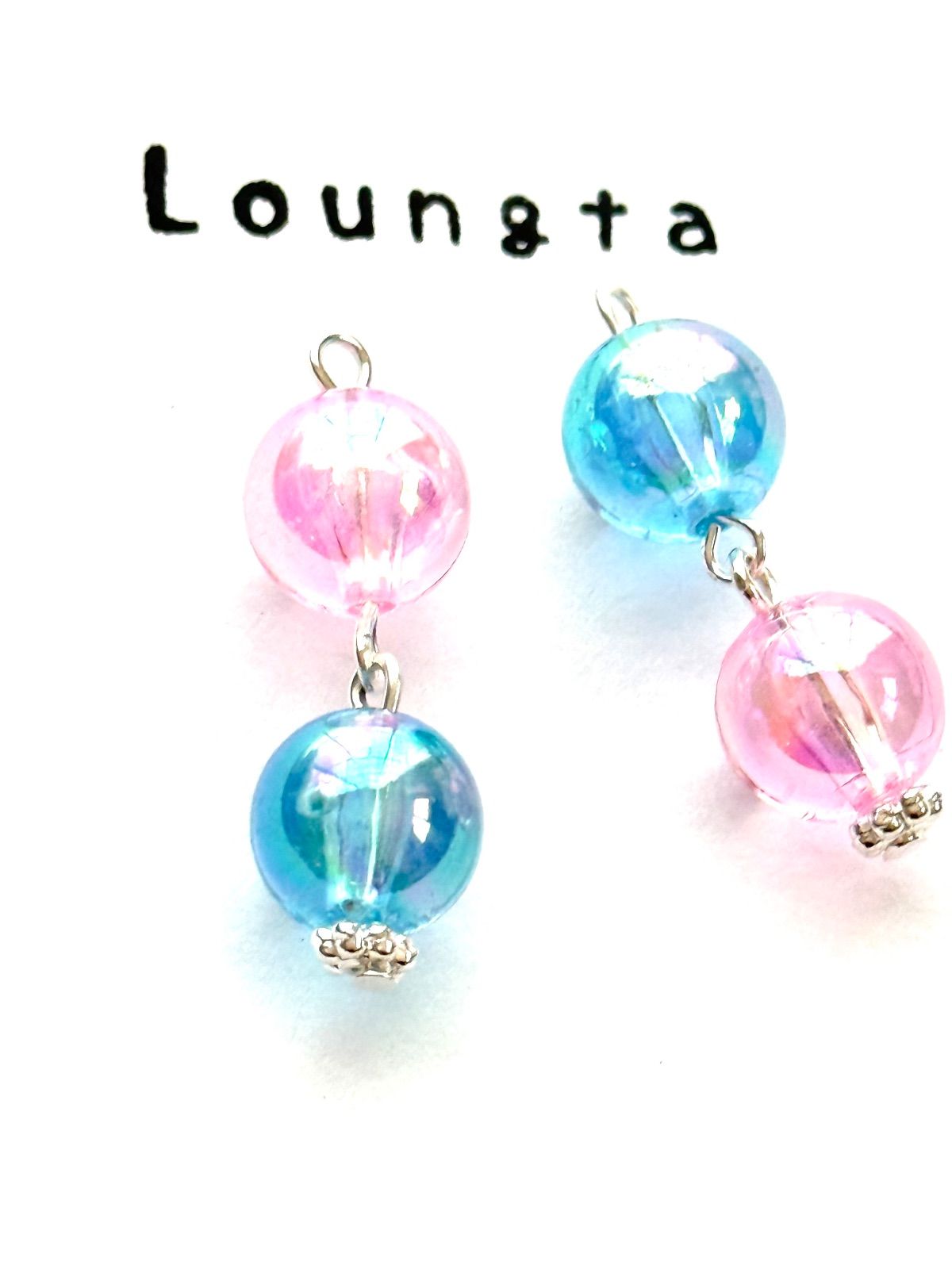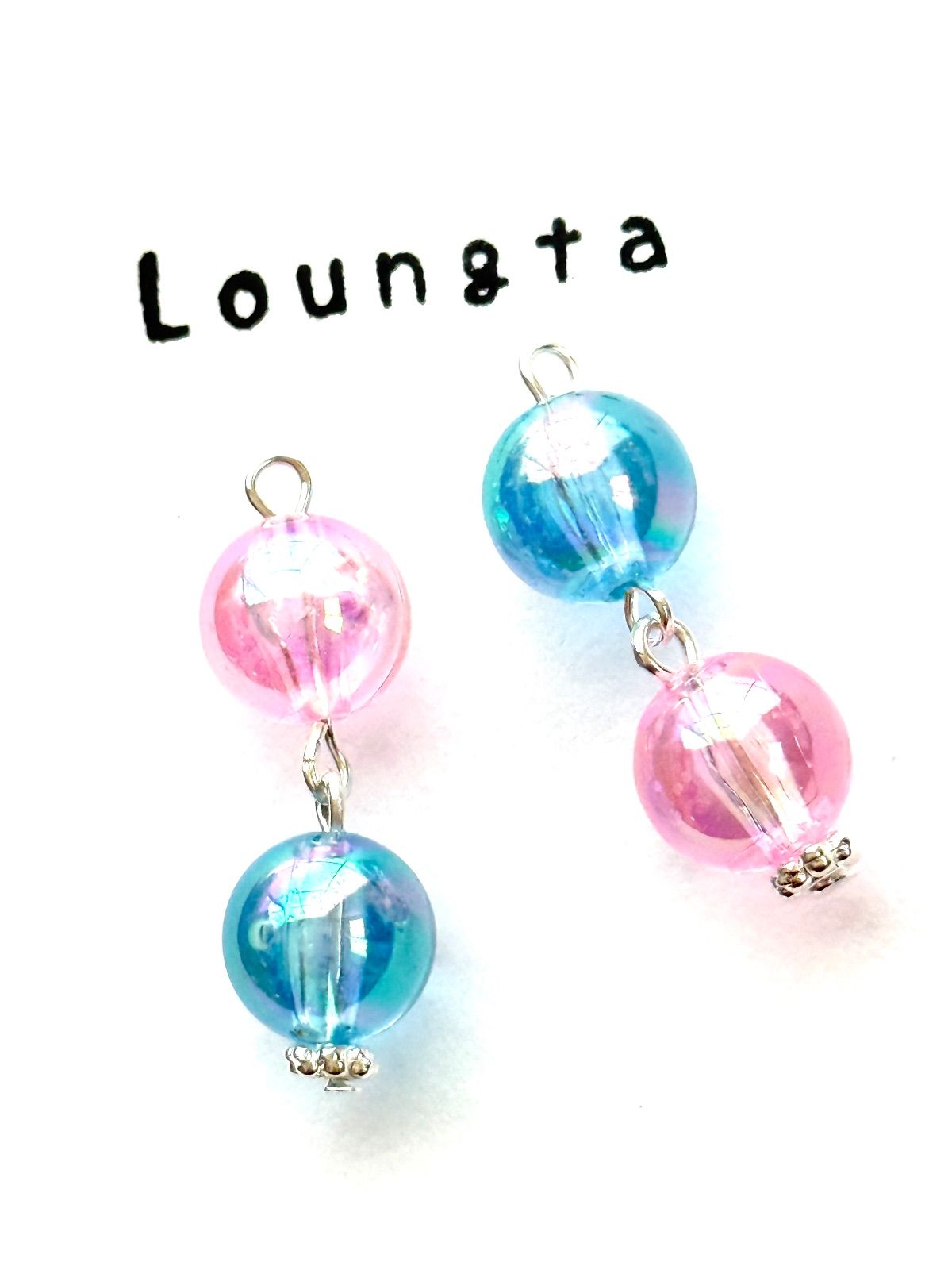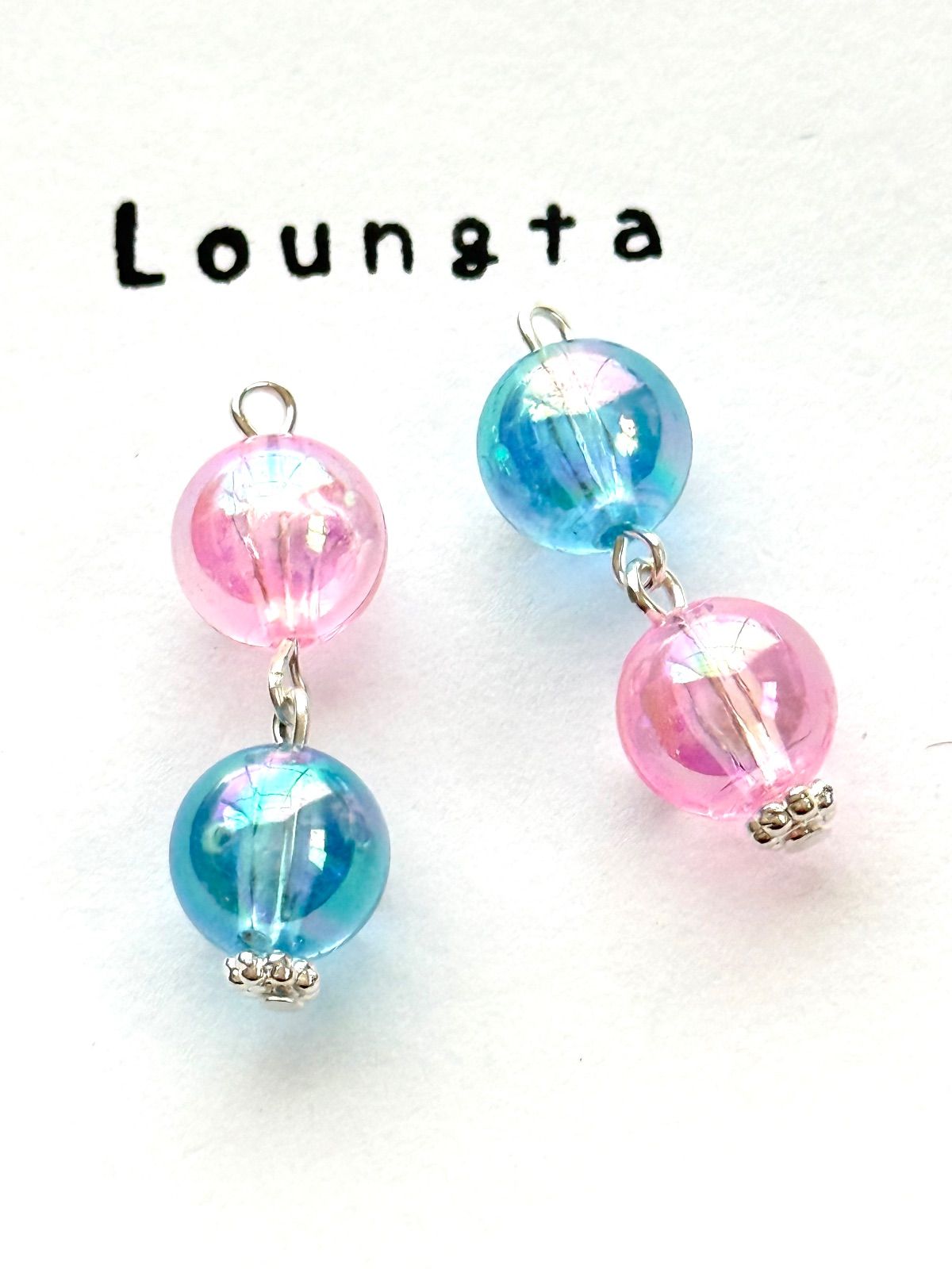 3564アシンメトリーピアス ピンク ブルー 樹脂ピアス