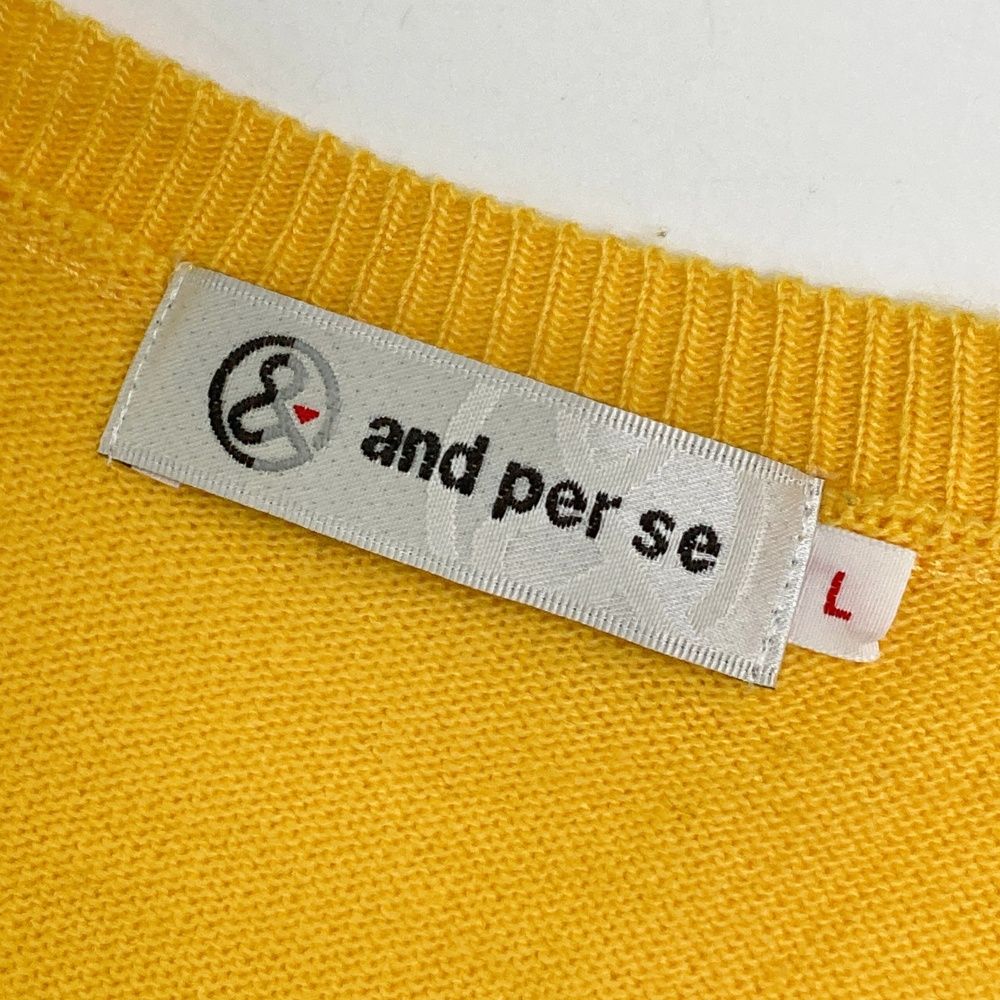 商品・お取引に関するご相談は、質問ボタンよりお気軽にお問い合わせください。 新着商品やタイムセール等の通知が受け取れますので、是非いいね&フォローをお願いします。 〔フォロー〕←タイムセール・クーポン・新着アイテムの通知が受け取れます。 〔いいね〕←値下げ通知が受け取れます。 商品管理番号:240101578751 ブランド:AND PER SE アンパスィ アイテム:ニットセーター ウール混 モデル・品番: 表記サイズ:L 実寸:肩幅:38.5cm / 身幅:46cm / 着丈:56cm / 袖丈:57.5cm 素材:写真をご参照ください。 状態:B    毛羽立ちが見受けられます 付属品: ※表記サイズはあくまでも新品時のメーカー表記サイズとなっており、中古品の場合、同じサイズでも実際のサイズ感に違いがございます。 その為、当店では商品の実寸サイズ(平置き)を記載させていただいておりますので、そちらを参考にお手元の服と必ず比べて頂きますようお願い致します。 [状態評価ランク] N 新品同様の商品 S 未使用 A 未使用に近い A- 目立った傷や汚れなし B やや傷や汚れあり B- 傷や汚れあり C 使用感または目立つ傷や汚れがある商品 D ジャンク品 [商品について] 当店でお取り扱いしている商品は、全て中古品となっております。 一部新品/新古品および未使用などの表記のある商品がございますが、ほとんどの商品が一般の方からお買取りしたお品物でございます。 ご注文頂く際はその点をご理解頂いた上でのお取引とさせて頂きます。 商品ページには可能な限り詳細な状態を記載出来るよう努めておりますが、中古品をお取り扱いしている関係上記載しきれない微細なダメージがある場合がございますので、何卒ご了承ください。 [付属品について] 付属品は商品ページに記載している、もしくは画像に写っているものが全てとなります。 商品は状態ランクを問わず、掲載されているもの以外に付属品はございません。 Nランク / Sランクの商品もメーカーの発売時の付属品が無い場合もございます。 保証書に記載の個人情報は、塗りつぶし等により全て削除しております。予めご了承くださいませ。 [商品の在庫について] 掲載の商品は、直営店舗および他サイトと一括在庫管理を行っております。 ご注文商品が品切れの際、誠に申し訳ございませんが、弊社よりその旨ご連絡の上、 ご注文をキャンセルとさせて頂きますので、予めご了承下さい。 ※代替え品のご用意、お値引対応は致しかねますので予めご了承下さい。 [配送について] 配送方法はゆうパック、またはゆうパケットとなります。 配送方法のご指定はお受けできませんので、予めご了承ください。