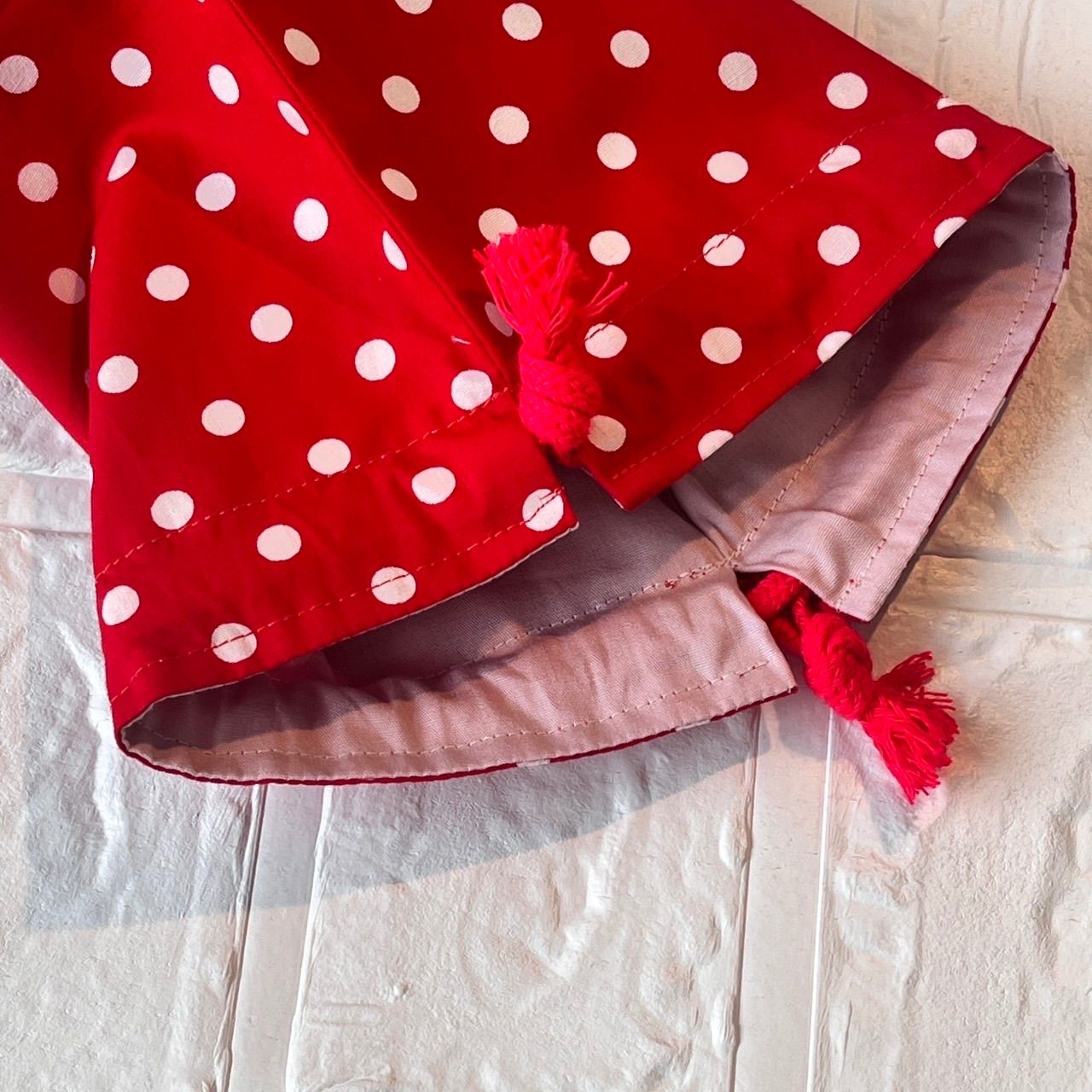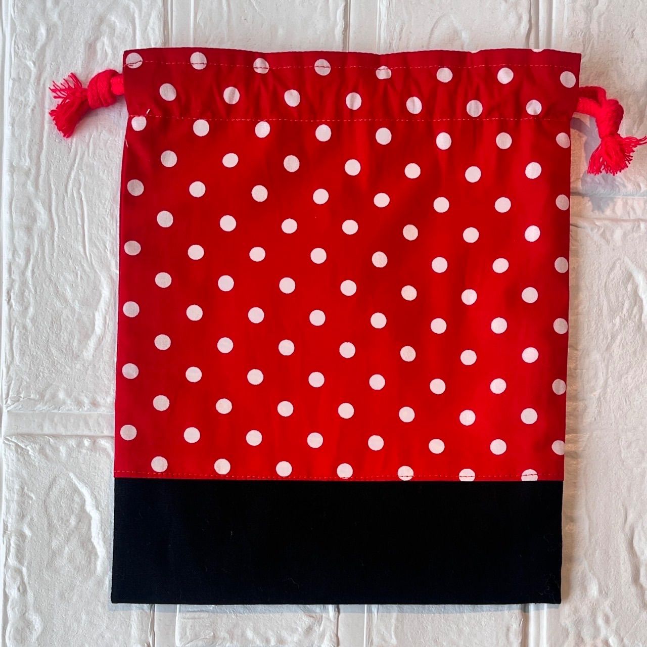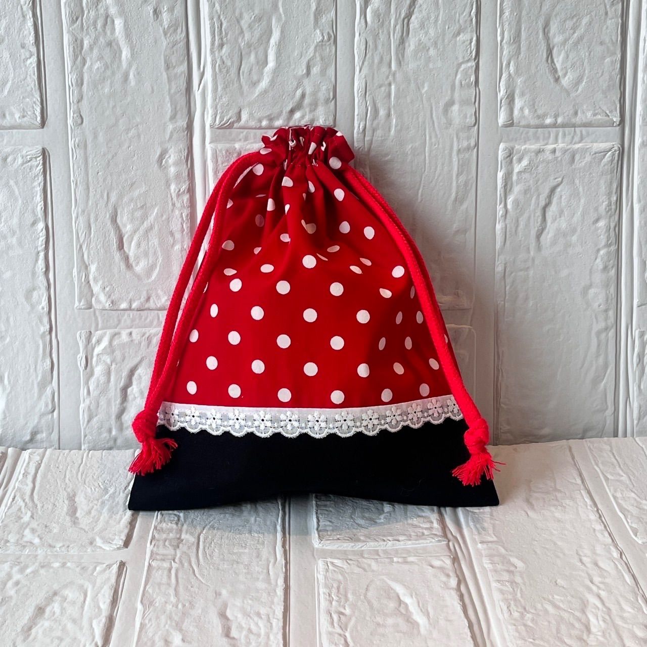 ハンドメイド C175 レース飾り付き ドット 23×19 裏地あり 給食袋 コップ袋 巾着袋 入学 入園