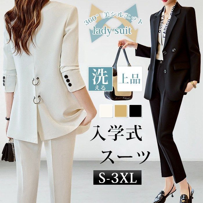 入学式 スーツ レディース パンツスーツ セットアップ 上下2点セット オフィススーツ カジュアル ジャケットパンツ フォーマル 着痩せ 通勤 洗える ワイドパンツ 春 秋 冬 入園式 卒業式 bihe02