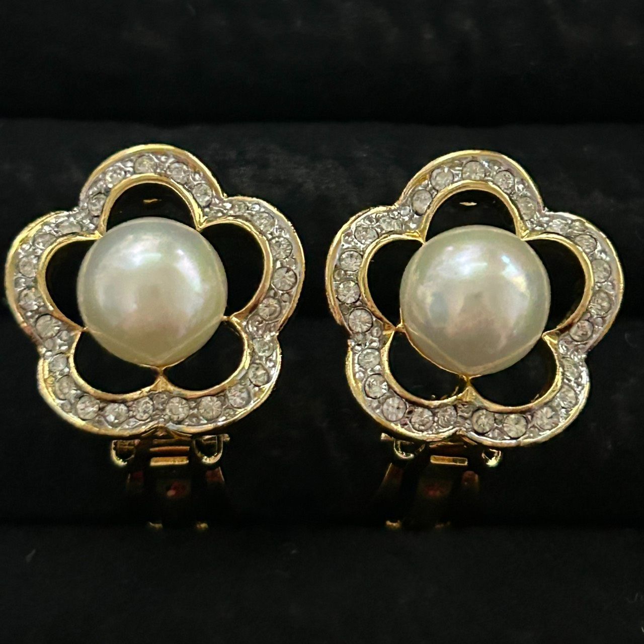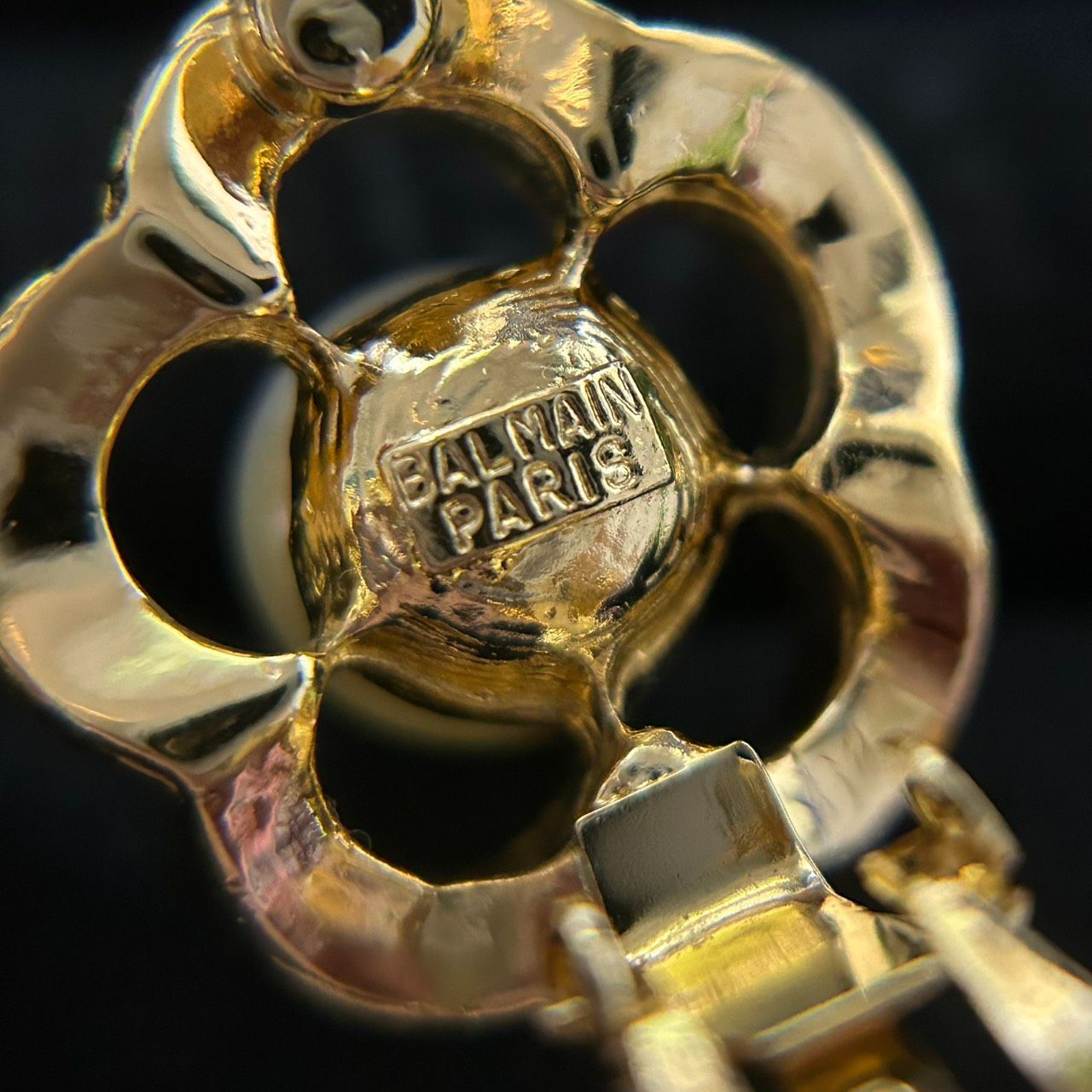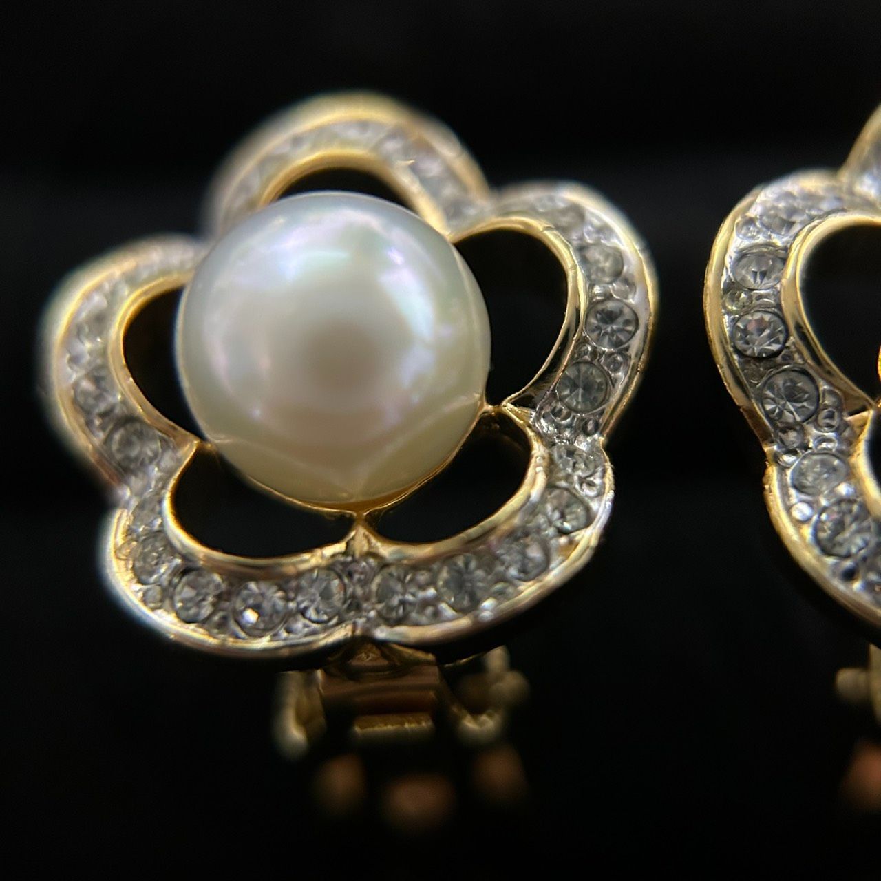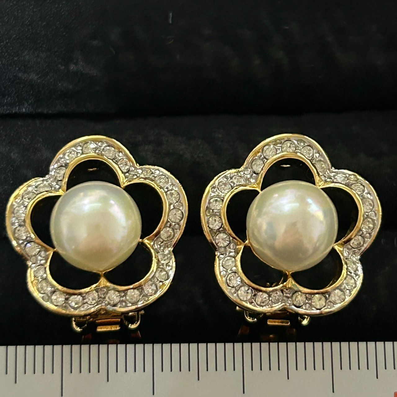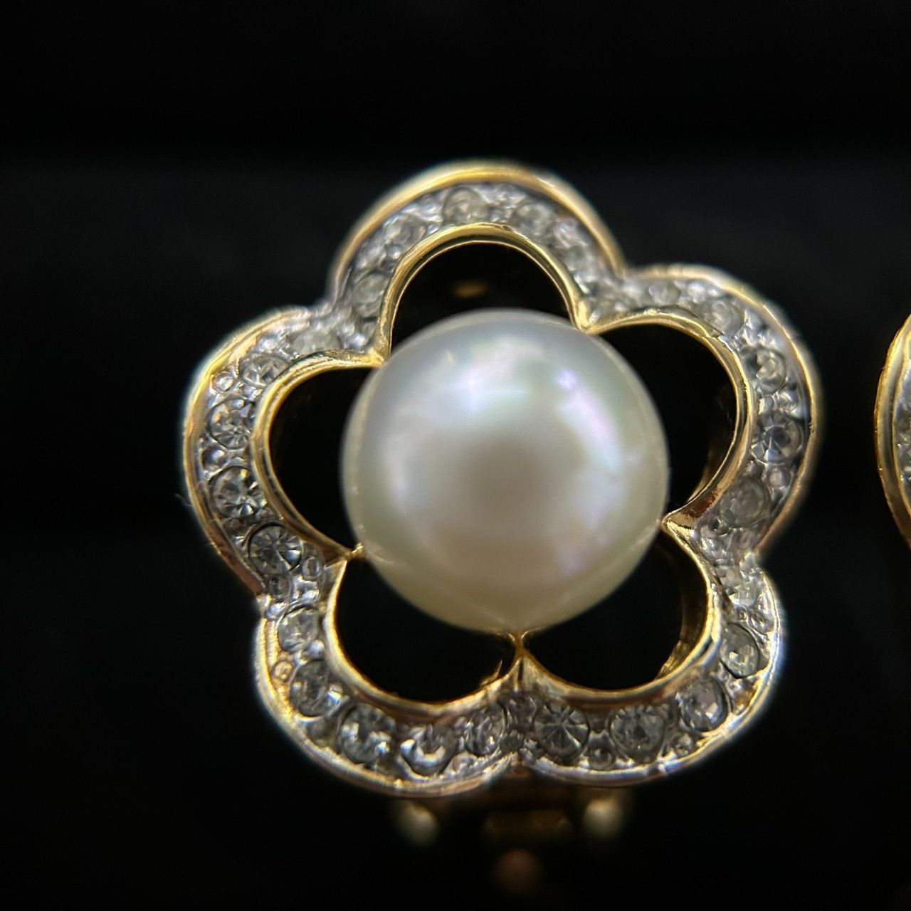 【良品】BALMAIN バルマン PARIS ヴィンテージ イヤリング パール×ラインストーン フラワーデザイン