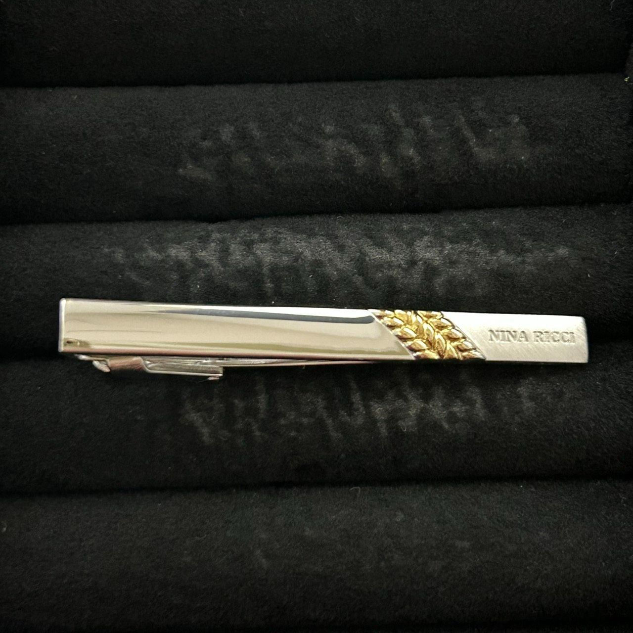 NINA RICCI Tie Clip – Silver × Gold Leaf Design