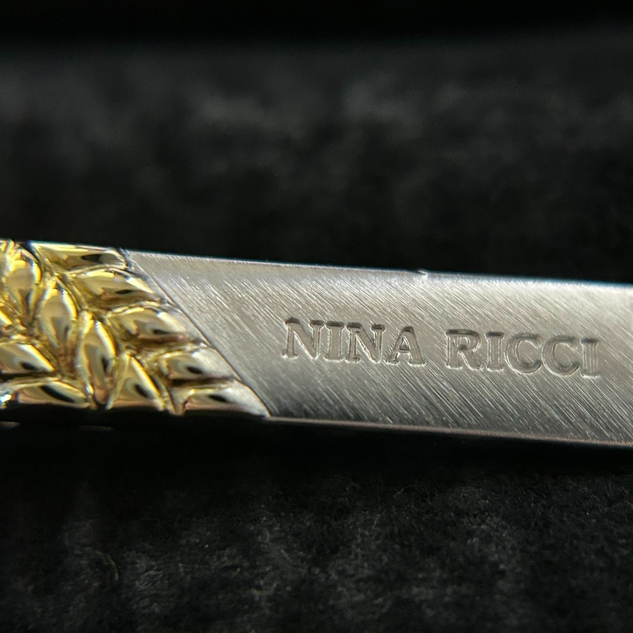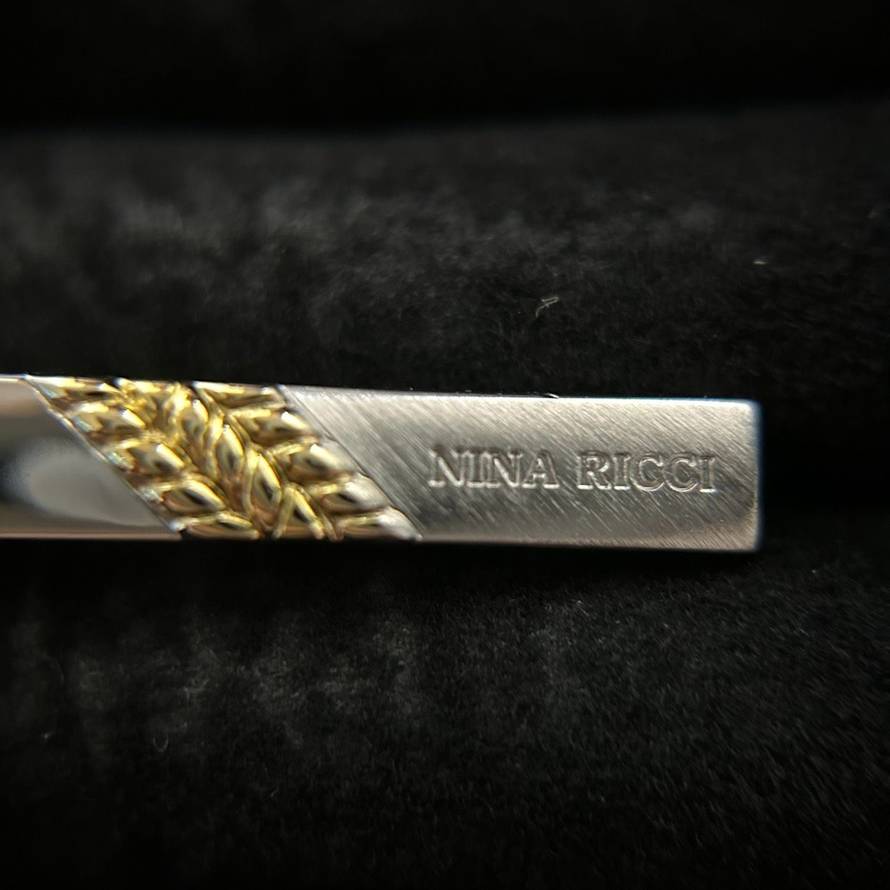 Elegant NINA RICCI tie clip featuring a silver body with a gold leaf motif accent.