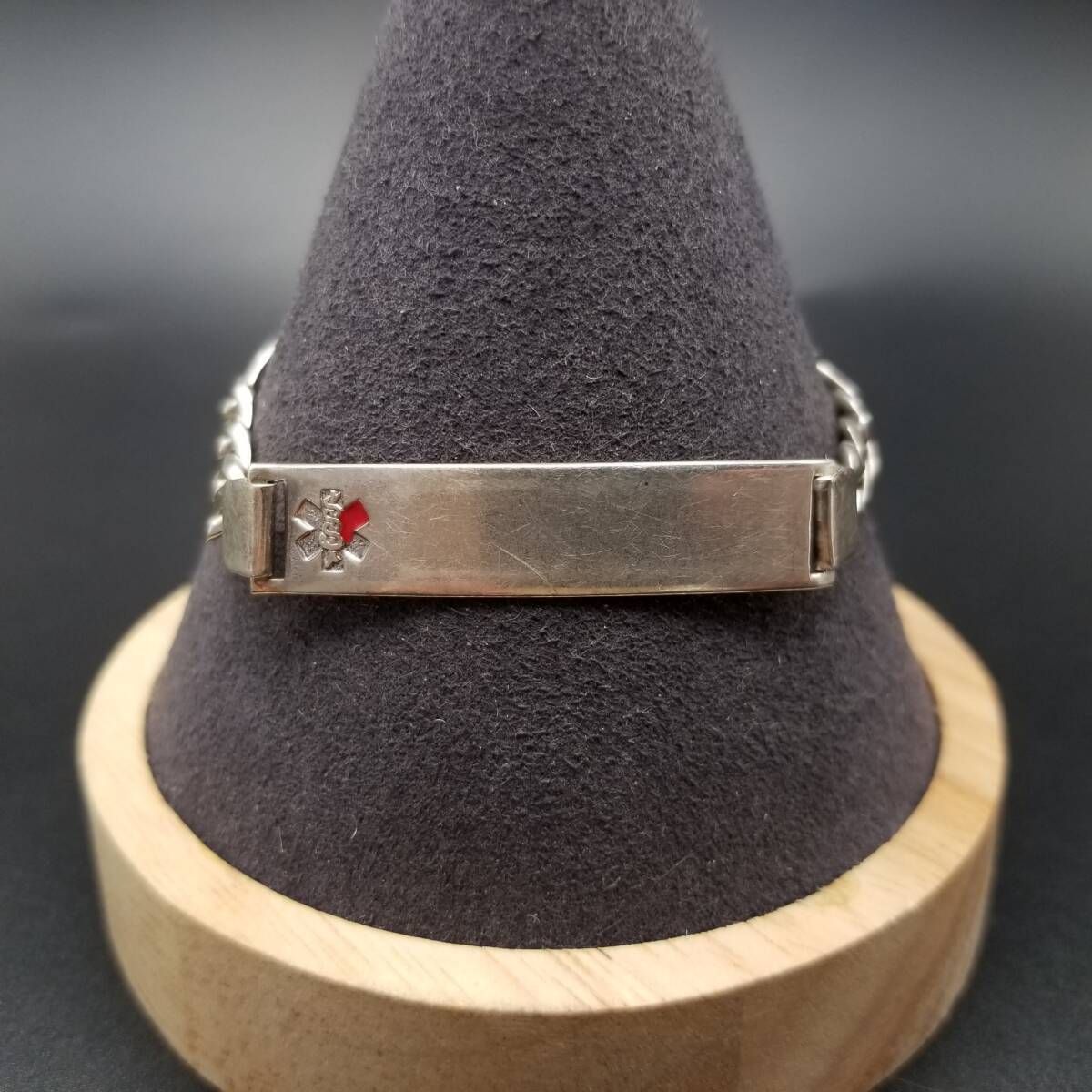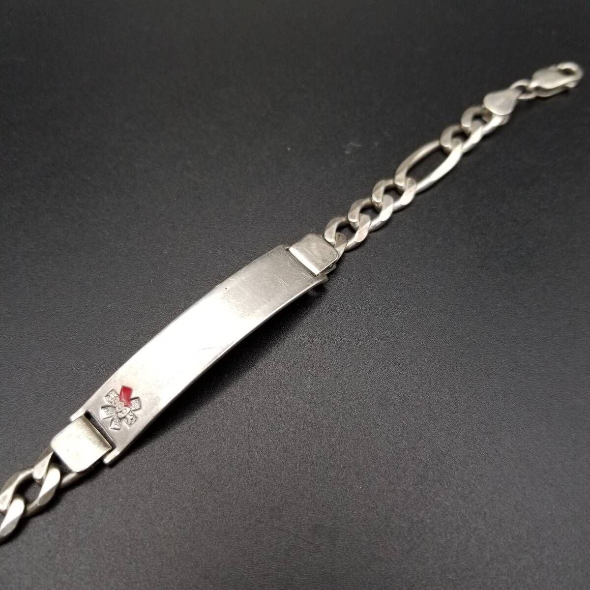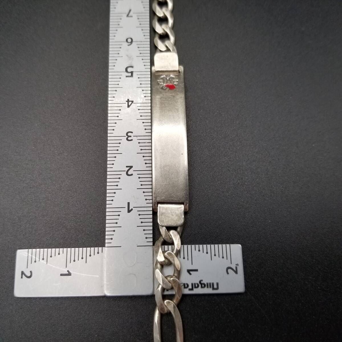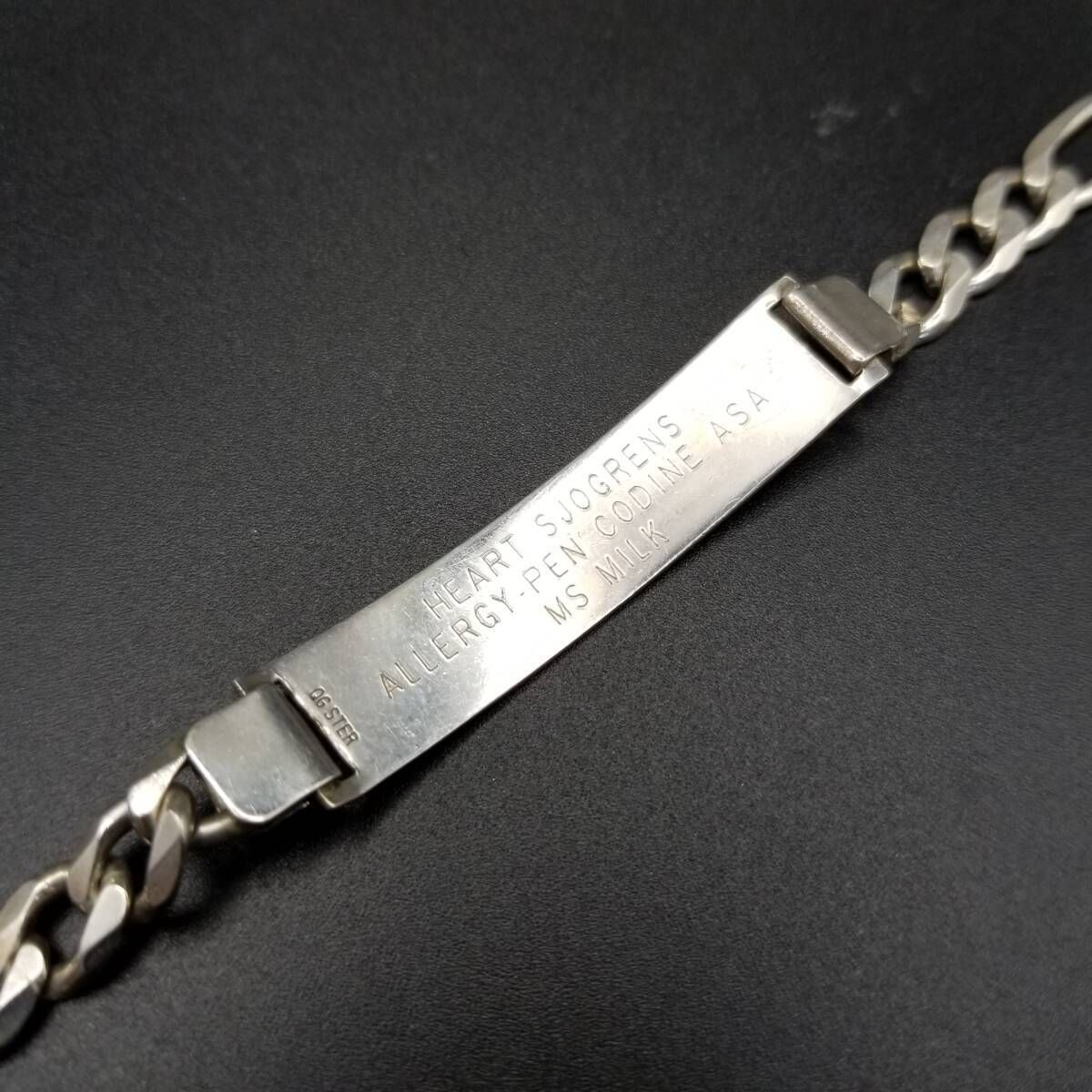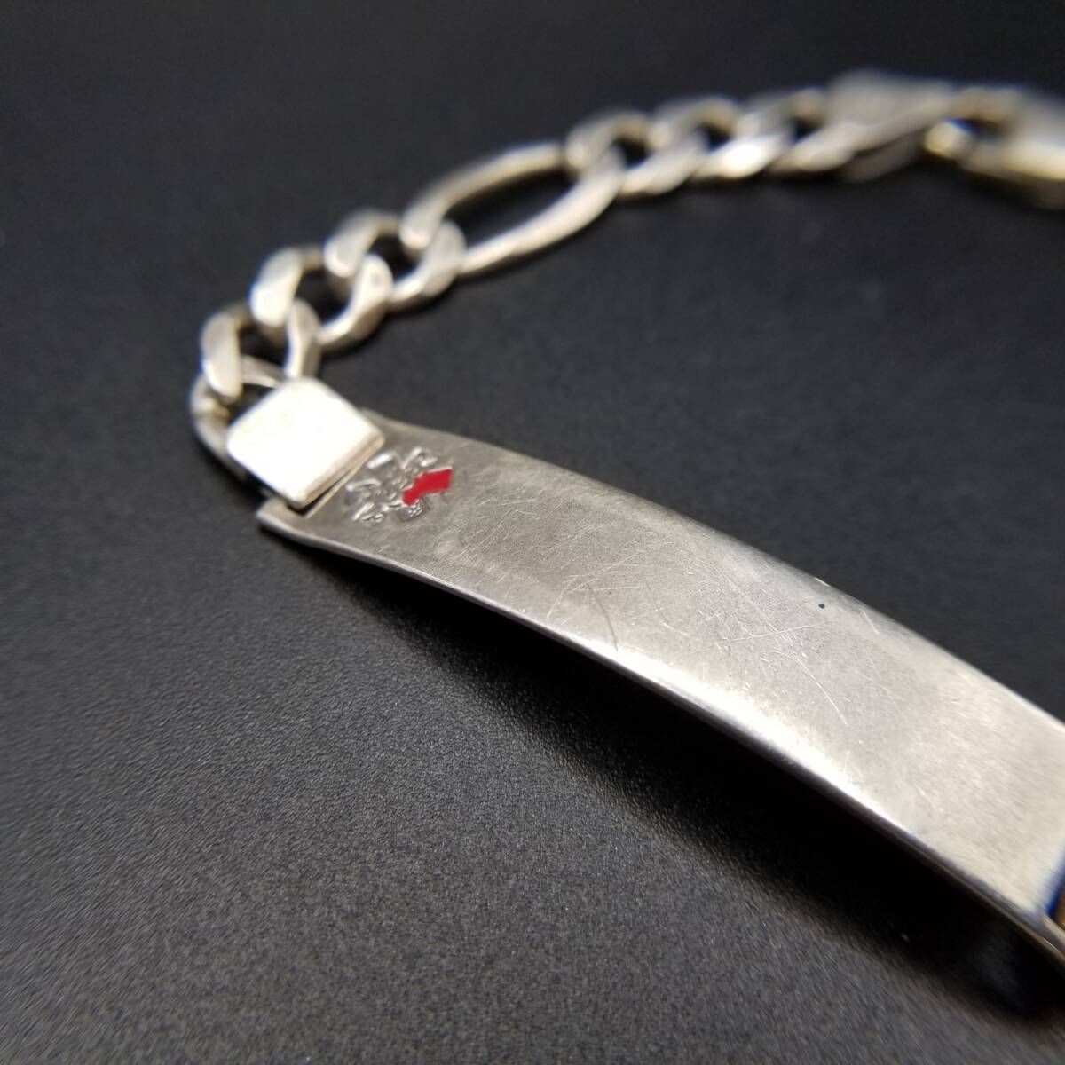 QGI イタリア ヴィンテージ メディカルアラート 長方形プレート 925 シルバー ブレスレット 銀 フィガロチェーン Medical Alert Y19-Z