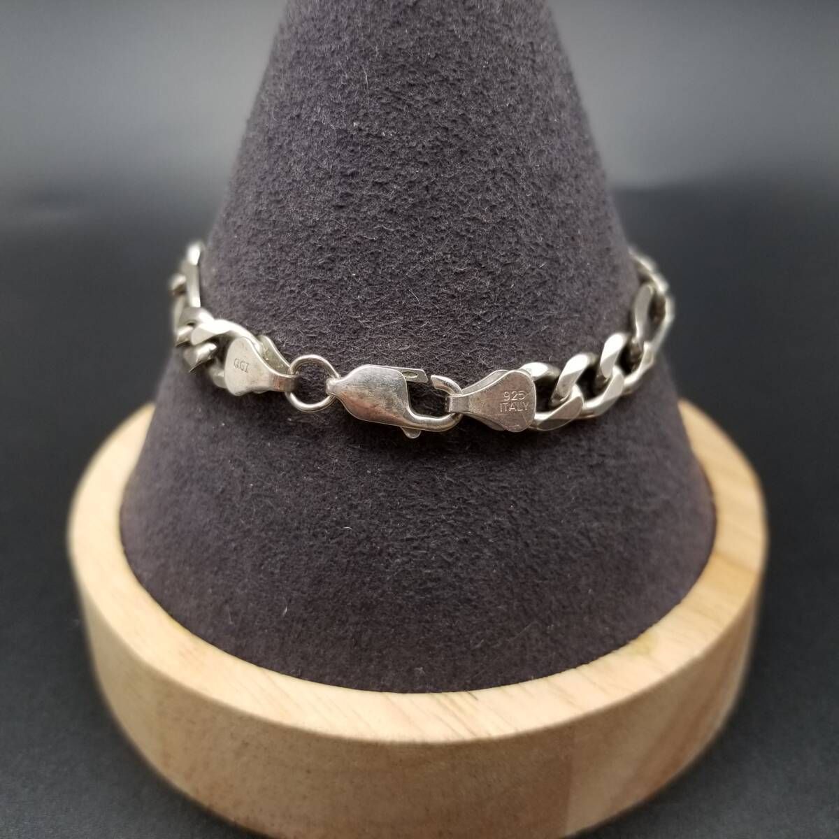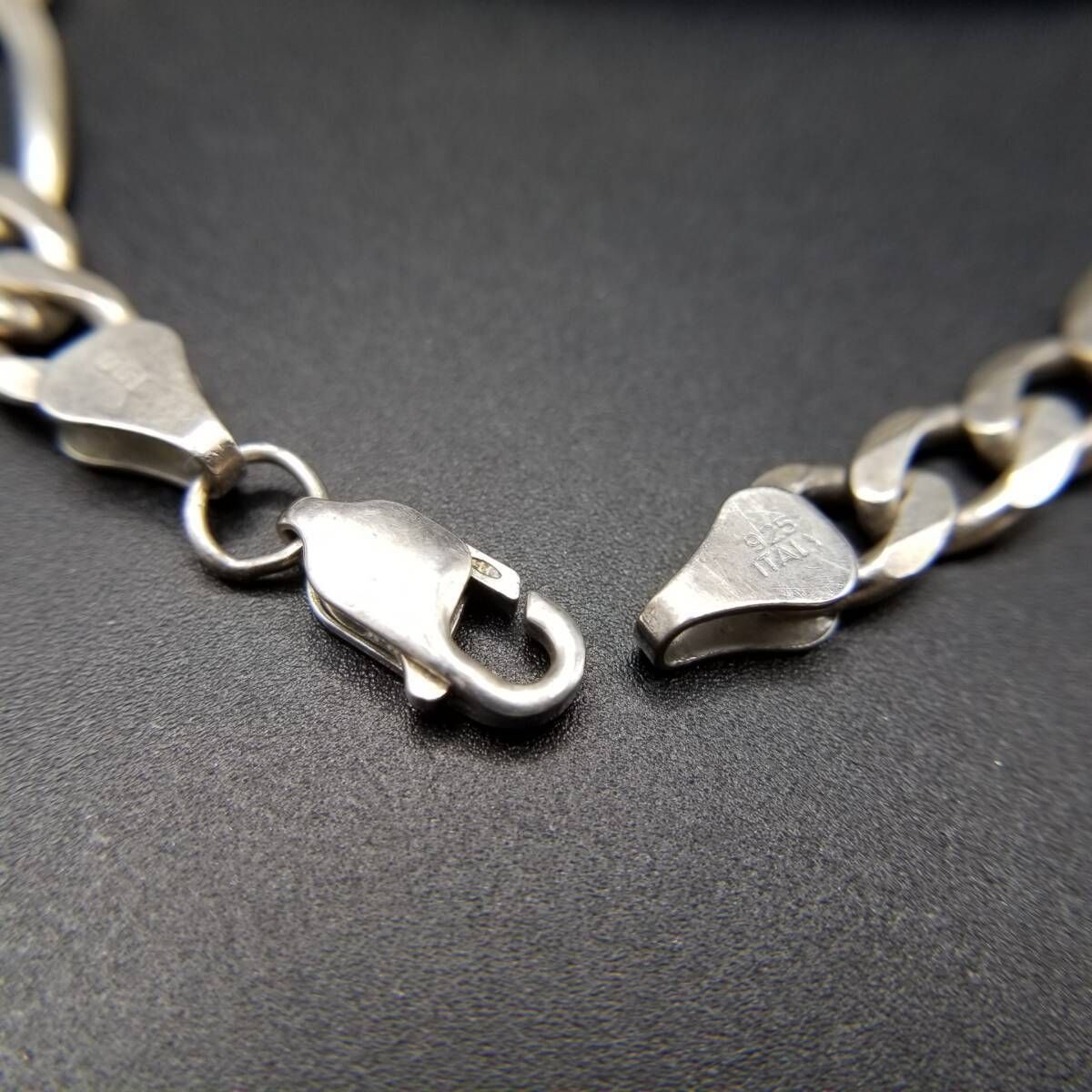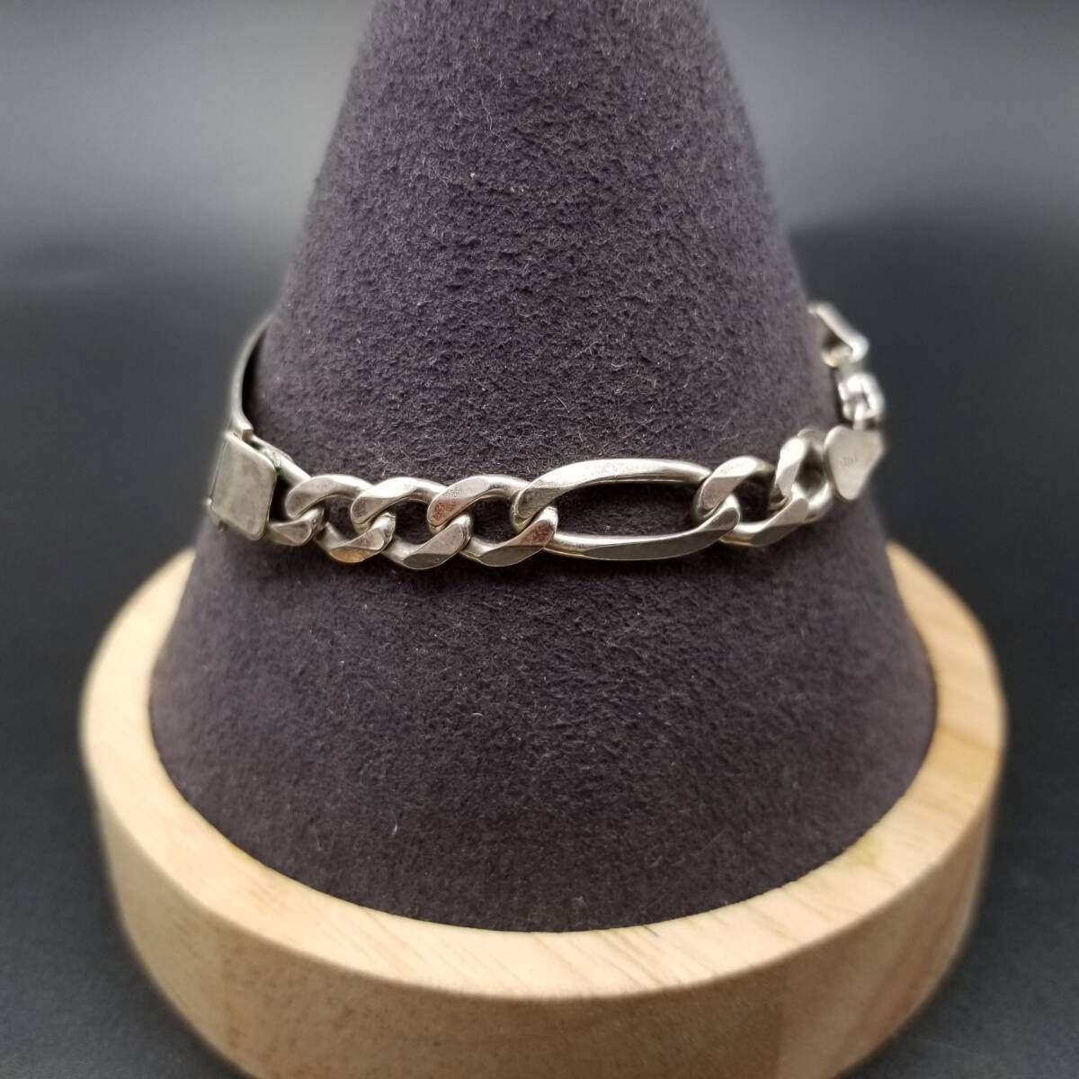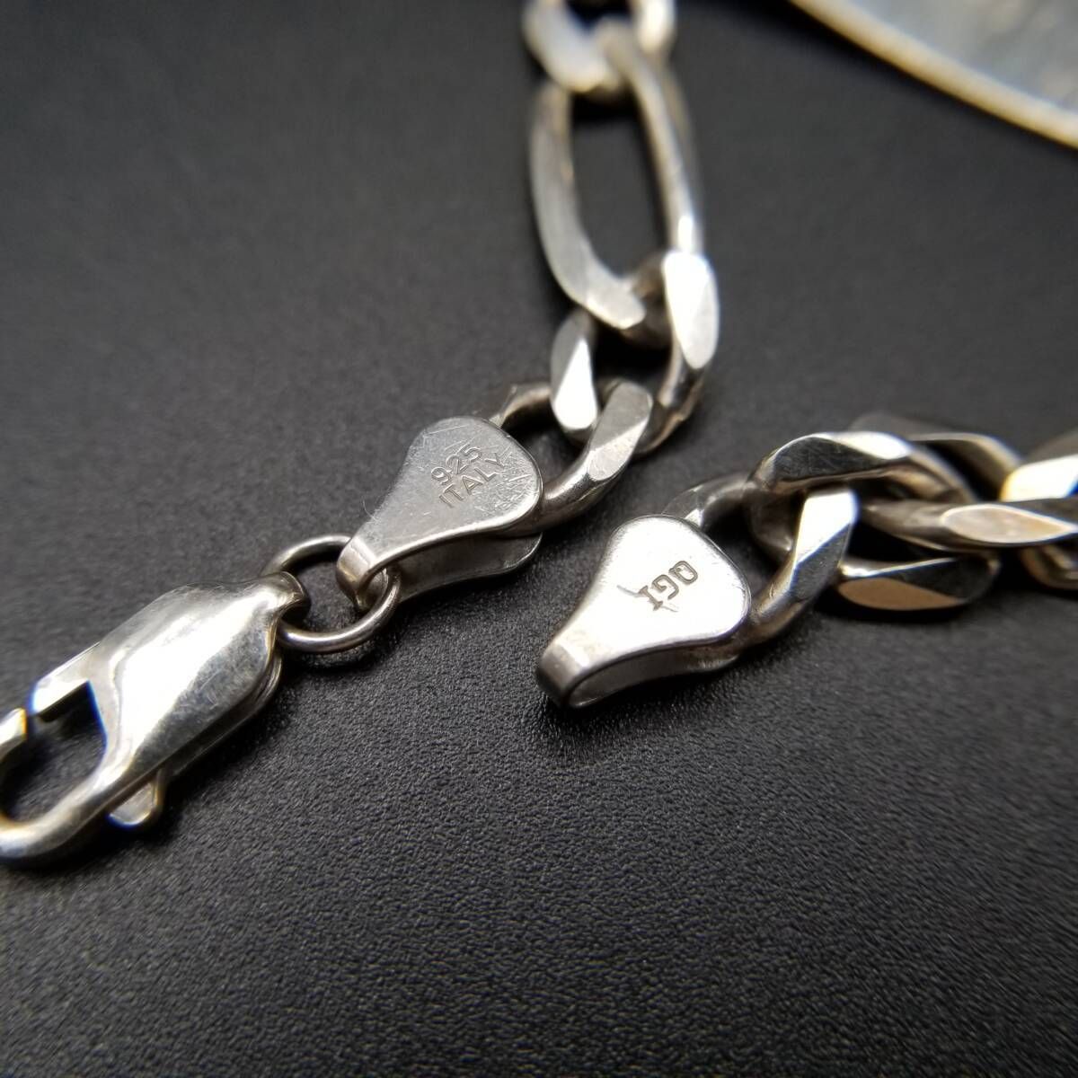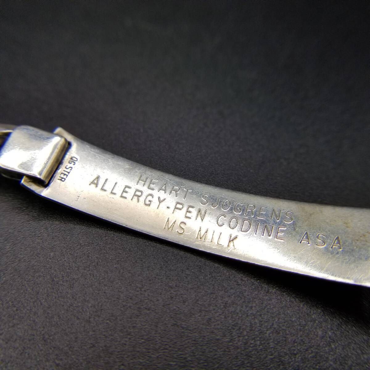 QGI イタリア ヴィンテージ メディカルアラート 長方形プレート 925 シルバー ブレスレット 銀 フィガロチェーン Medical Alert Y19-Z