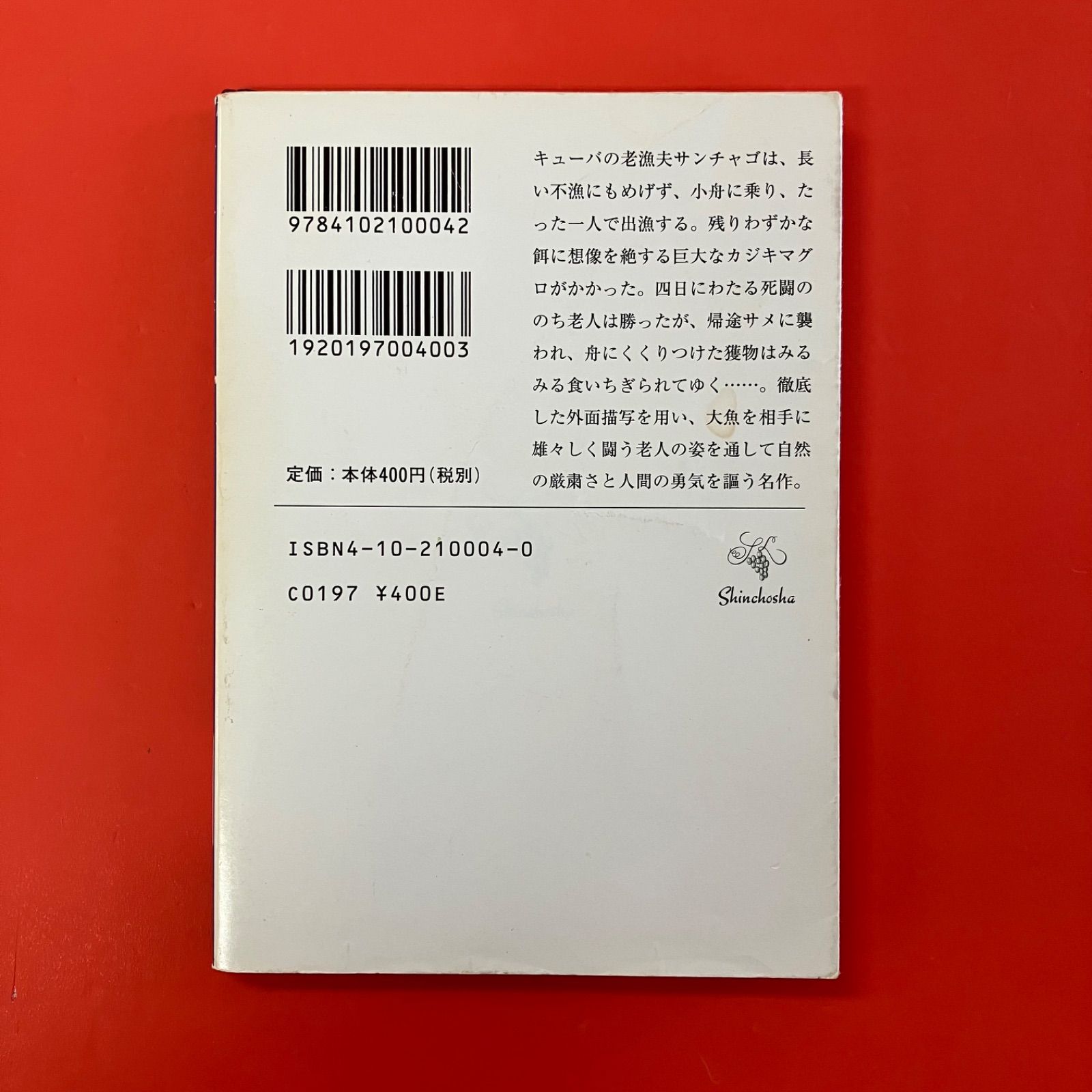 いらっしゃいませ。 商品ページをご覧いただきありがとうございます。 - 老人と海 著 者:ヘミングウェイ 出版社:新潮社 サイズ:文庫 状 態:表紙〜折れ     カバーに汚れ,スレ,破れ スタッフが1点1点丁寧に検品クリーニングしております。 中古商品のため、キズや汚れが見受けられる場合がございます。 いずれもご使用には支障のない程度ですが、あらかじめご了承いただけますと幸いです。 状態につきましては、できる限り写真や説明文にてご案内しておりますので、ご確認のうえご検討ください 未定(出品者が手配)は「ゆうメール/クリックポスト/レターパック」のいずれかで発送します。 配送方法の指定は出来かねますので予めご了承ください。 商品をお客様に安全にお届けするために、ご注文の際は改めて配送先住所の確認をお願いします。 - 販売している古本は、皆様からの善意で寄せられたものです。 この商品は、象と花のパートナーとしてご参加いただいている下記の企業・団体や地域の方々から届けられました。 盛岡信用金庫/UniLife(ジェイ・エス・ビー)/第一生命/川徳/NTT東日本/信幸プロテック/JTB/岩手ダイハツ/クロステラス盛岡/リコージャパン/みずほ銀行/損保ジャパン/岩手日報社/盛岡大学/盛岡第一高等学校/大船渡高等学校/北上翔南高等学校/盛岡書房 購入していただくことで商品代金の「10%」が、病気とたたかう子供たちへ贈られる「本の購入費」となります。 本の循環を通して、読書の普及と子供たちの成長を支えることを目的として販売しています。 本を読むことが、あなたと子供たちの豊かな未来を育むことを信じて。 詳しくはショップ情報をご覧ください。 - 販売者 株式会社盛岡書房 古物商 岩手県公安委員会許可 第211010001283号