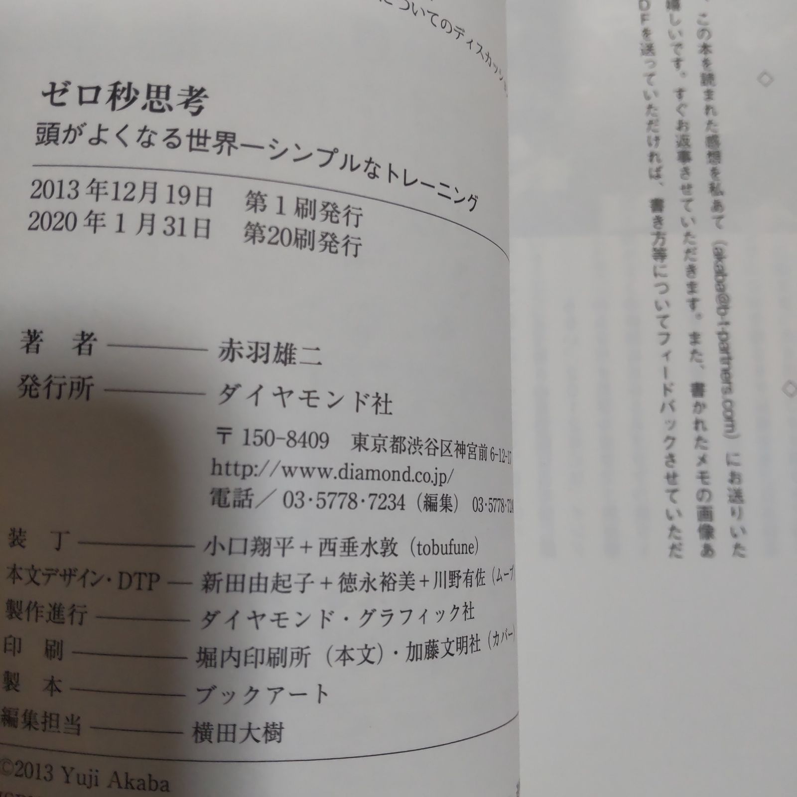 「ゼロ秒思考 : 頭がよくなる世界一シンプルなトレーニング」赤羽雄二