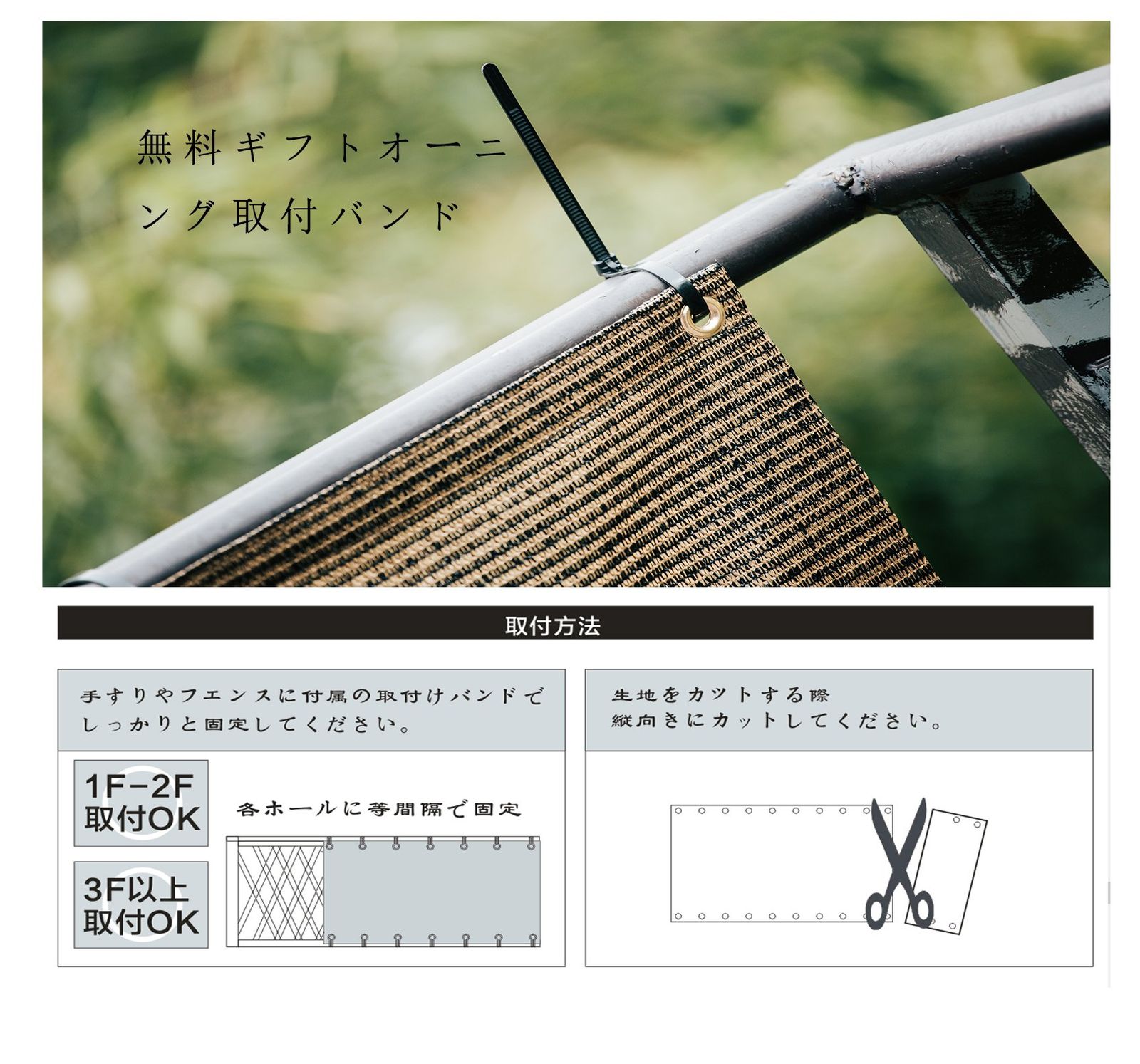 新品 【隣の視線が気になる方へ】 SEASONS ベランダ 目隠し シェード 180x100cm モカ色。高密度素材でプライバシー保護 & UVカット!マンションのフェンスや窓に最適。風通し良く圧迫感なし。結束バンド付属(長期利用は別途強化品が