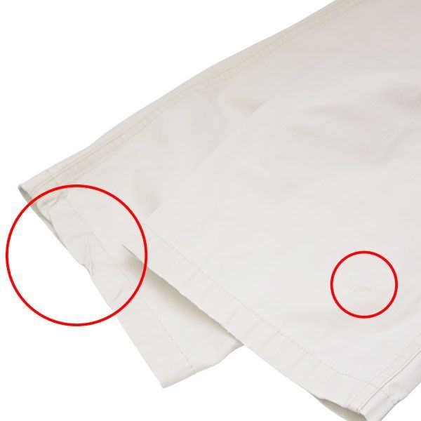 数か所に薄ヨゴレと裾に若干のダメージが見受けられますが、着用時に目立つ汚れやダメージは特になく、ユーズド感が少々ございますが気にならない程度です。