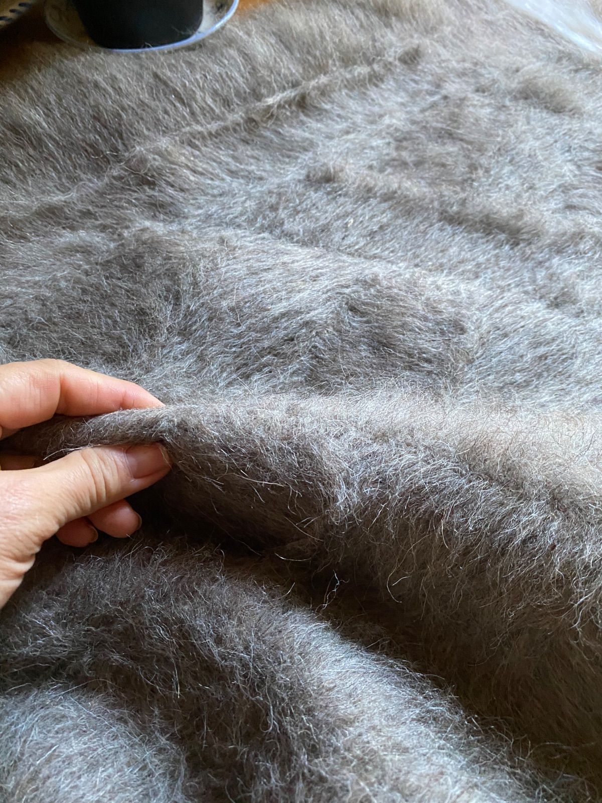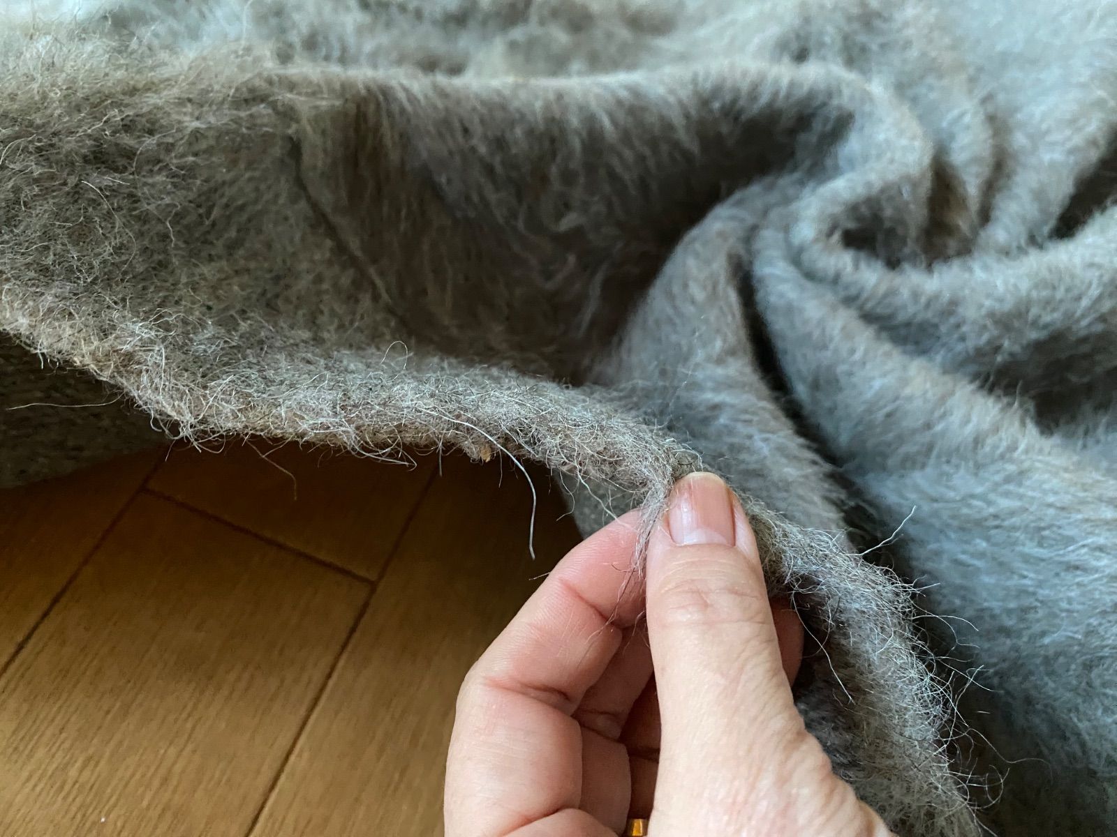 また、毛をけば立てて幾何学模様が入っておりますが、ウールではこのような毛羽立ちの模様はできないそうです。