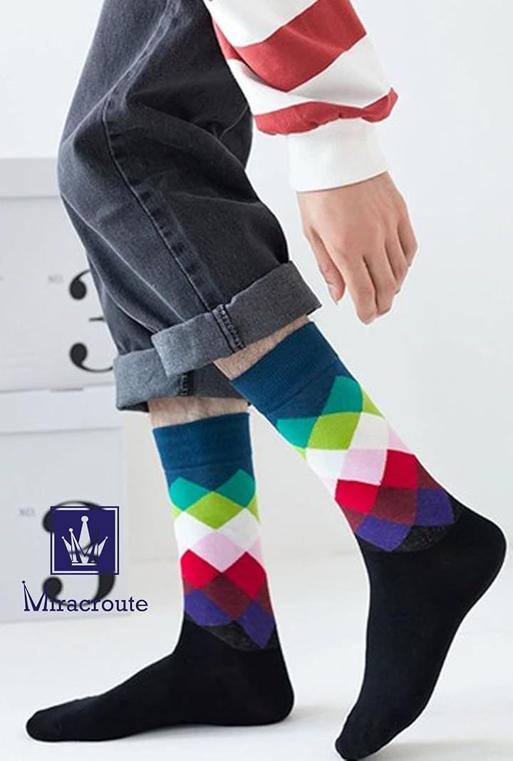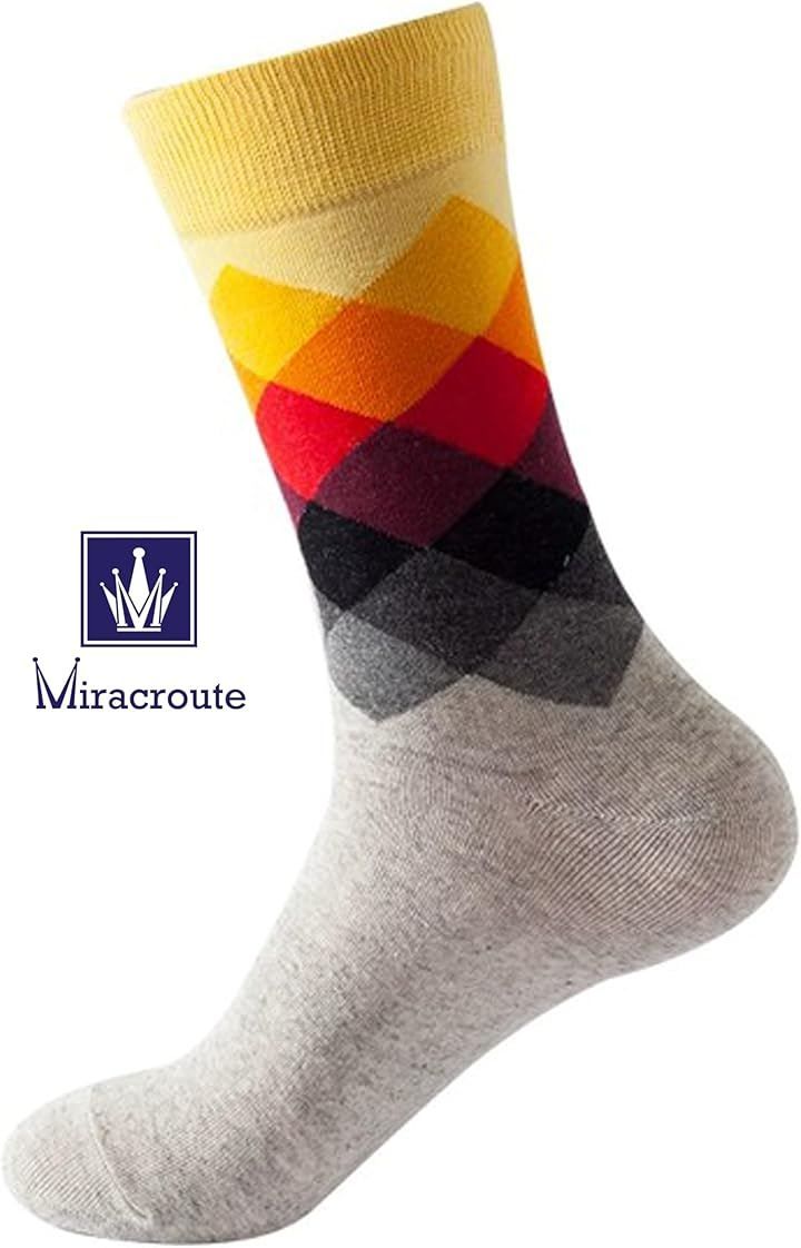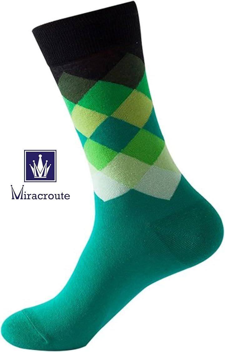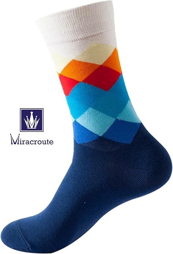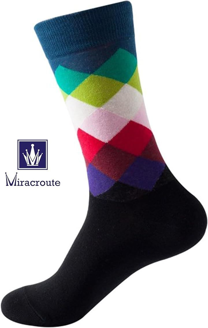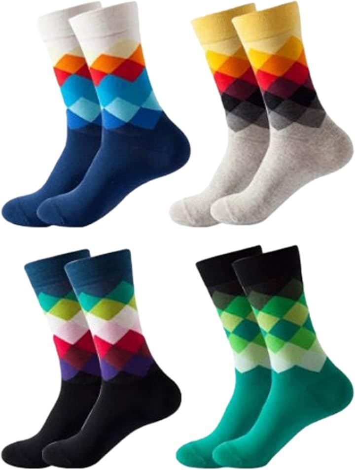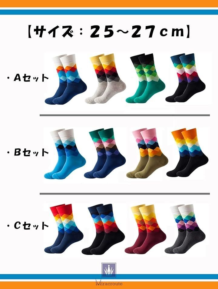 Miracroute 4足 セット ダイヤモンド パターン メンズ クルー ソックス ダイヤ柄 靴下 コーデ おしゃれ ビジネス カジュアル (Aセット, 25-27cm)