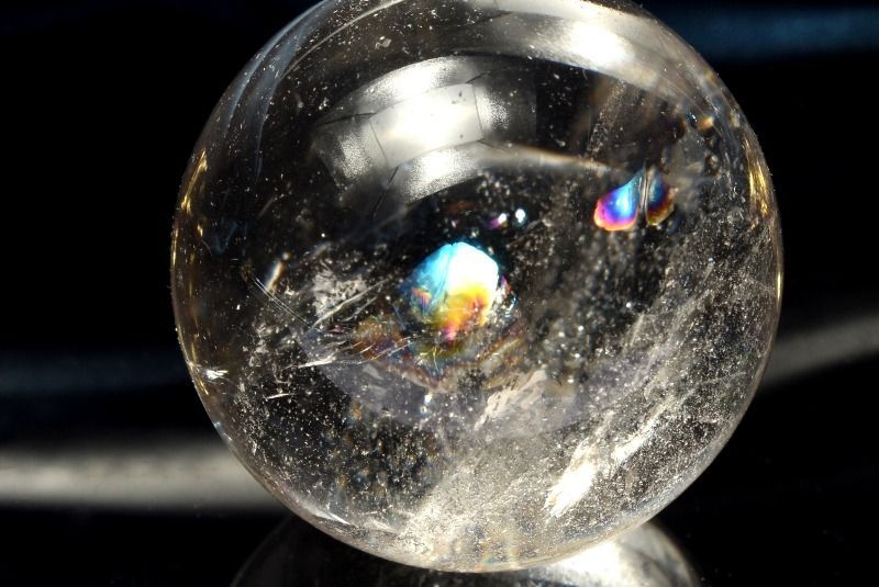 【1点物】虹入り!コロンビア産 レムリアンシードクリスタル 30mm 丸玉(台座付き) スフィア パワーストーン 天然石 _CG6977【宅急便】