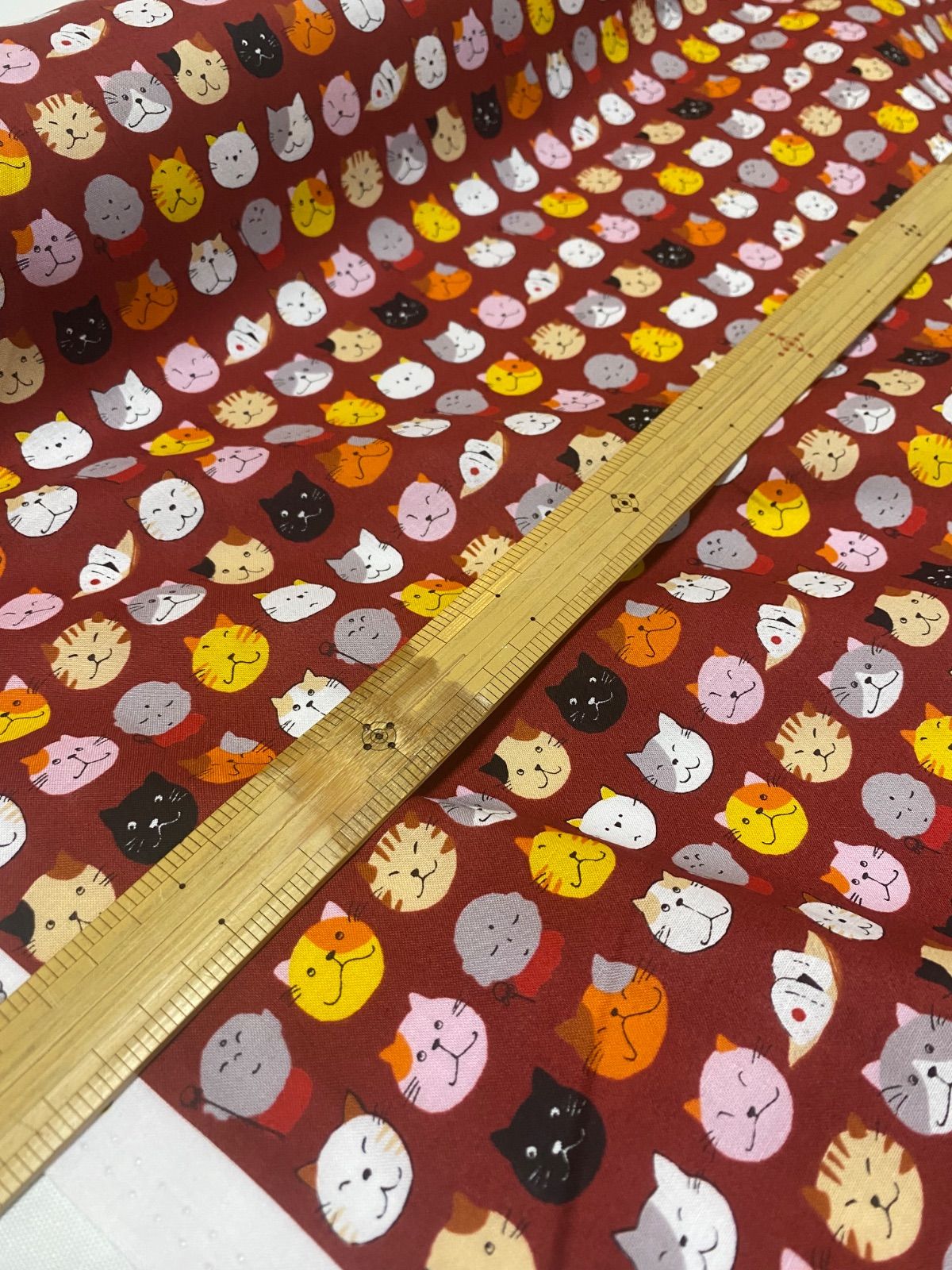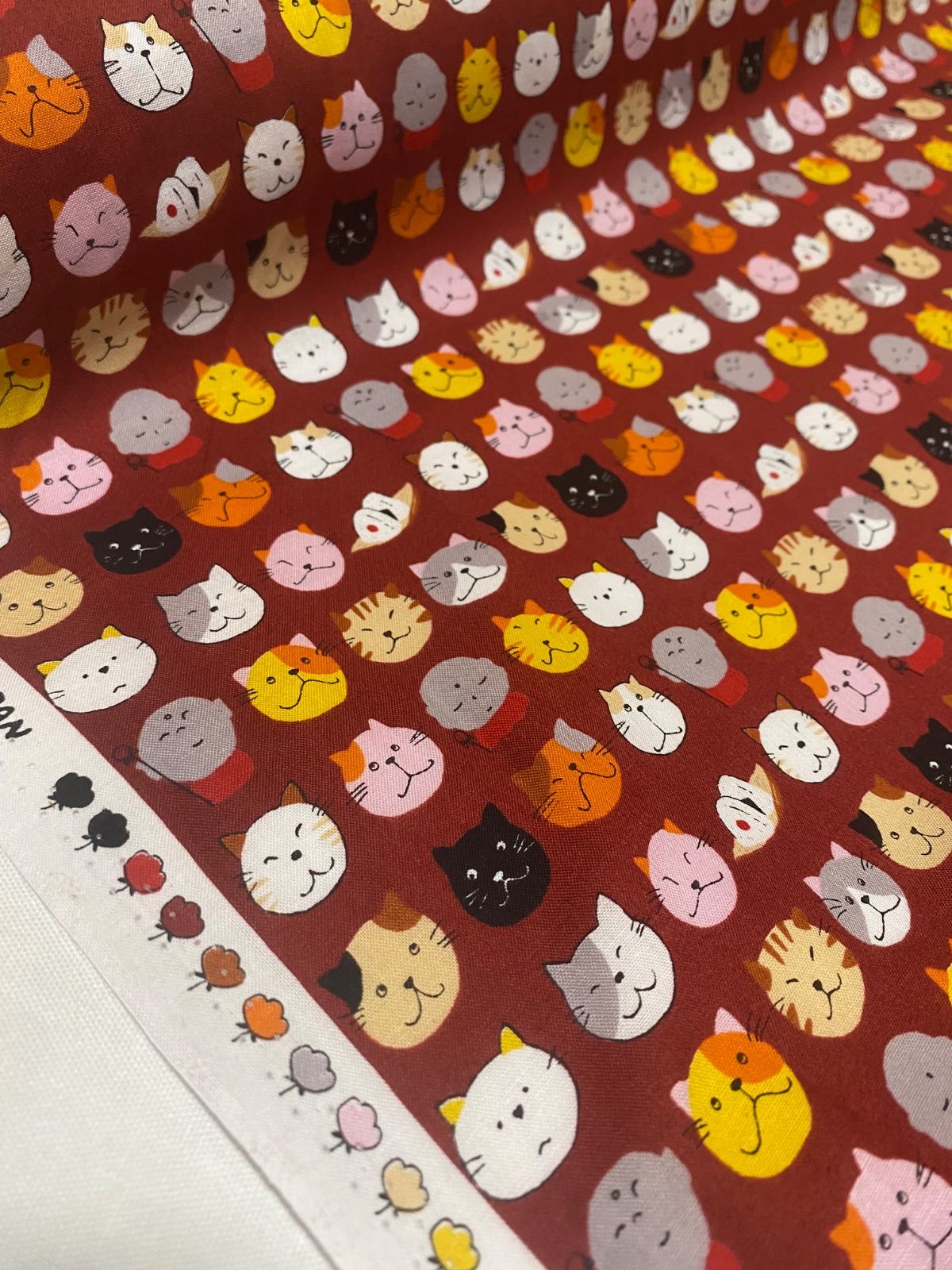 2m 日本製 猫柄 スケア生地 赤 ハギレ