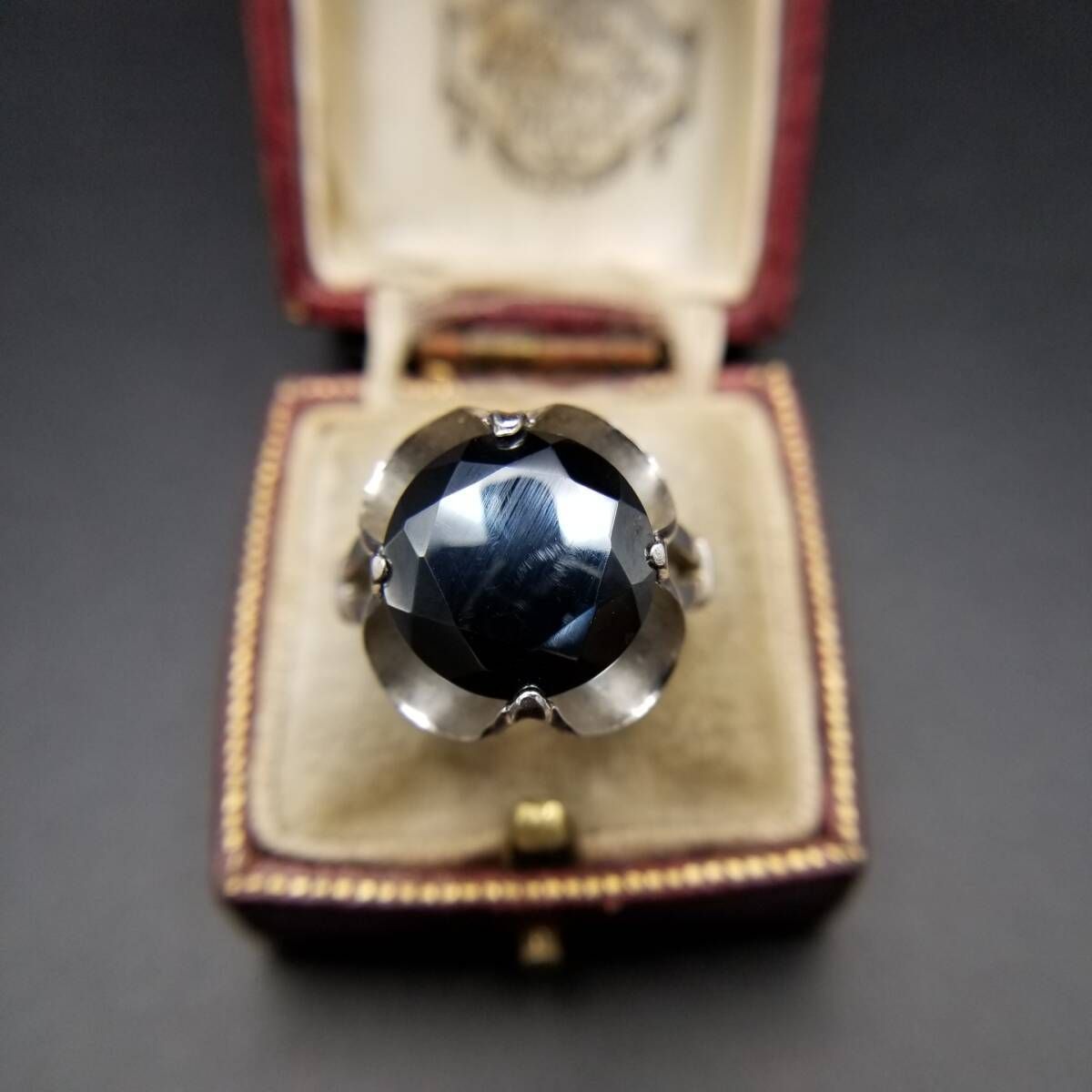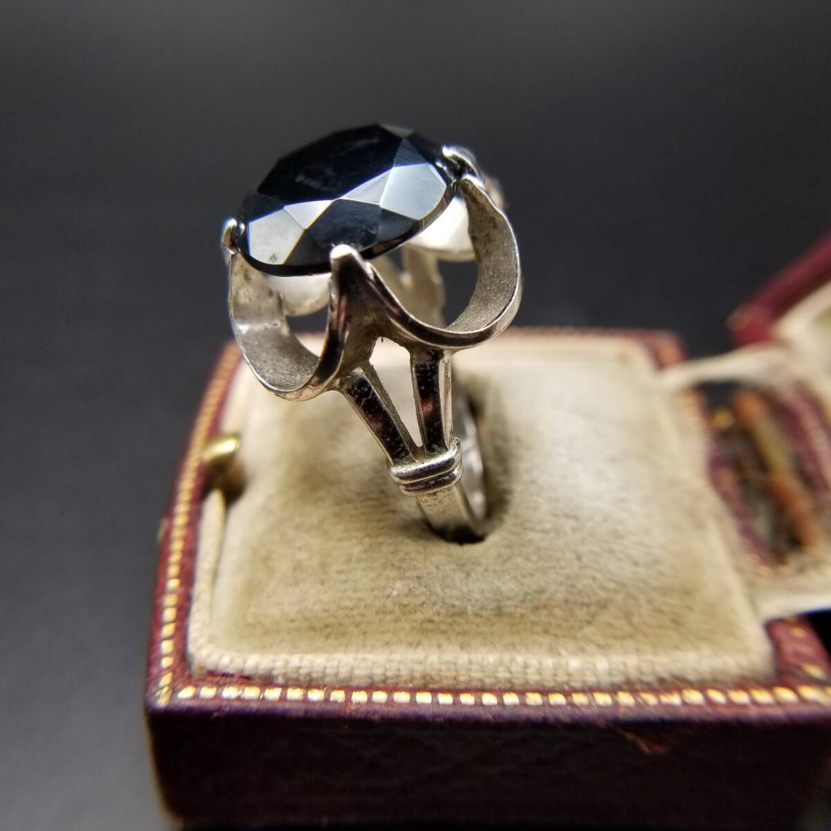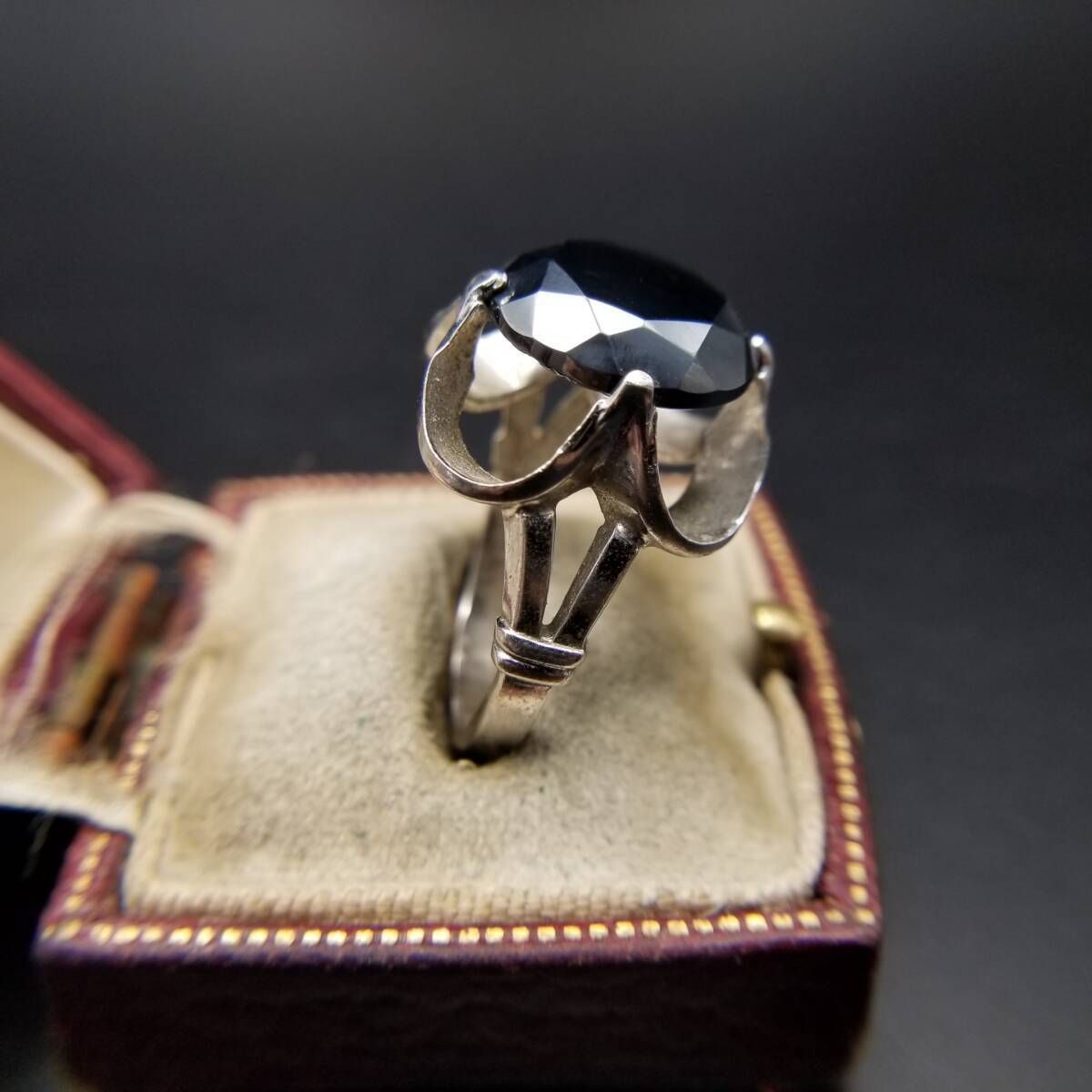 Clark & Coombs ヘマタイト ファセット ドレープシャンク ヴィンテージ リング 925 シルバー 銀 指輪 ステートメントジュエリー Y16-I