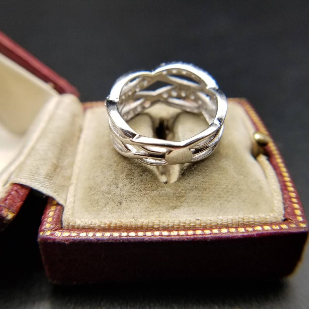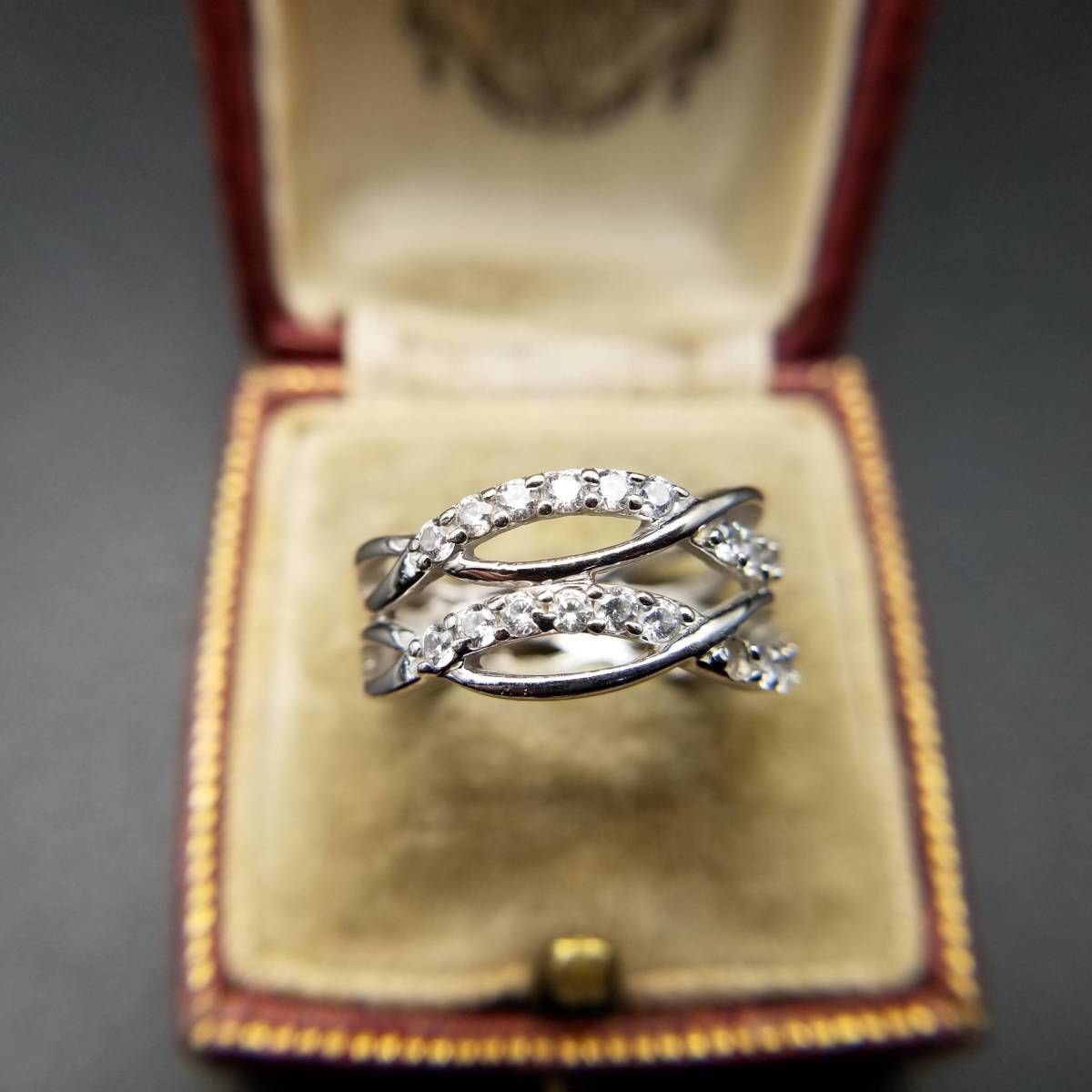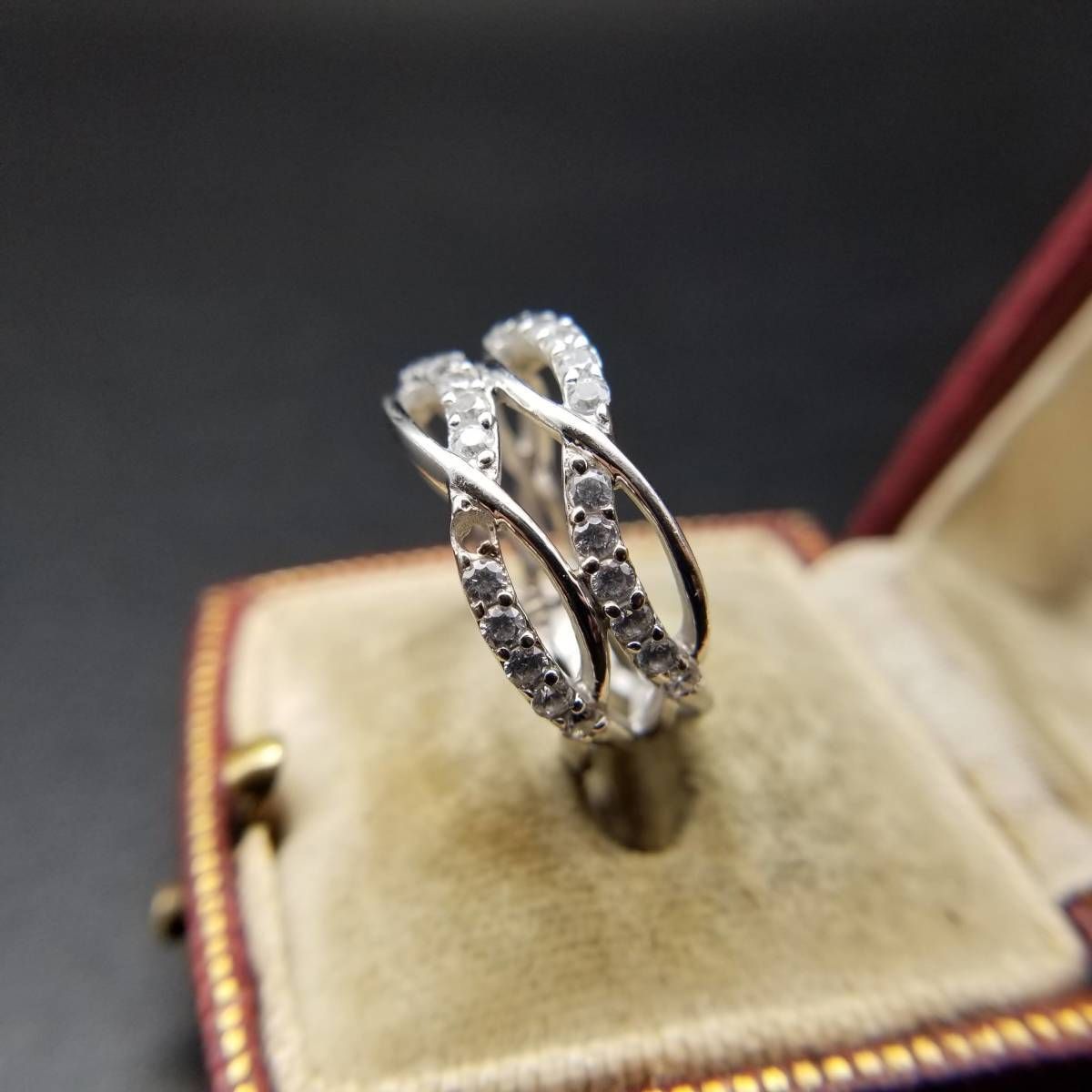 ウェーブ クロス 透かし キュービックジルコニア 925 シルバー ヴィンテージ リング 銀 指輪 クラシックエレガント YND17