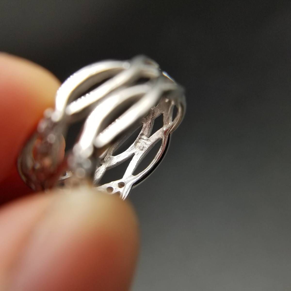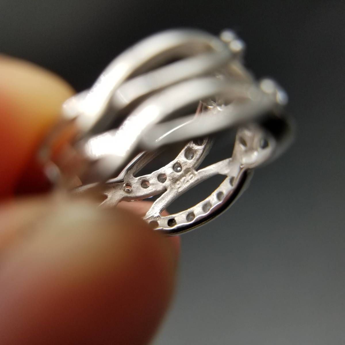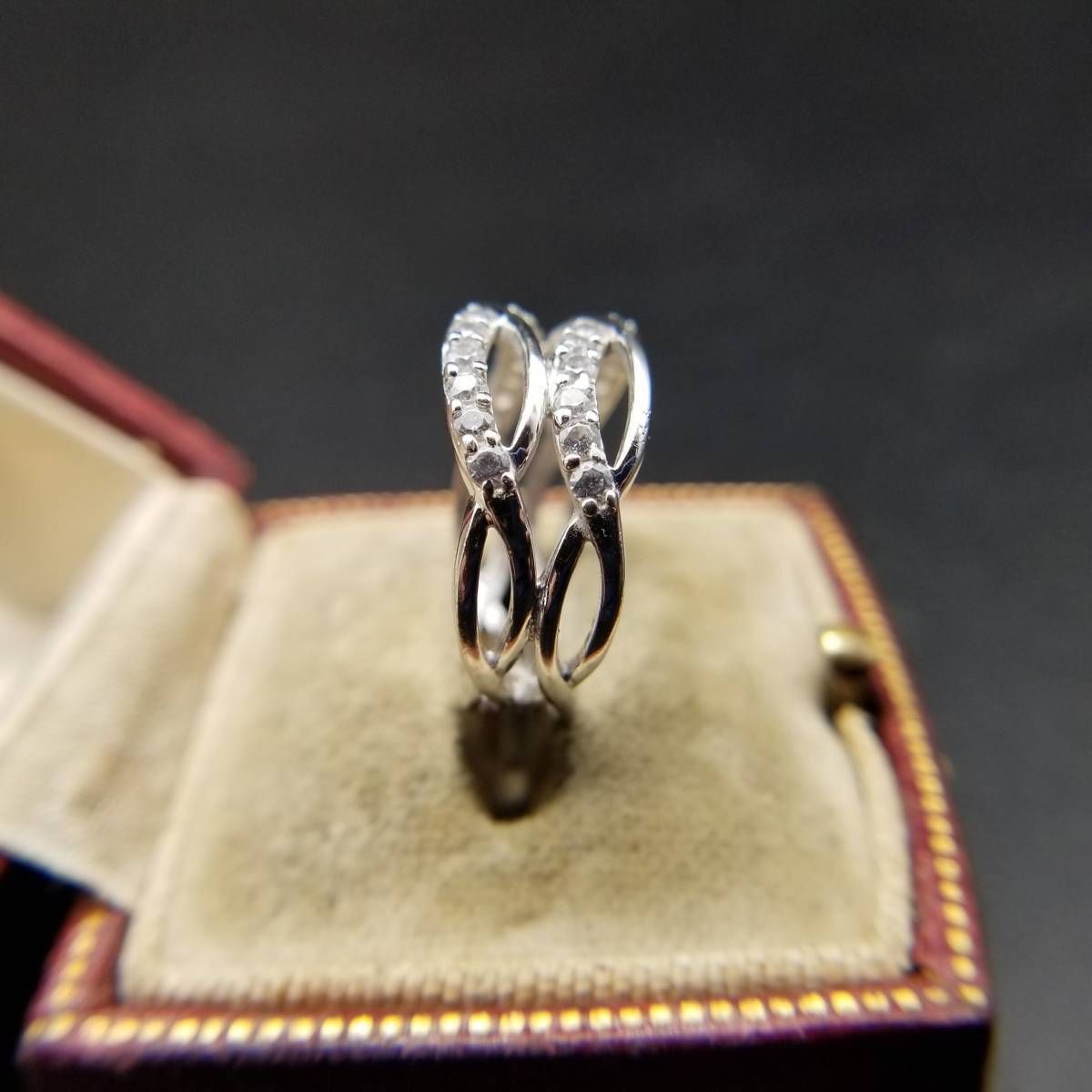 ウェーブ クロス 透かし キュービックジルコニア 925 シルバー ヴィンテージ リング 銀 指輪 クラシックエレガント YND17