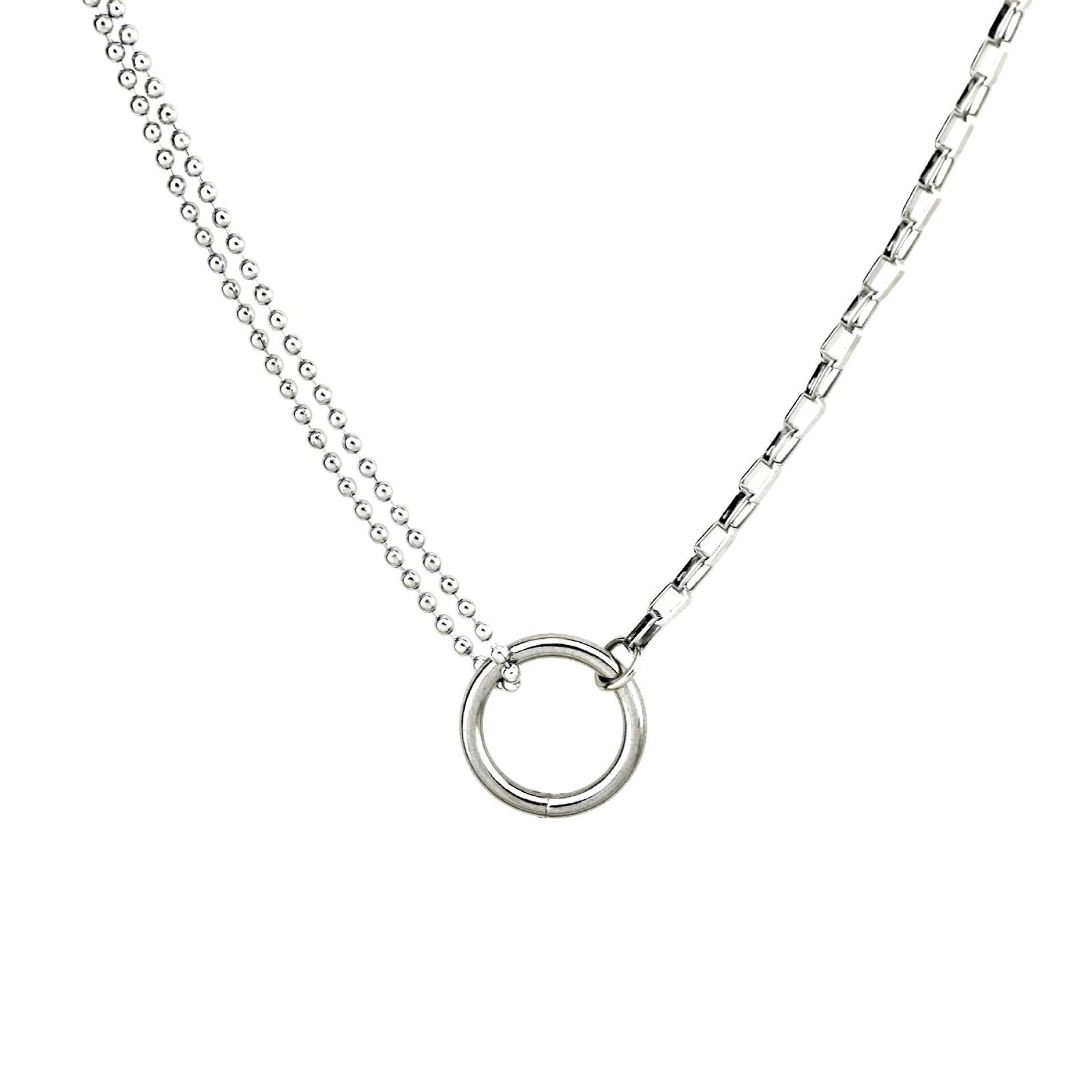フープサークルモチーフが胸元でさりげなく輝く、シンプルで洗練されたネックレス。無駄を省いたデザインだからこそ、どんなコーディネートにも自然に馴染み、首元を上品に引き立てます。チェーンは長さ調整が可能で、重ね付けにも使いやすく、スタイルに合わせたアレンジが楽しめるのも魅力。韓国ファッションを意識したオルチャンテイストで、カジュアルからきれいめ、オフィススタイルまで幅広く対応します。主張しすぎない程よい存在感があり、普段使いはもちろん、お出かけやギフトにも選びやすいアクセサリーです。