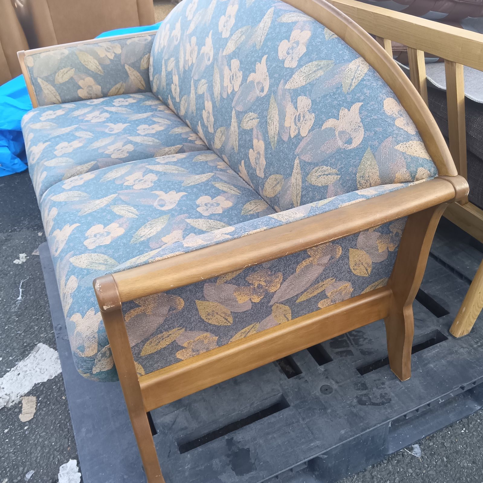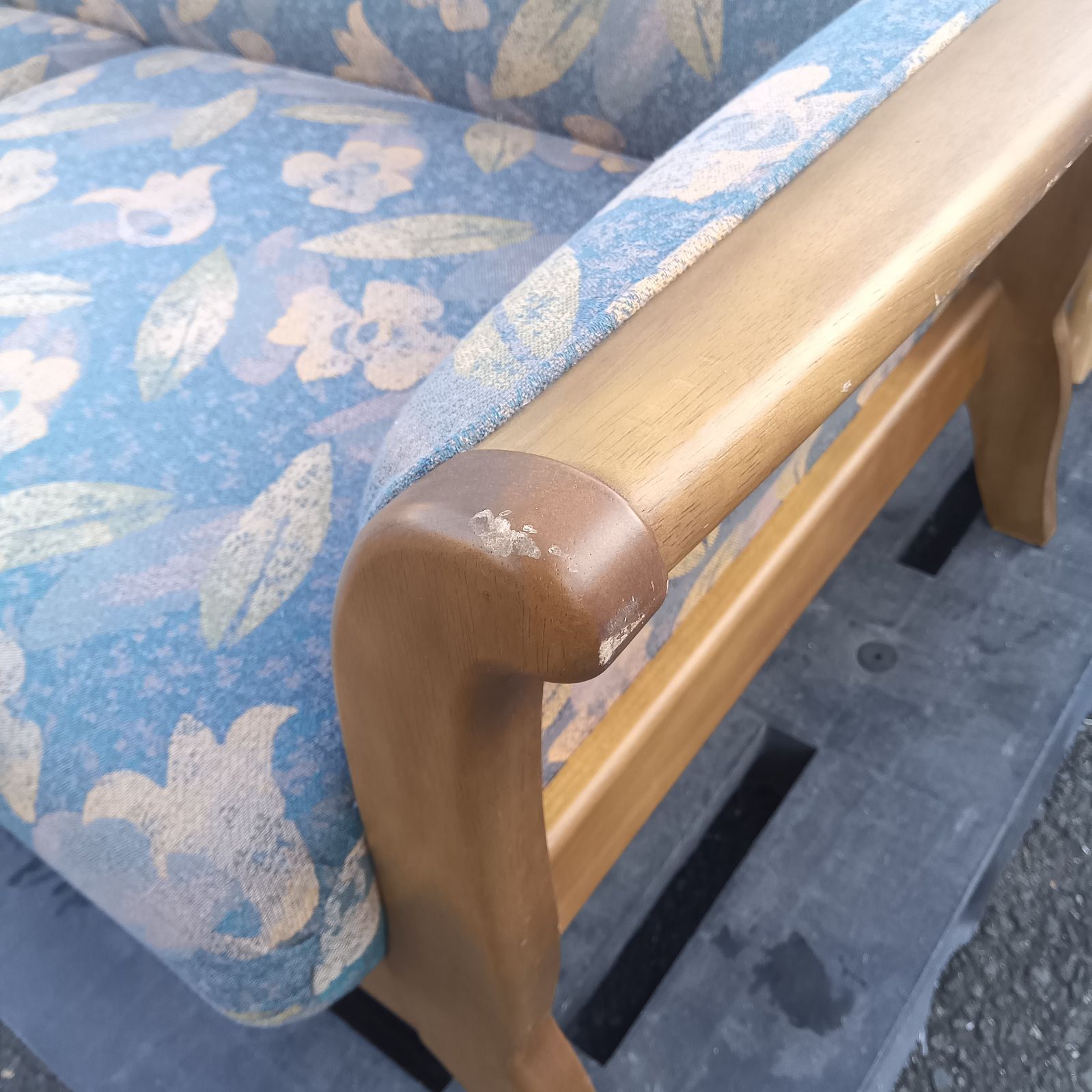【商品内容】 ご覧いただきありがとうございます。 こちらは、日本を代表する家具メーカー「カリモク家具(Karimoku)」の人気ブランド「Chitano(チターノ)」の2人掛けソファです。 エレガントな花柄の布地と、温かみのあるウッドフレームの組み合わせが、レトロで落ち着いた雰囲気を醸し出しています。 カリモクならではのしっかりとした座り心地で、長時間座っても疲れにくい設計になっています。 リビングのメインソファとしてはもちろん、寝室や書斎のくつろぎ用としても最適です。 アーム部分などに使用に伴う傷がございますが、それもまたヴィンテージ感のある「味」として楽しんでいただける一品です。 【おすすめポイント】 置くだけでお部屋がパッと明るく、そして上品になる魔法のようなソファです。 憧れのカリモク家具を、気兼ねなくガシガシ使える価格で手に入れるチャンスです! 【状態】 ・木製アーム(肘掛け)部分に、使用に伴う目立つ傷、打痕、塗装の剥がれがございます。 ・ファブリックには経年による使用感が見られます。 ・全体的に中古品特有の小傷やスレがございます。 ※画像にて状態をよくご確認ください。 【サイズ】 幅 約125cm × 奥行 約70cm × 高さ 約70cm ※おおよそのサイズです。正確な計測をご希望の場合はお問い合わせください。 【取引条件】 あくまで中古品のため、**現状でのお引き渡し**とさせていただきます。大変恐れ入りますが、お引き渡し後の返品や返金には応じかねますので、ご理解をお願いいたします。 **ご購入前にご納得いただくため**、商品の詳細な確認や現物確認をご希望の方は、お気軽にお申し付けください。 【引取場所】 大阪府羽曳野市尺度にて引取対応いたします。 【配送】 基本は引取ですが、配送も可能です。(近隣は5,000円~。遠方の場合はアートセッティングデリバリー様に委託いたします) 購入前にお気軽にご相談ください。