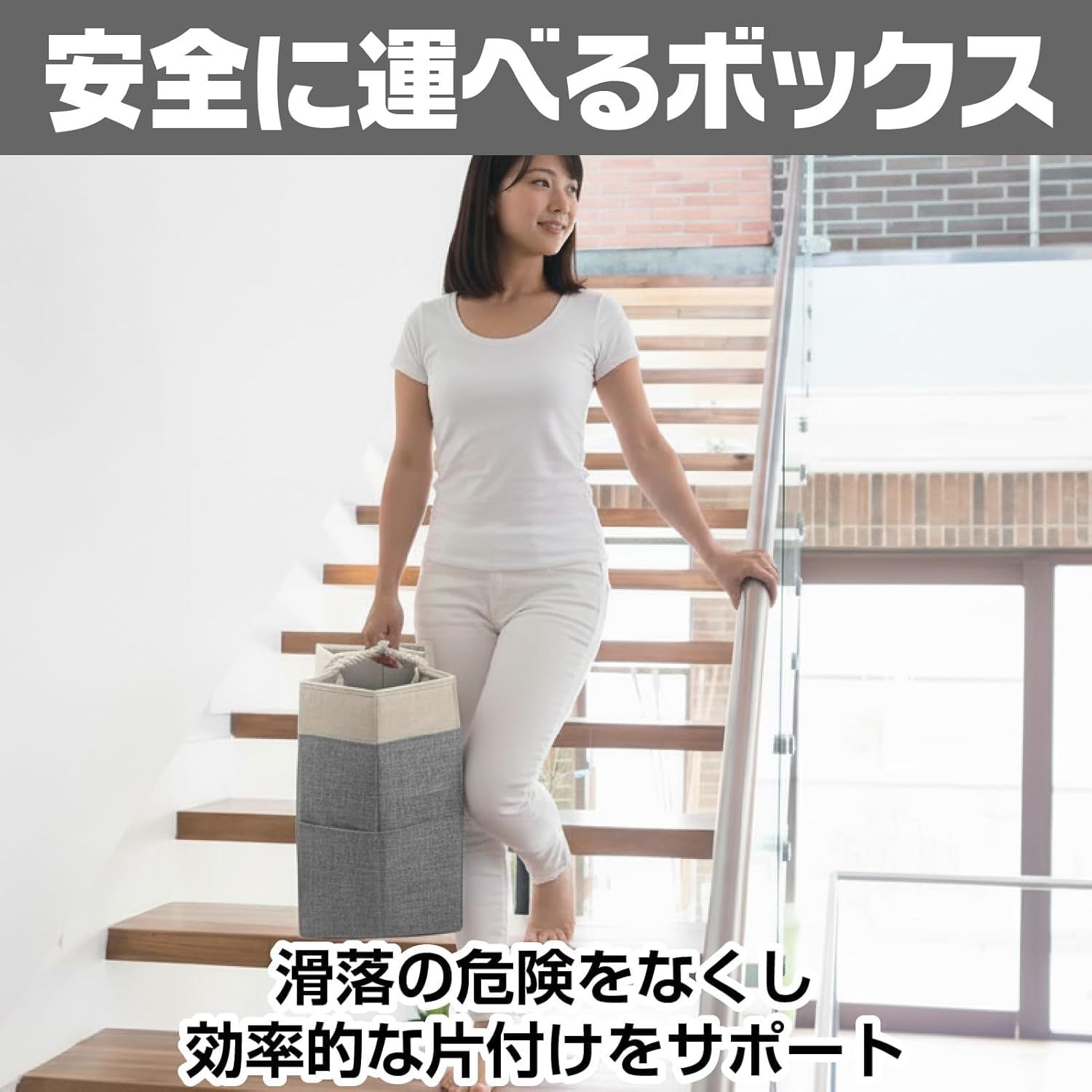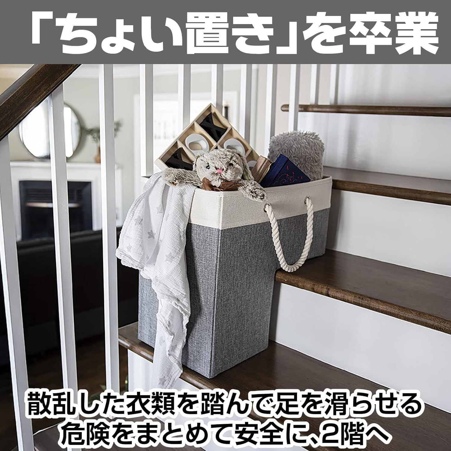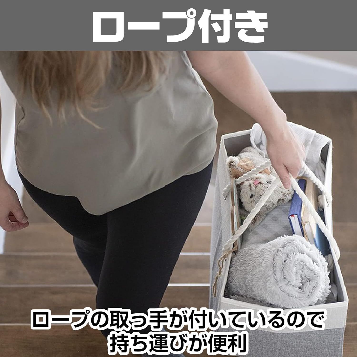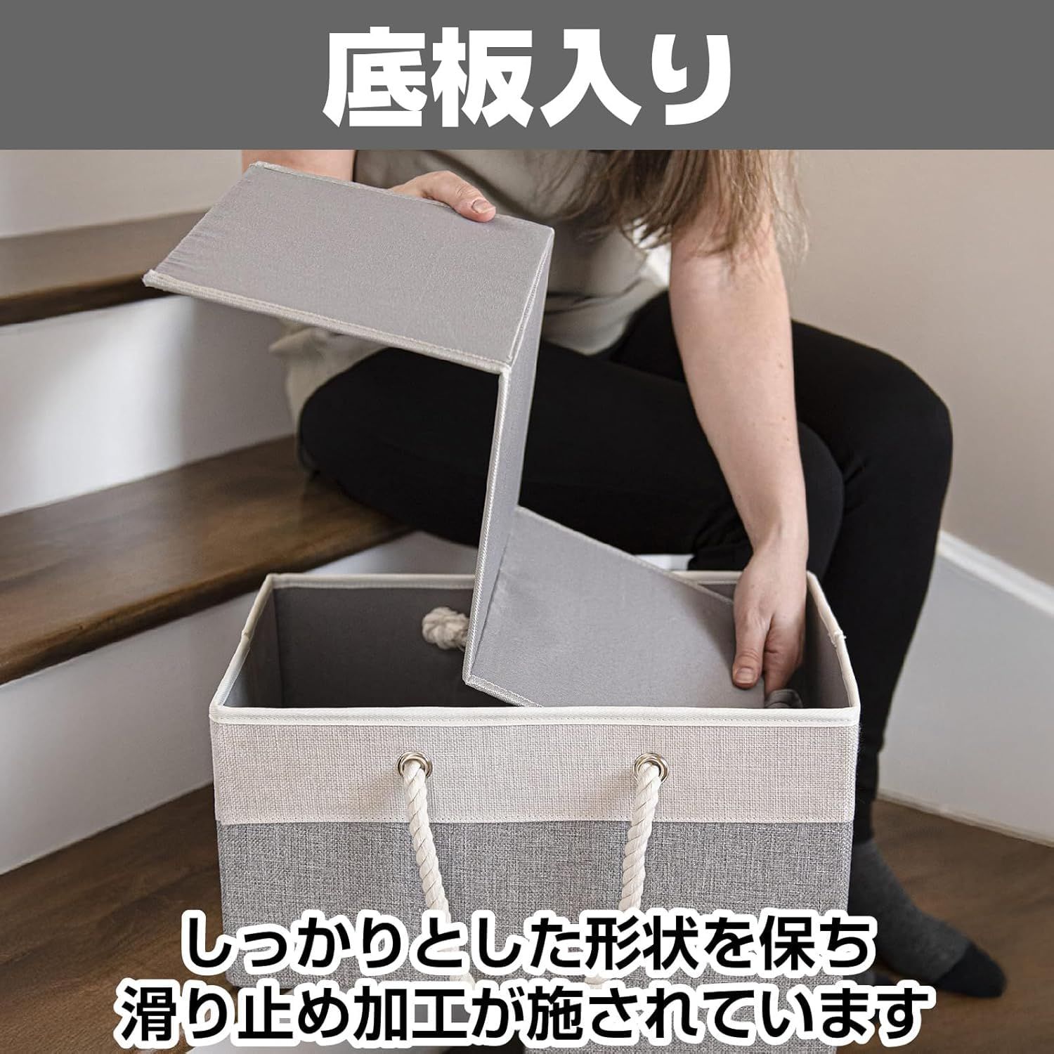 【階段の「ちょい置き」が、きちんと収まる専用バスケット】階段に「後で運ぼう」と置いてしまう洗濯物や衣類、子どものおもちゃ。そんな日常の困りごとを解決する階段専用の収納バスケットです。段差20cmにぴったり収まる設計で、階段のスペースを有効活用。散らかりがちな小物や靴下、アクセサリーもすっきりまとめられ、家族みんなが使いやすい仕組みが整います。階段がすっきりすると、暮らし全体に余裕が生まれます。【使わないときは薄く畳める、場所を取らない収納ボックス】折りたたみ式だから、使わないときはコンパクトに収納できるのが大きな魅力。クローゼットの隙間や棚の上にさっと仕舞えて、必要なときだけ広げて使えます。底板入りでしっかりした形状を保ちながらも、省スペース設計。ランドリーや本、日用品など用途に合わせて柔軟に使い分けられ、暮らしの変化にも対応します。限られた住空間を上手に活用したい方にぴったりです。【ロープ取っ手で、2階への往復がラクになる】持ち運びやすさにこだわったロープ取っ手付き。手にやさしくフィットし、荷物をまとめて一度に運べるので、階段の上り下りが格段に楽になります。洗濯物や子どもの散らかったおもちゃ、読みかけの本など、バラバラになりがちなものをひとまとめに。階段での移動がスムーズになることで、家事の効率も上がり、ストレスが減ります。忙しい毎日に、ちょっとした余裕をくれるアイテムです。【整理整頓の習慣が自然と身につく、暮らしの味方】階段という「通り道」に収納場所をつくることで、家族みんなが片付けやすくなります。玩具や衣類を放置せず、このバスケットに入れる習慣がつけば、家の中の散らかりが自然と減っていきます。ランドリーや階段下収納としても活躍し、生活動線に沿った整理整頓をサポート。小さな工夫が、毎日をもっと快適にしてくれる。そんな暮らしの変化を実感できる収納ボックスです。【内容】収納ボックス×1個