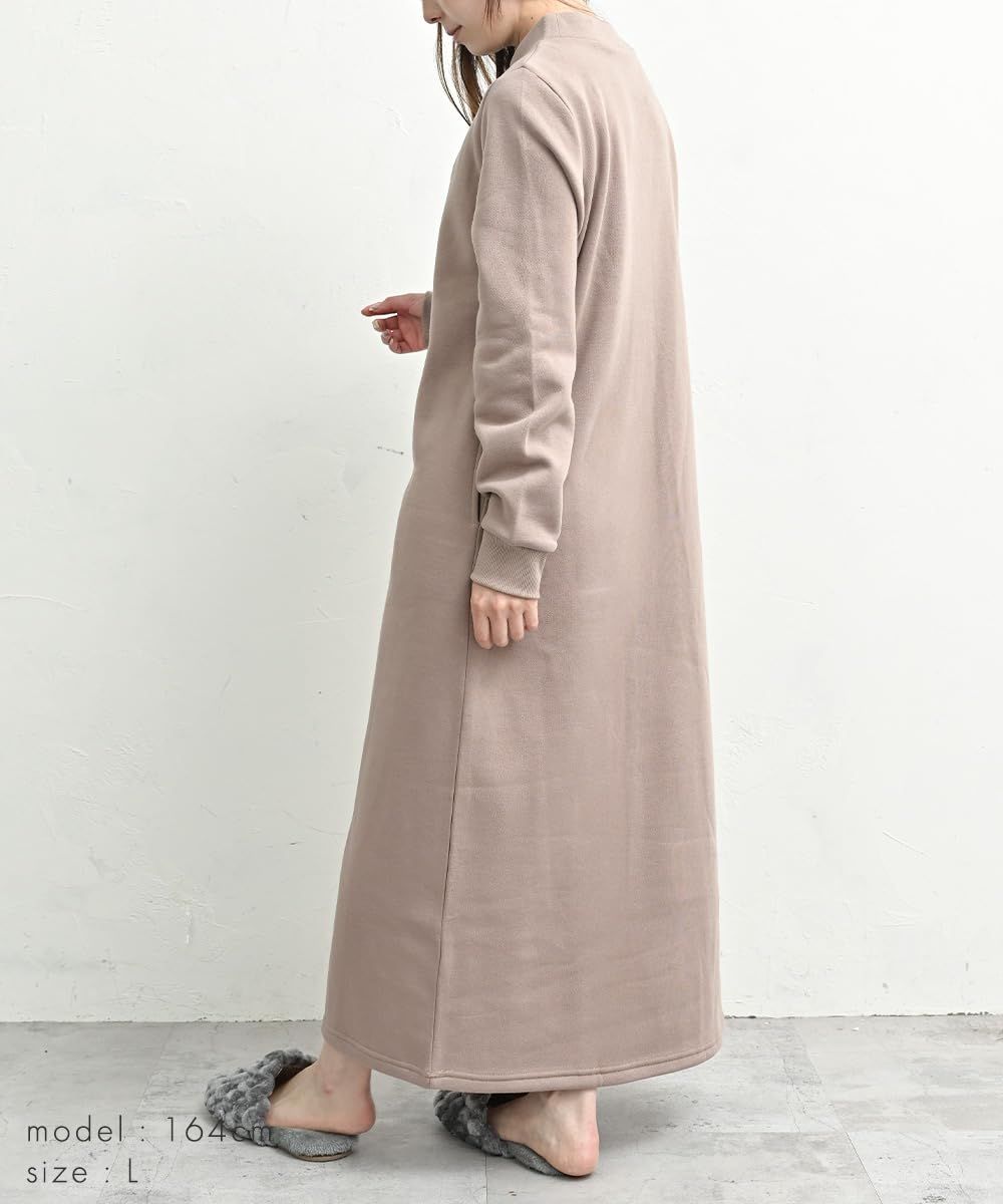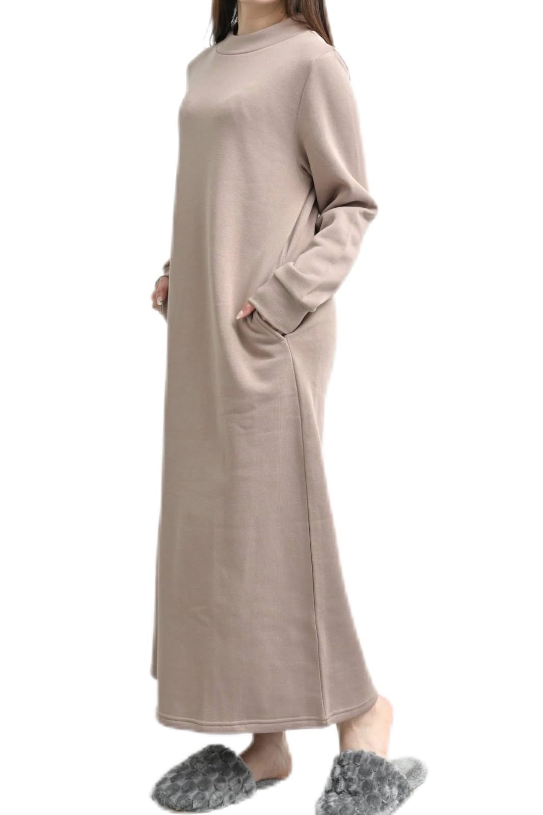 [MORE AUNI] ルームウェア ワンピース レディース 長袖 裏起毛 パジャマ 部屋着 モックネック ハイネック マキシ丈 ロング丈 暖かい カジュアル 秋冬 もこもこ ゆったり M L LL 大きいサイズ マタニテ [グレージュ / 8330] [M]