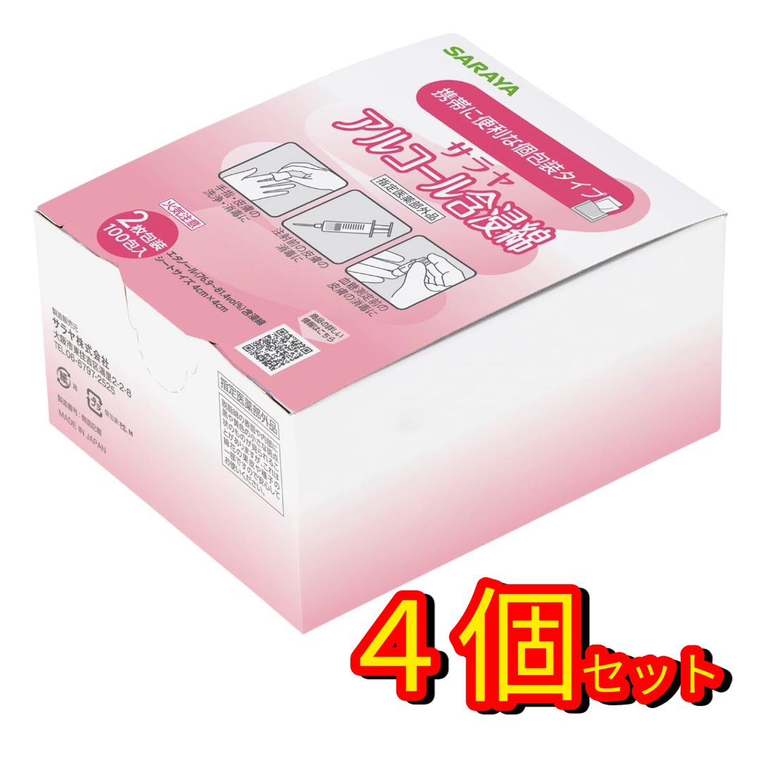 サラヤ 外皮消毒剤 アルコール含浸綿 2枚包装タイプ 100包入 4個