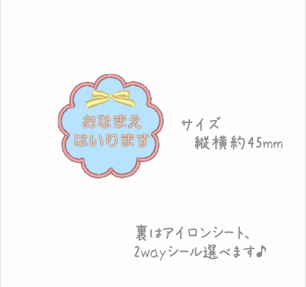 ※こちらはオーダーページです※ ご購入はお控えください。 必ず【オーダー方法】をご覧になり、必要事項を質問するボタンよりご連絡お願いします。 リボンが可愛い🎀お名前ワッペンです♡ 生地の色・お名前・枠、すべてお色変更可能なので、オリジナルのワッペンが作れます♪ シールタイプ(+100yen)は、 筆箱や鍵盤ハーモニカにも貼れます♪ 熱を加えるとアイロンシートにもなります☻ 【オーダー方法】 質問するボタンより、 下記をお知らせください。 専用ページを作成いたします。 1.ワッペンの色 2.枠の色 3.刺繍文字の色 4.リボンの色 5.刺繍するお名前 6.書体 7.裏の加工 ⇒アイロンorシール2way(+100円) 8.枚数 ※イメージ画はお名前部分も見て頂きたいので基本載せさせて頂きますm(__)m (ご確認後削除ご希望の方はお申し付けください) 実際のお名前でのイメージをご希望の方は、 LINE検索にて、@004xxnbq ⇒@を必ず入れてください こちらにアカウント名を添えてメッセージください♪ -------------------------------------------------------- 裏はアイロンシートになります。 +100yenでシールタイプに変更可能です。 (アイロン圧着もOKな2way) ・アイロンシートは、長期間ご使用になるものや、お洗濯の頻度が高いものには 端を縫い止めてご使用ください。 ・シールタイプはお洗濯する際は外してください。 -------------------------------------------------------- ※価格と大きさ※ サイズ 約45mm 500円 ※製作可能な文字数は7文字程度となります -------------------------------------------------------- 【配送方法】 普通郵便110円 or クリックポスト200円 ご希望が無ければ普通郵便となります お子様ワッペンご購入の方は1000円以上お買い上げで送料無料♪ (普通郵便での発送の場合) -------------------------------------------------------- 【 注 意 】 ・こちらはお一つお一つ手作業にて加工しております。 ワッペンの周りを熱で溶かしてカットするため、加工上フチの外側に若干生地が残ります。 ・刺繍するお名前が長い場合、バランスを見て縮小したり、二段にさせて頂く場合がございます。 ・文字数により、ワッペンのサイズは多少変更させて頂きます。 ・オーダーメイドの為、内容確定後の交換返品は出来かねます。 shishu-nanairo ↑ こちらをコピペして検索していただくと一覧出てきます♪ 入園 入学 2024 2023 お名前ワッペン お子様ワッペン ネームタグ ネームラベル 刺繍 ワッペン リボン かわいい シンプル ナチュラル