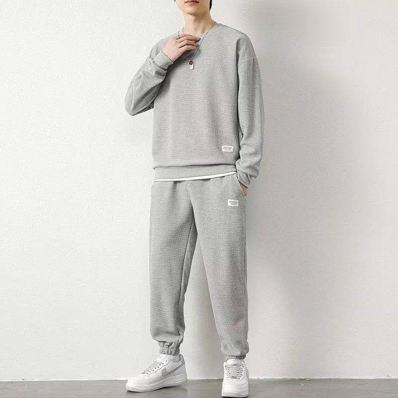 新品 メンズ カジュアルセットアップ リラックスパンツ 長袖スウェット ルームウェア兼用 通勤OK スポーツシー 伸縮性ウエスト ワッフル地