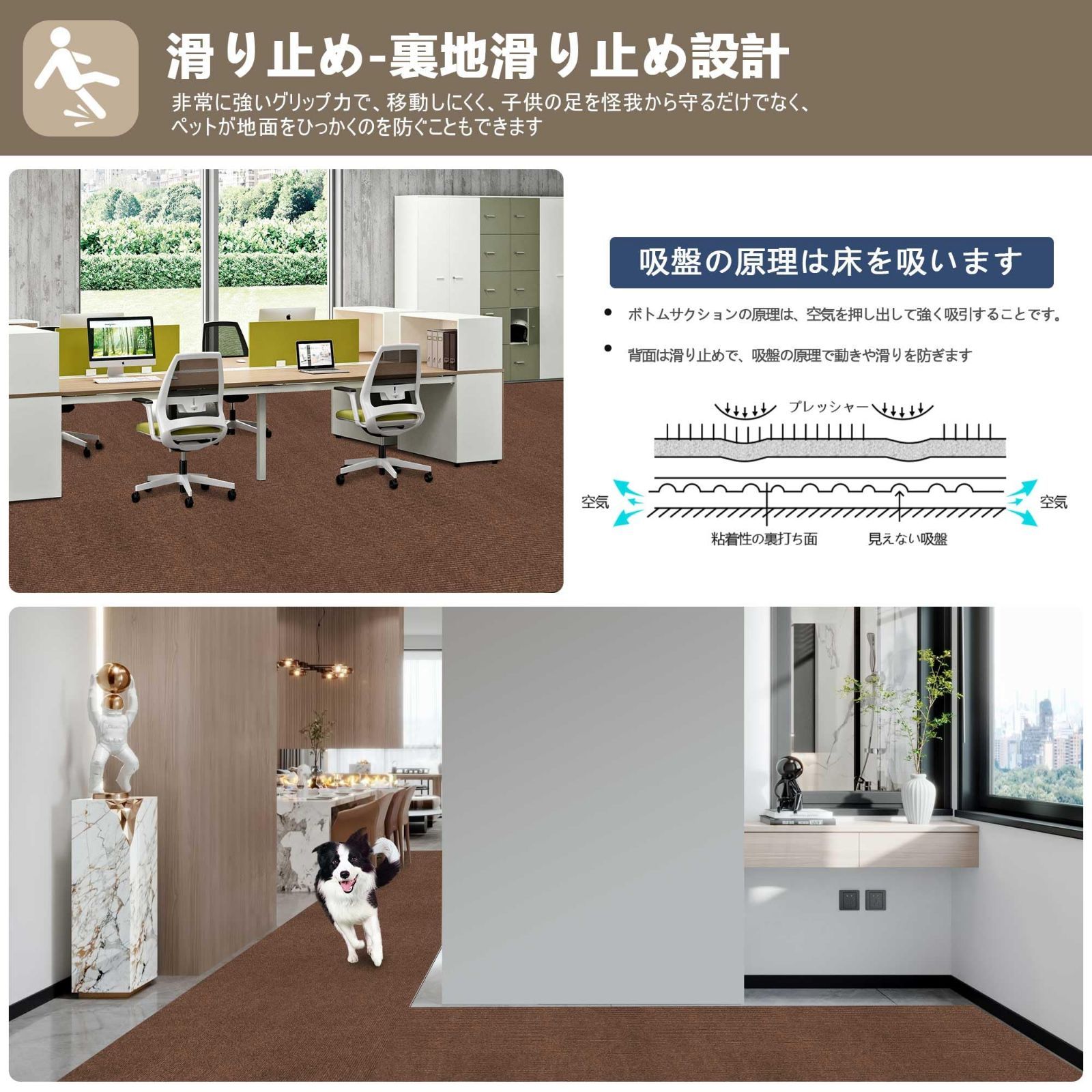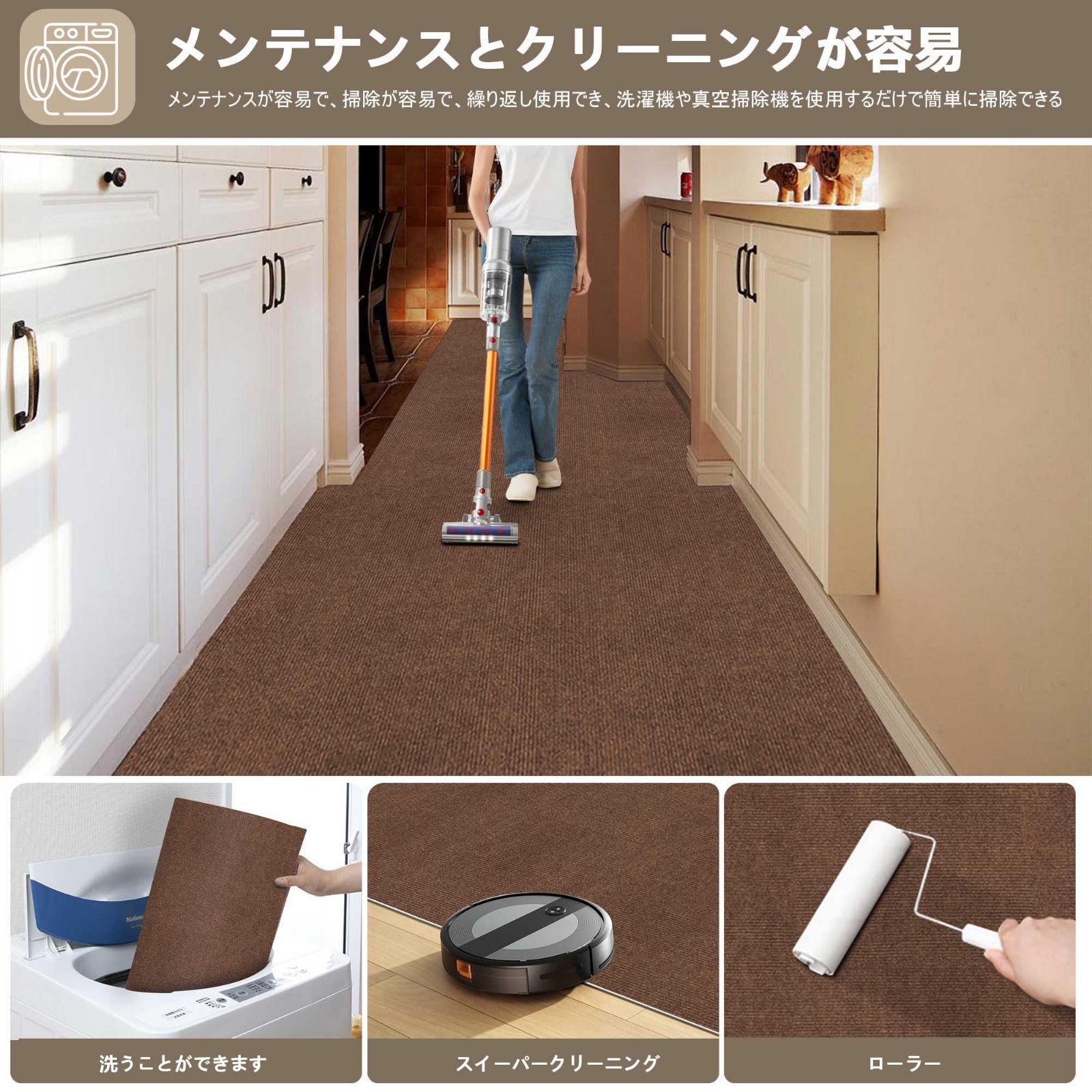 【 限定ブランド】廊下 カーペット XIWEIYI ロングカーペット ズレない 洗える 撥水 おしゃれ 無地 カーペットタイプ ロングマット 吸着 廊下敷き TPR 防音 ラグ 無地 ペット 置くだけで吸着マット ロングマット ロールマット 廊下マット キッチンマット 玄関マット 階段マット60×180cm 厚さ4 mm(ブラウン)