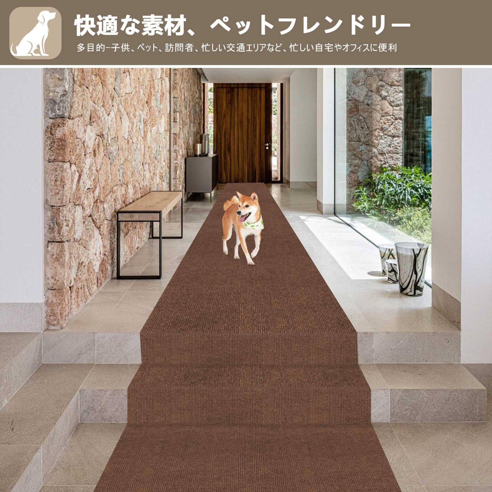 【滑り止めの廊下床保護マット】子犬や子猫が階段や廊下などで滑って倒れると、関節などに傷がつく。XIWEIYIのこのカーペットの表面は柔らかく快適で、厚さは約4 mmで、滑り止め加工を施し、転倒時の衝撃力を床に比べて約2/3軽減することができる。ペットや要介護、小さなお子さんがいるご家庭は安心してご利用いただけます。