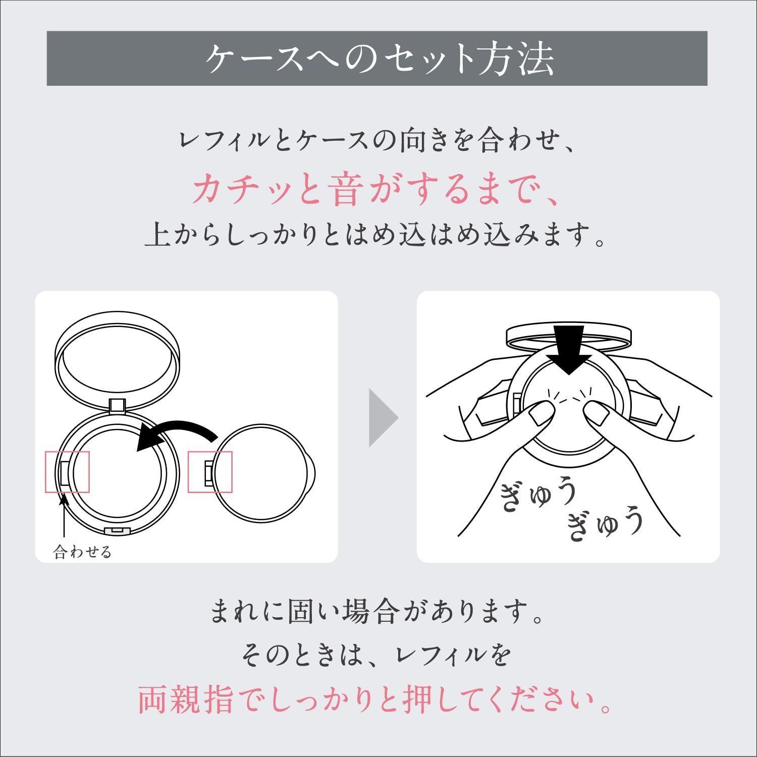 初めてお使いになる場合は、レフィルのシールをゆっくりはがし、マイクロメッシュから中身が出るまでパフで数回押してください。スキンケアなどで肌をととのえたあと、パフに適量をとり、肌にのばします。パフをすべらせるようにのばすとナチュラルな仕上がりに、肌をポンポンとたたくようにのばすとカバー力のある仕上がりになります。他の紫外線防止効果のある化粧品と併用するとより効果的です。別売りのパフ (エスプリーク エマルジョン コンパクト用 パフ) もあります。