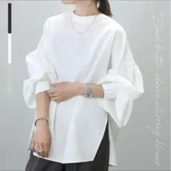 白 ホワイト 長袖ブラウス 袖ゴム 大きいサイズ ゆったり 体型カバー