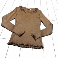 美品✨海外古着グレー 花柄 【L】Vネックニット セーター 冬