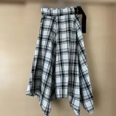 白黒チェック アシンメトリーフレアスカート