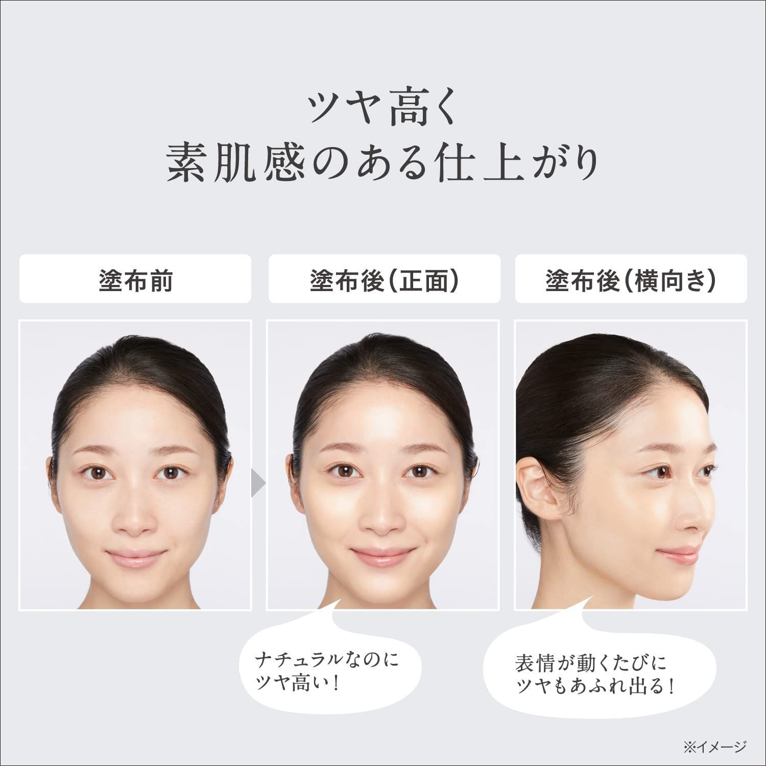 美容液状になることで、何もまとっていないかのような軽く心地よい使用感とみずみずしさ、美しいツヤ感を叶えます。