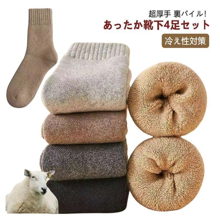 極暖 ソックス メンズ レディース 4足セット ウール ウールソックス 厚手 裏パイル 靴下 暖かい 防寒 ロングソックス 男性用靴下 男女兼用 防寒 くつ下 秋 冬 春用 靴下 対策 あったか 靴下#amyz3125