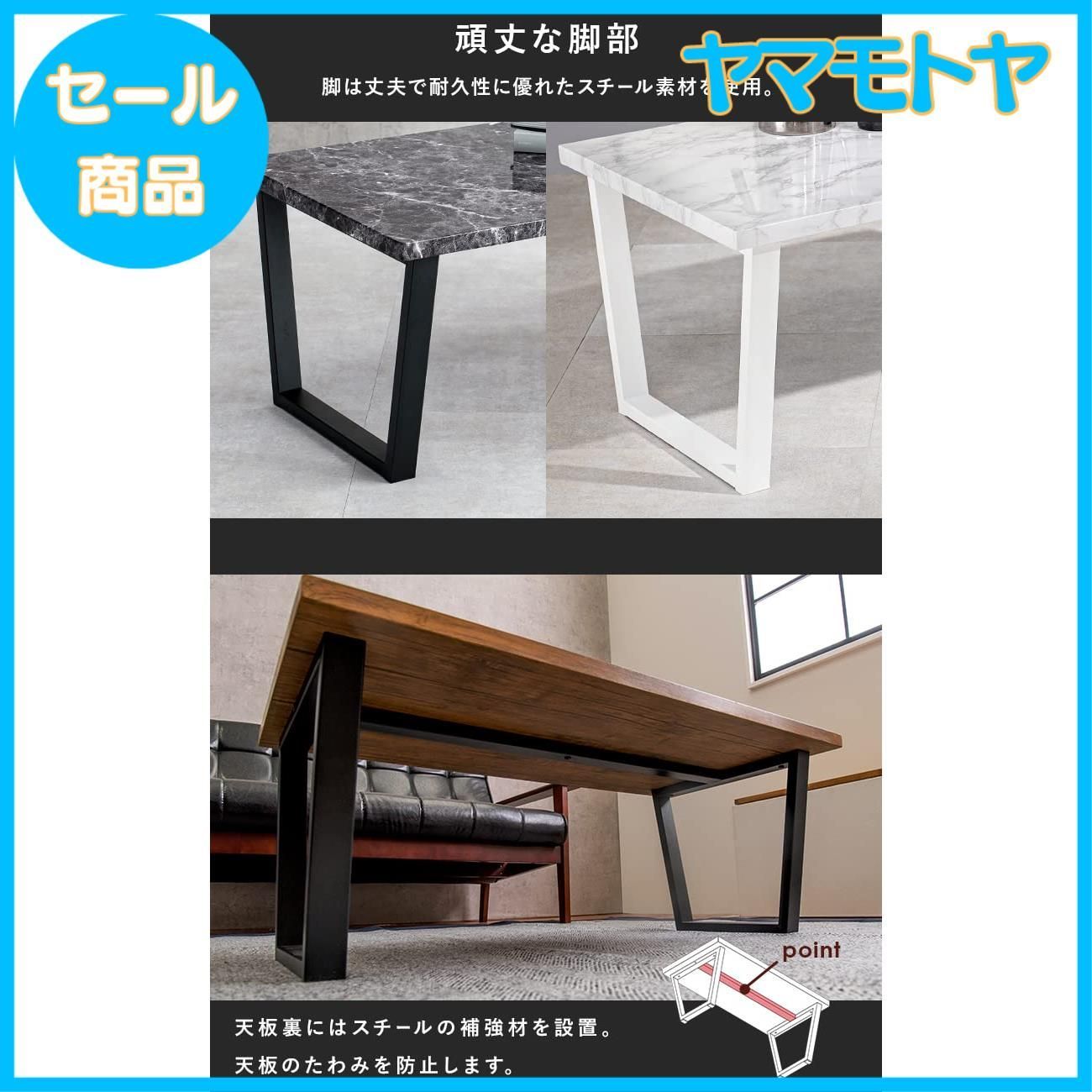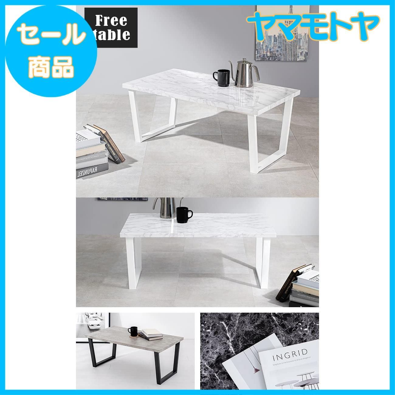 【特売】萩原(Hagihara) ローテーブル センターテーブル テーブル 机 【大理石調天板×スチール脚】 シック モダン リビング ソファテーブル 幅90 奥行45 高さ32 グレー 頑丈 LT-4395MGY